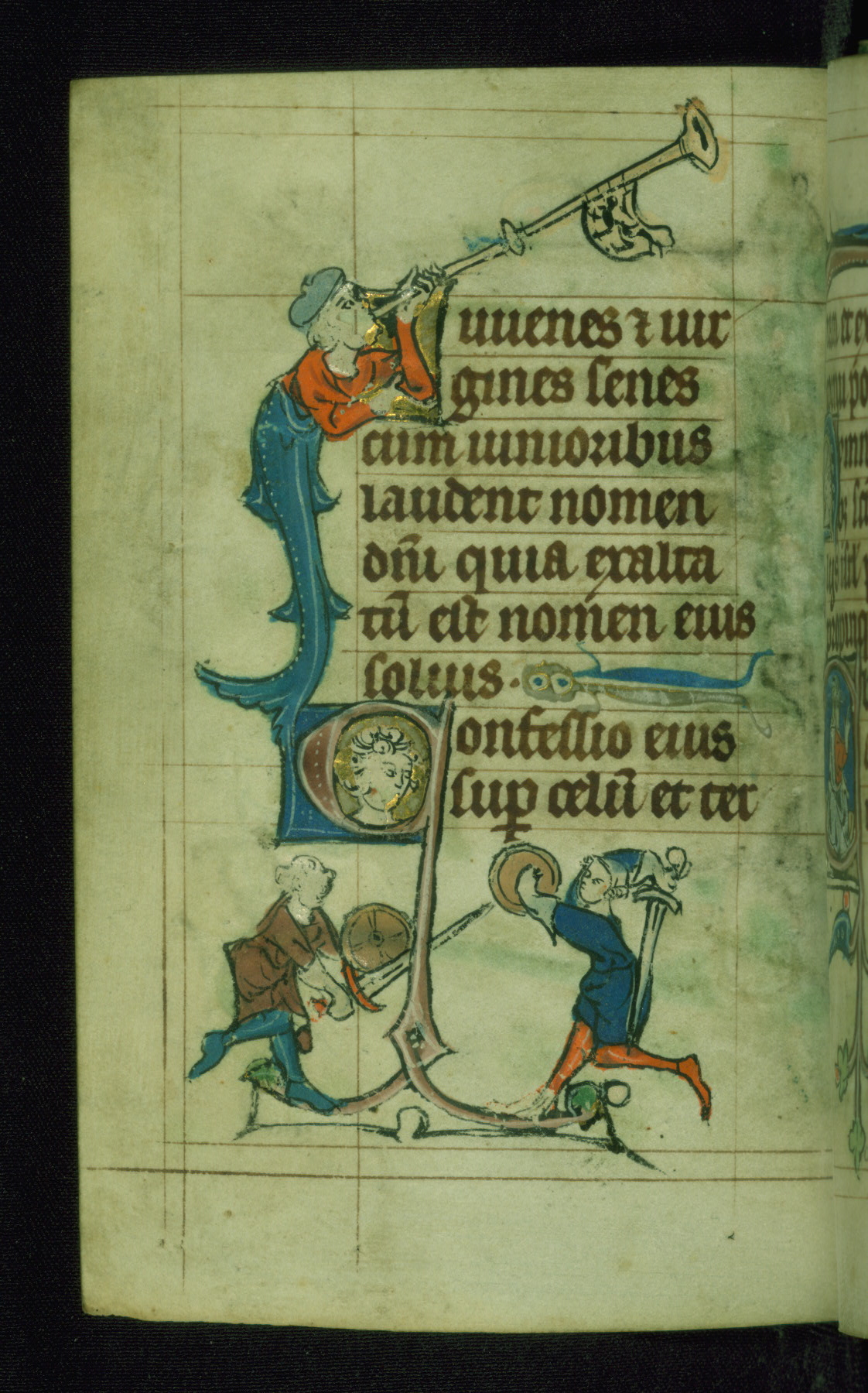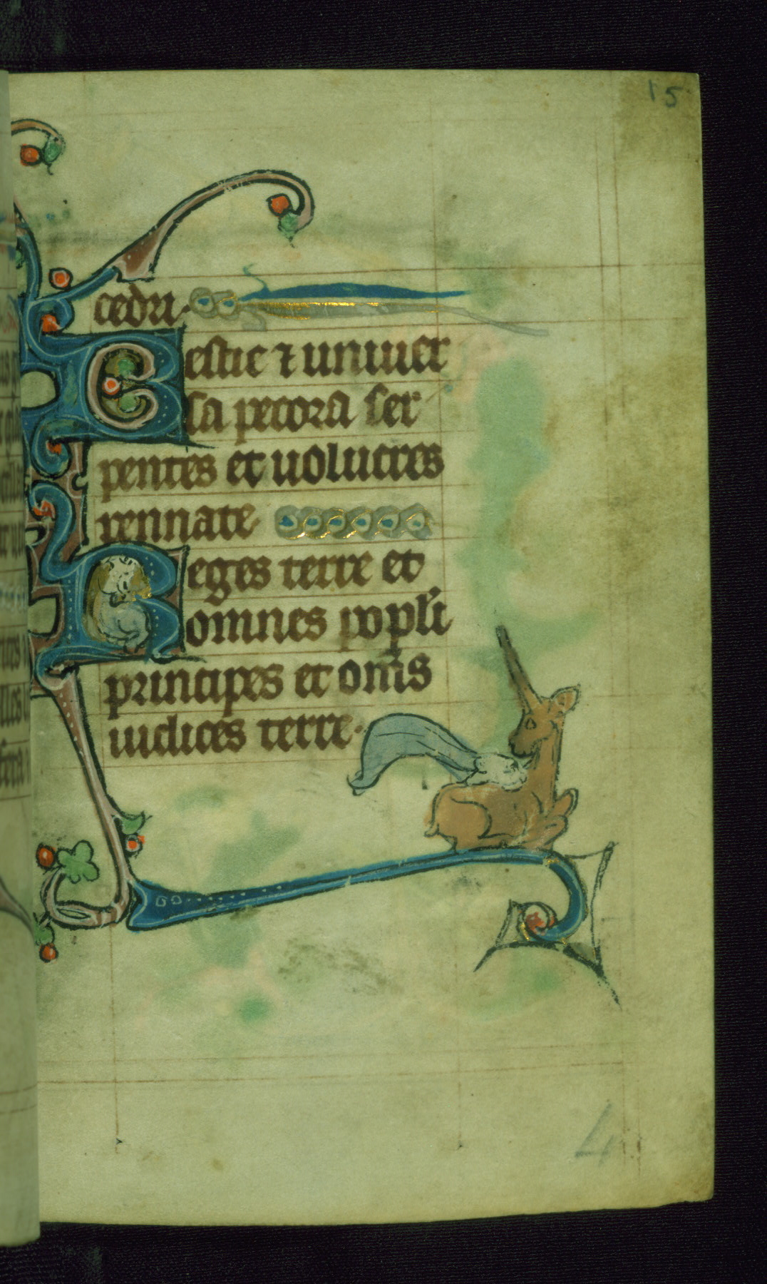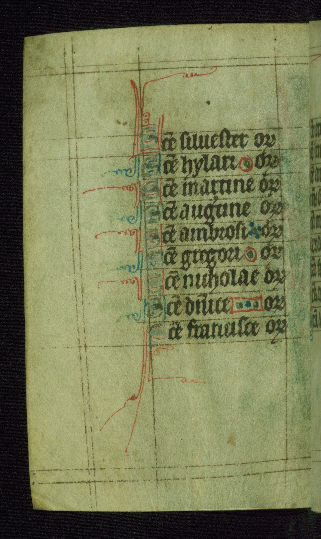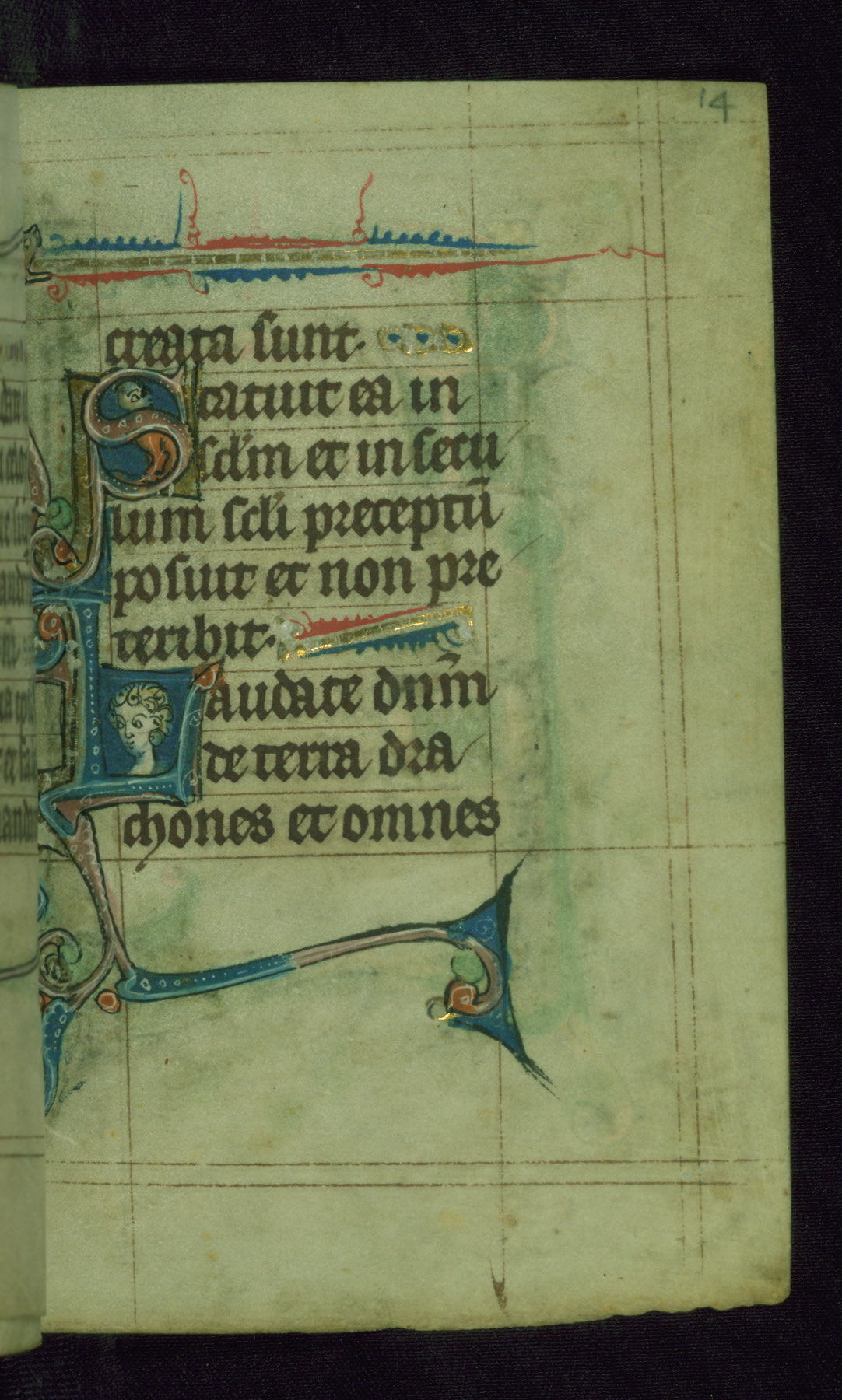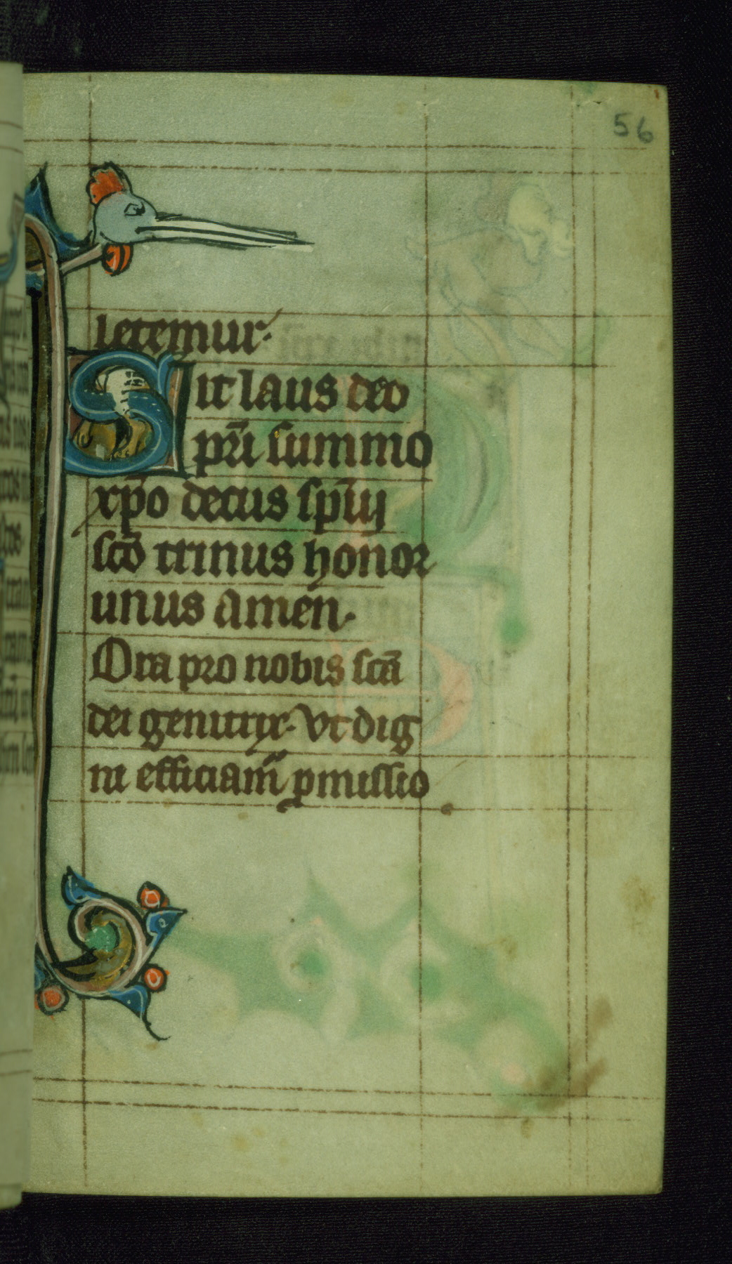 This fragmentary Book of Hours was created in Ghent ca. 1300 for the use of a woman with Dominican ties. Although quite a bit of text and imagery is missing, including the calendar and Office of the Dead, this tiny manuscript is lavishly decorated on nearly every page with marginal drolleries and grotesques, making it a rich and charming book even in its fragmentary state.