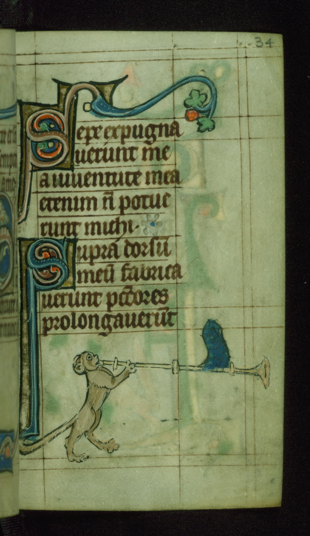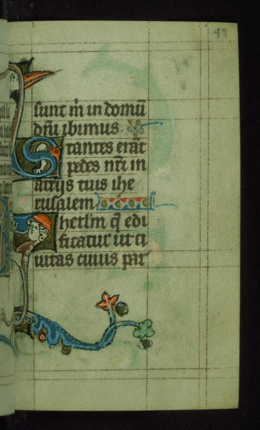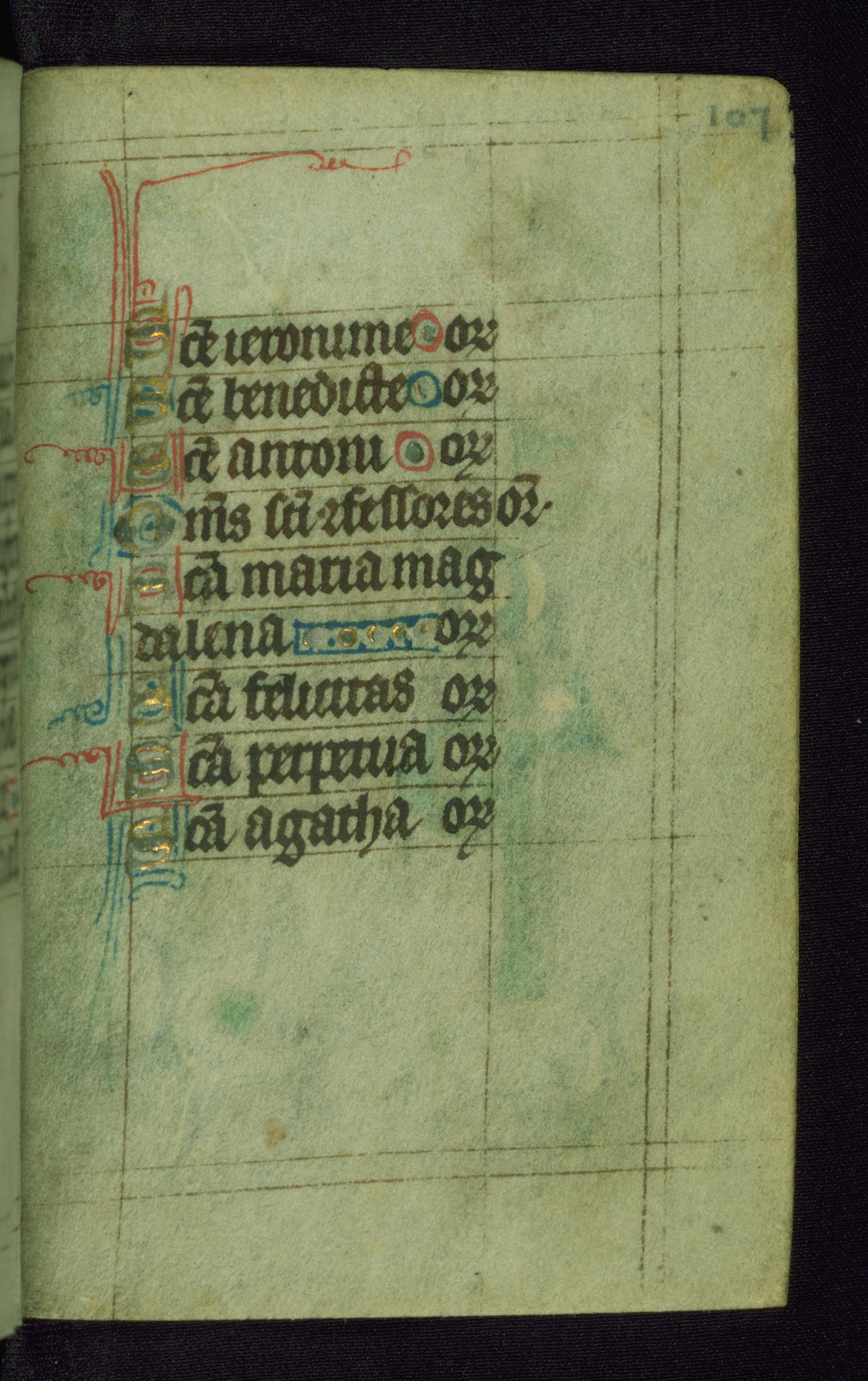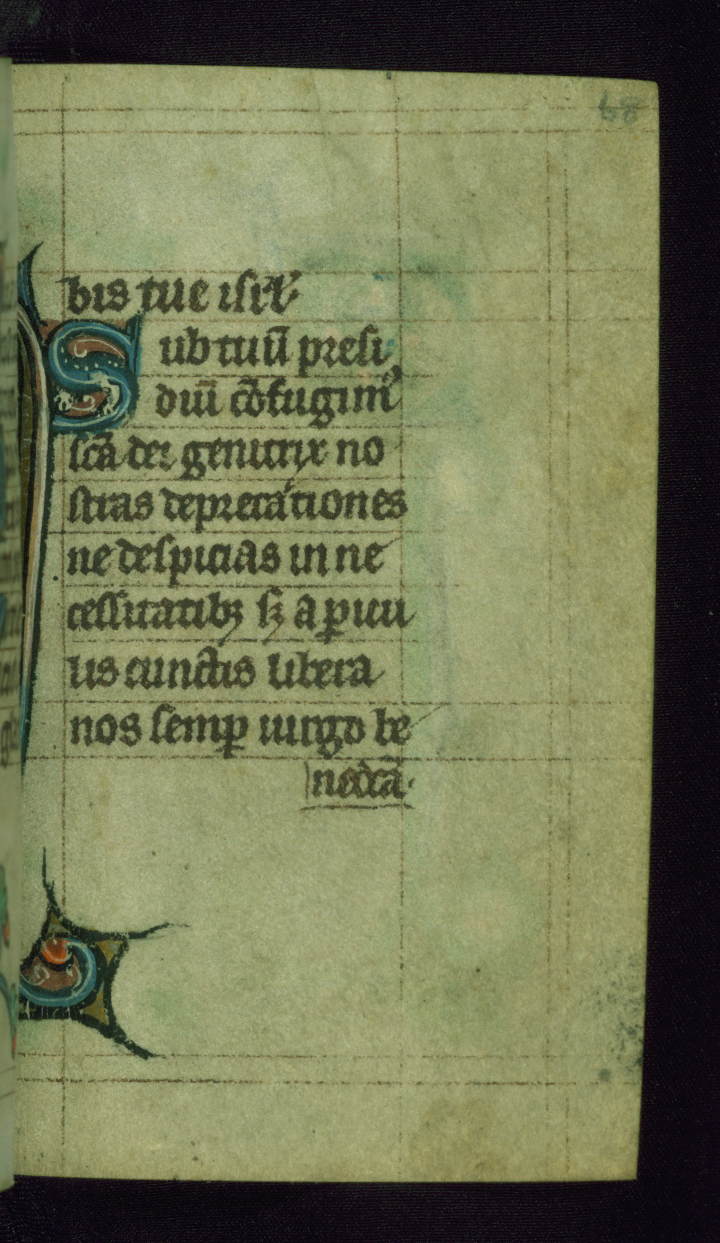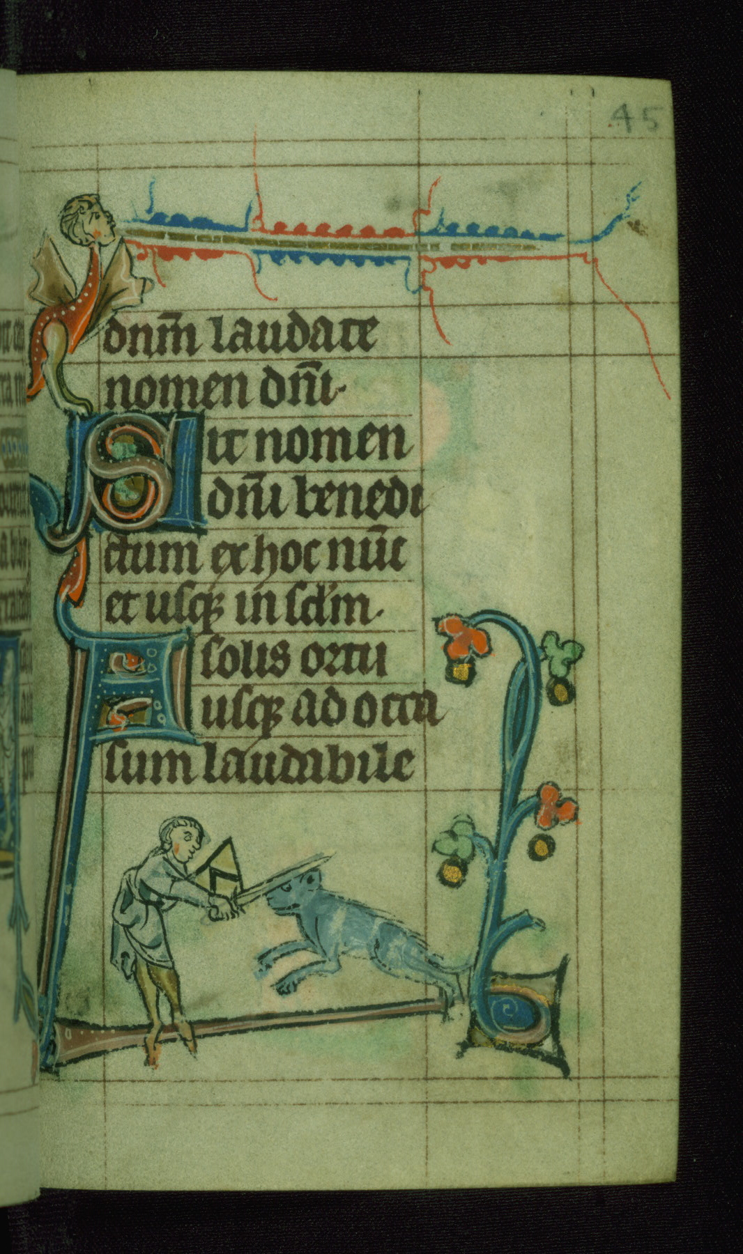 This fragmentary Book of Hours was created in Ghent ca. 1300 for the use of a woman with Dominican ties. Although quite a bit of text and imagery is missing, including the calendar and Office of the Dead, this tiny manuscript is lavishly decorated on nearly every page with marginal drolleries and grotesques, making it a rich and charming book even in its fragmentary state.