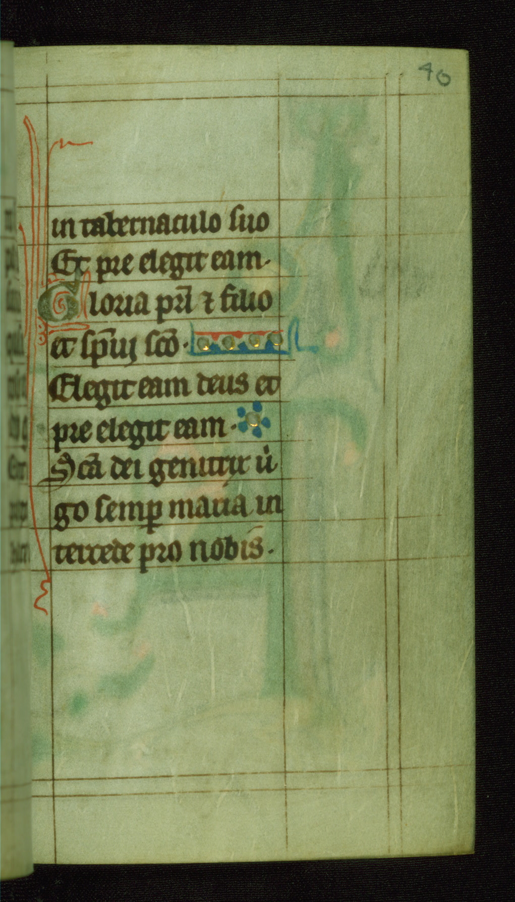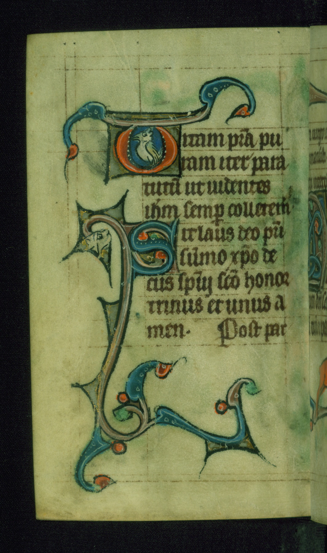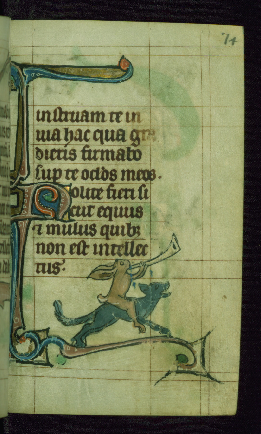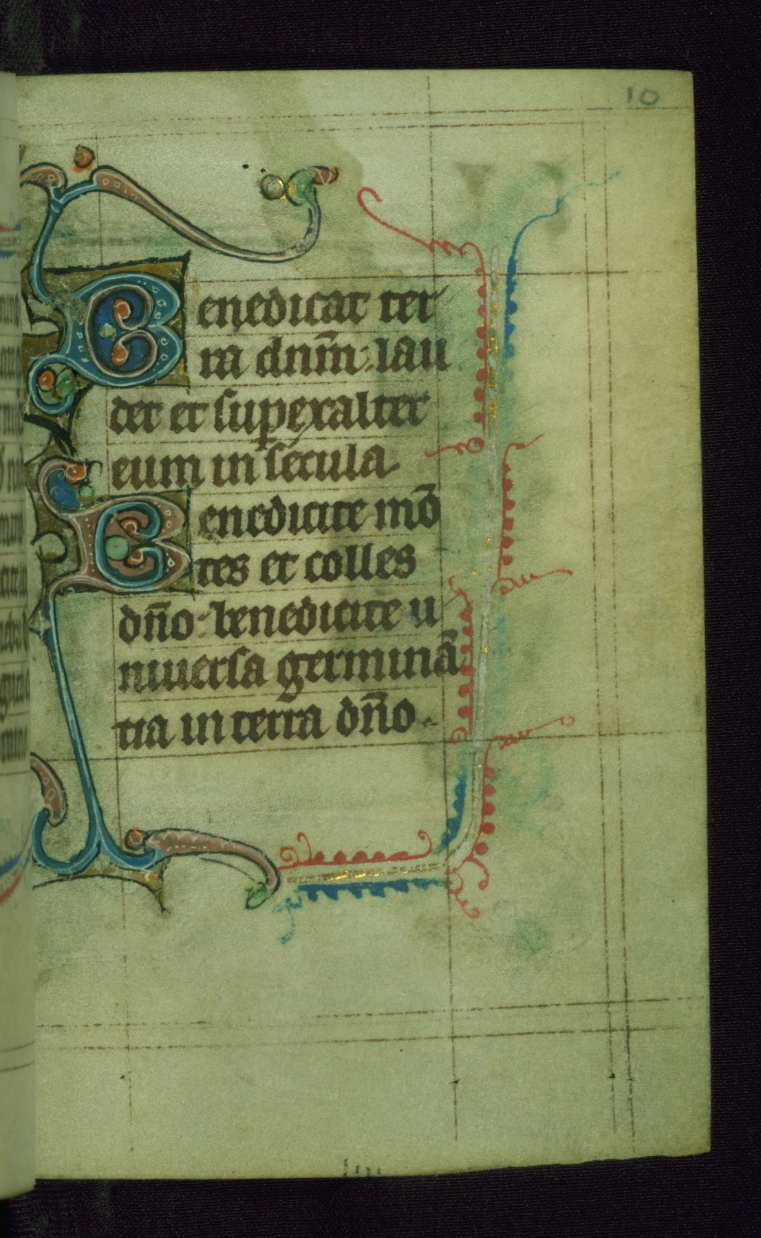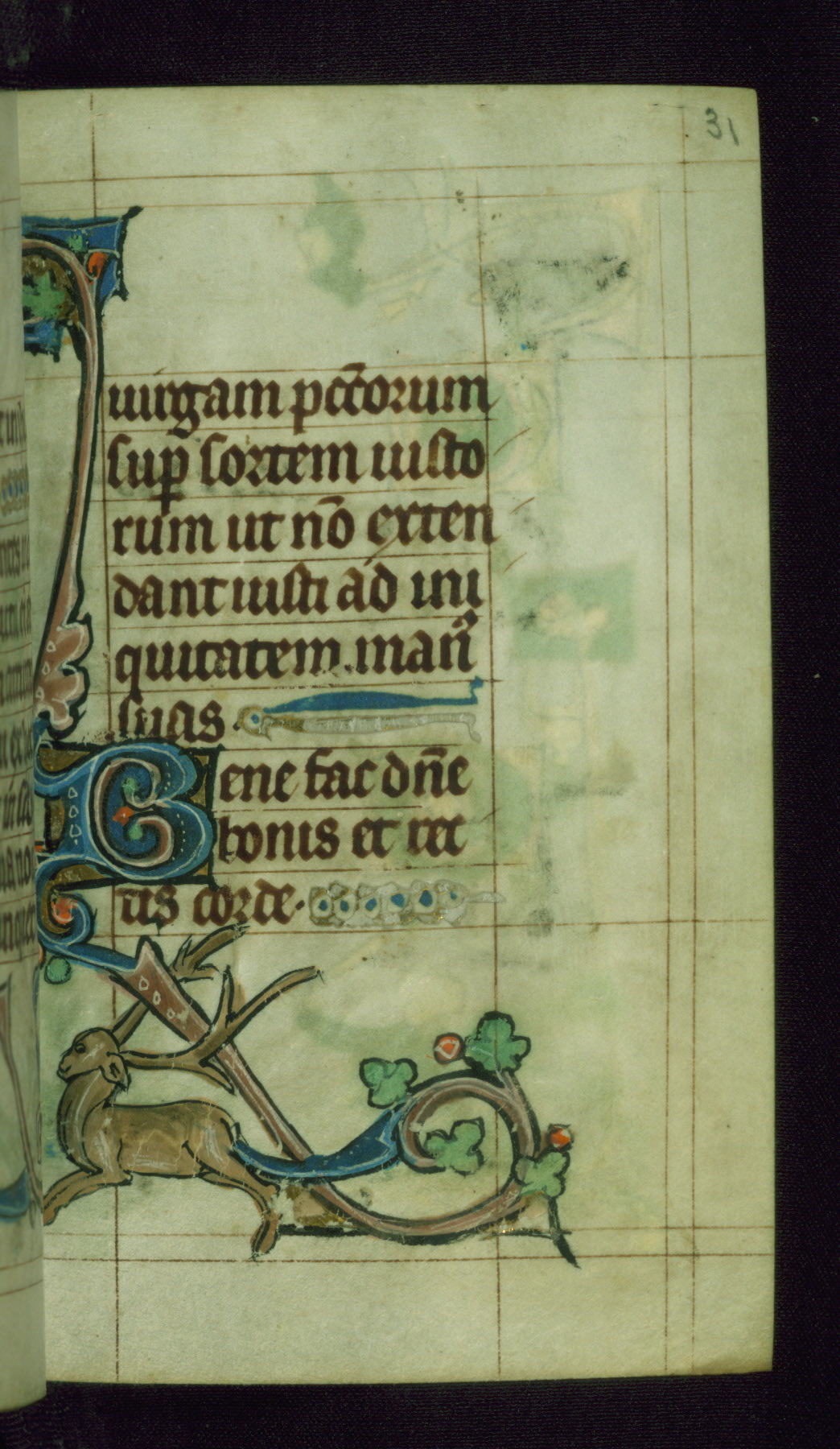 This fragmentary Book of Hours was created in Ghent ca. 1300 for the use of a woman with Dominican ties. Although quite a bit of text and imagery is missing, including the calendar and Office of the Dead, this tiny manuscript is lavishly decorated on nearly every page with marginal drolleries and grotesques, making it a rich and charming book even in its fragmentary state.