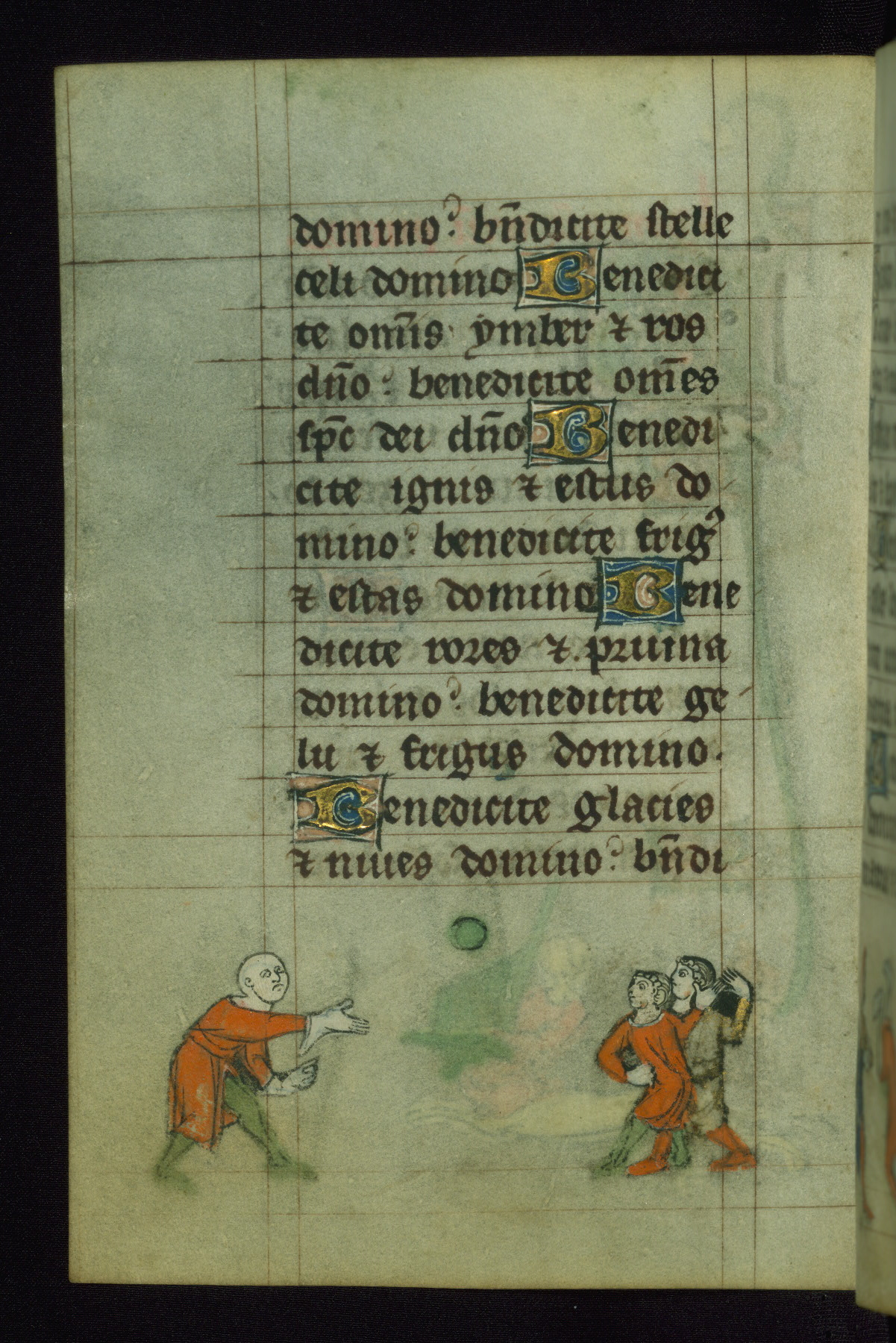 According to Heiner Gillmeister, this, and the other on fol. 59v, are the earliest known images of tennis being played.