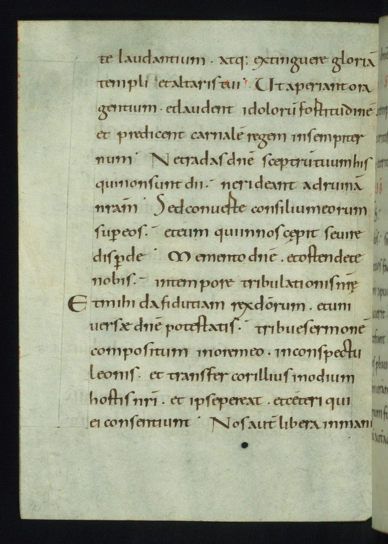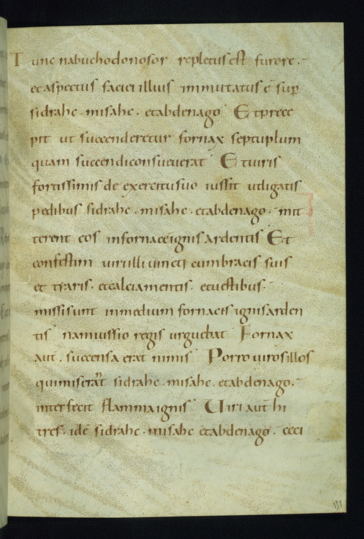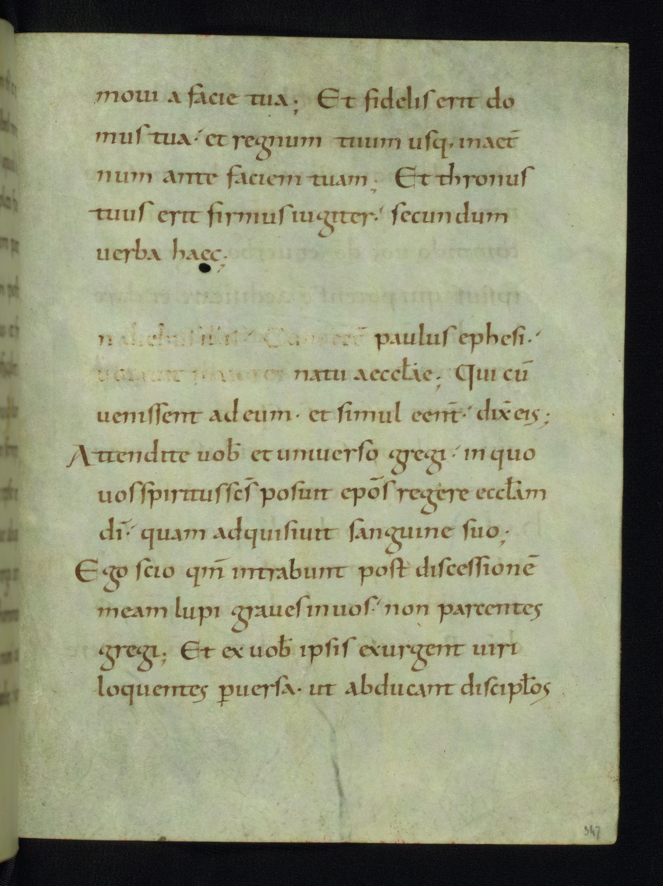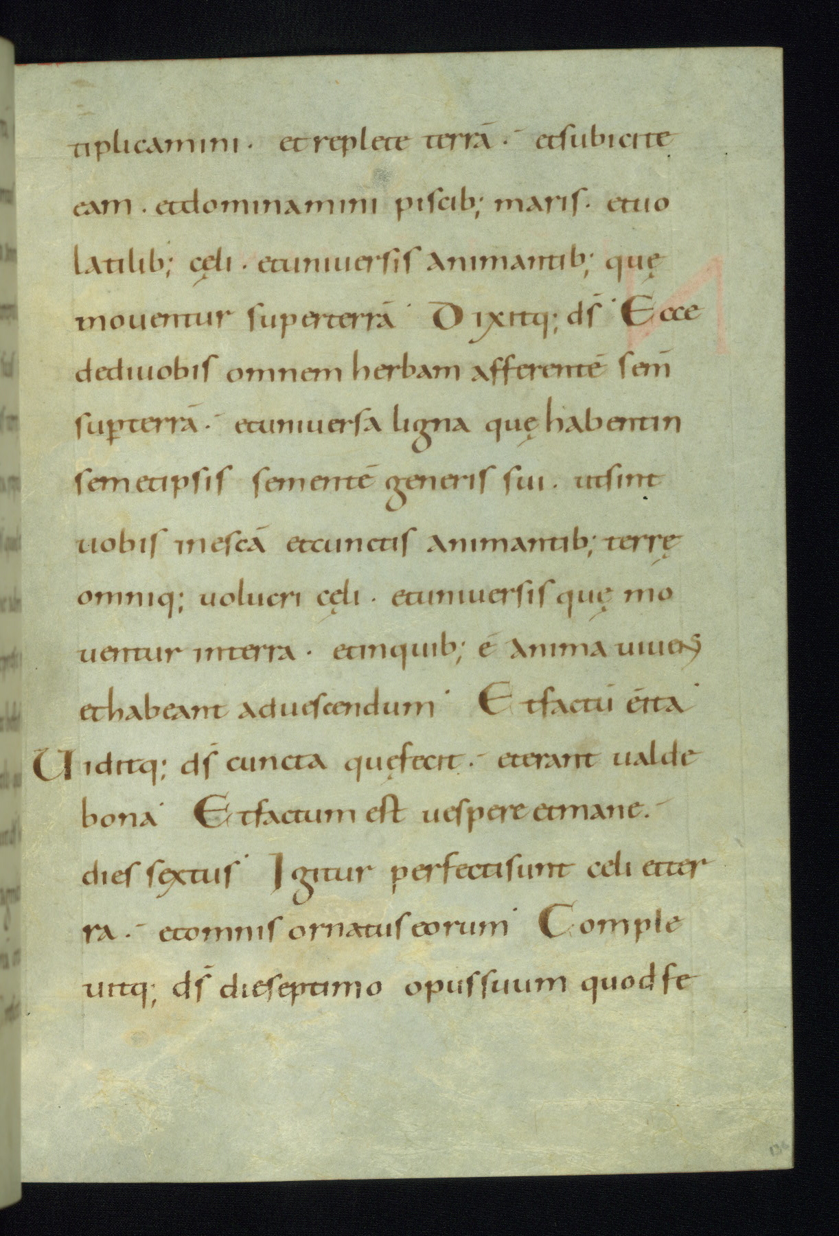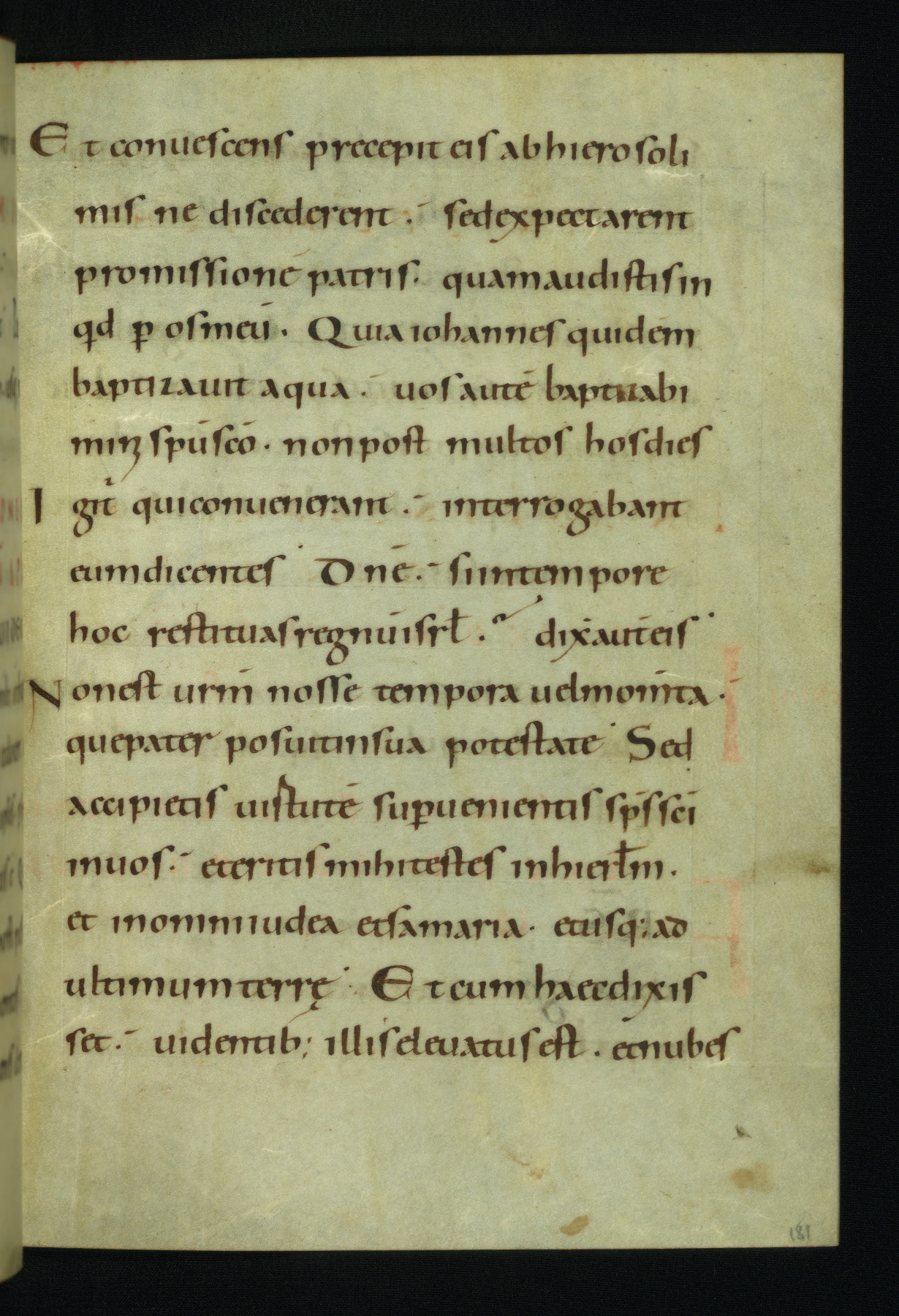 This Lectionary was created ca. 1000 in Trier. Written in a clear Caroline minuscule, it contains decorated initials at the openings of important readings. A set of illuminated letters marks the beginning of the Epistle and Gospel lessons for Easter; they display the hierarchy of scripts with capital letters decorated with gold leaf or drawn in red ink, followed by uncial and Caroline minuscule. Initials in orange, sometimes filled with gold, mark the divisions of the text. The book has been stylistically compared with Ottonian manuscripts, especially with a Psalter preserved in Trier (Stadtbibliothek, Ms. 7) illuminated by the so-called Master of the Registrum Gregorii.