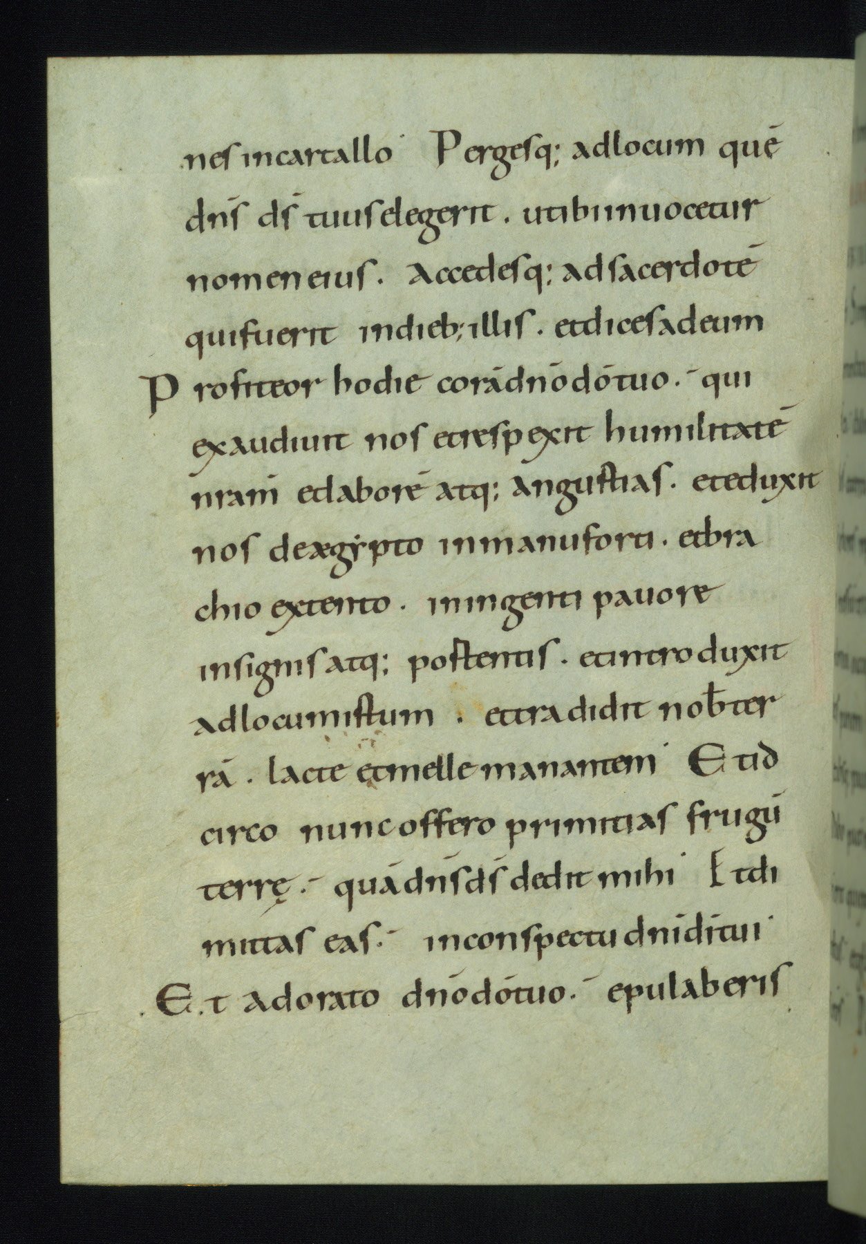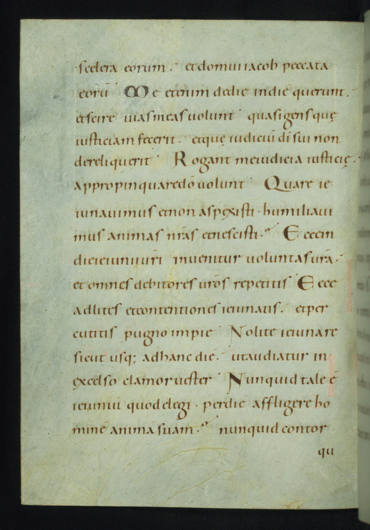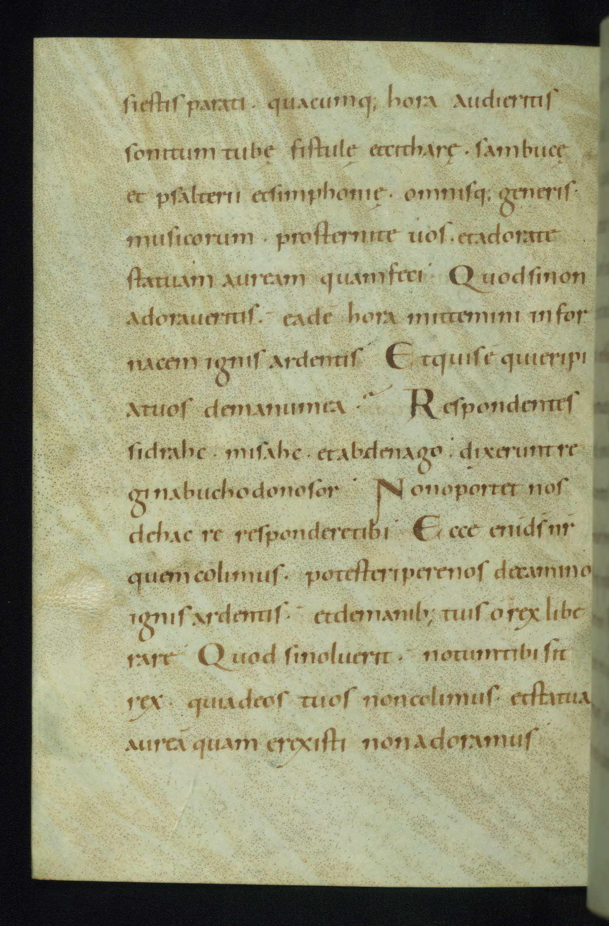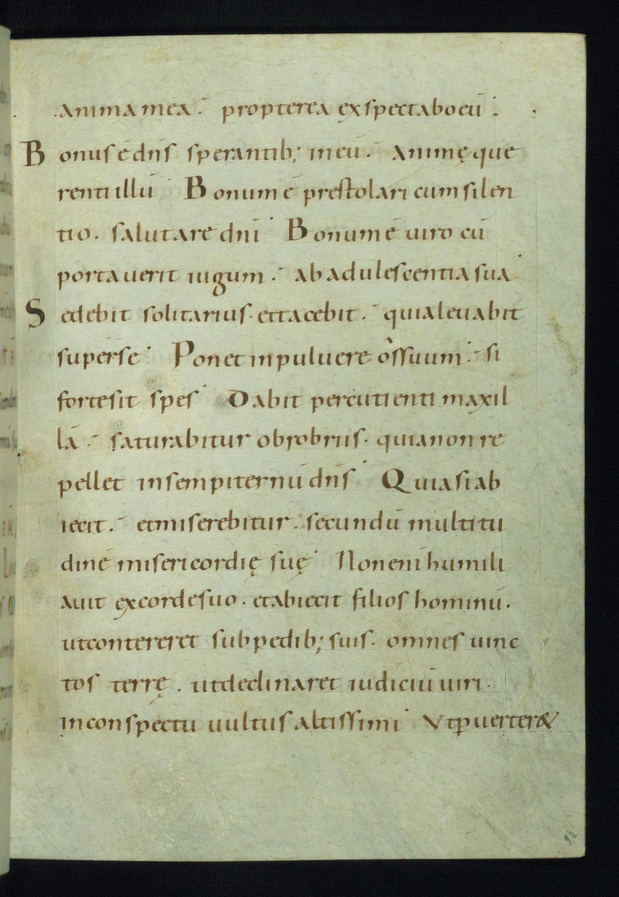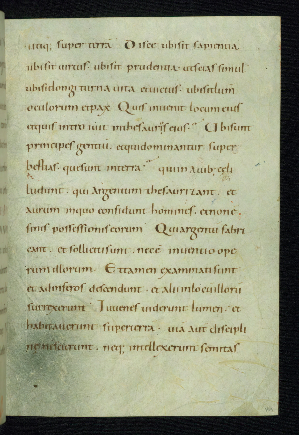 This Lectionary was created ca. 1000 in Trier. Written in a clear Caroline minuscule, it contains decorated initials at the openings of important readings. A set of illuminated letters marks the beginning of the Epistle and Gospel lessons for Easter; they display the hierarchy of scripts with capital letters decorated with gold leaf or drawn in red ink, followed by uncial and Caroline minuscule. Initials in orange, sometimes filled with gold, mark the divisions of the text. The book has been stylistically compared with Ottonian manuscripts, especially with a Psalter preserved in Trier (Stadtbibliothek, Ms. 7) illuminated by the so-called Master of the Registrum Gregorii.