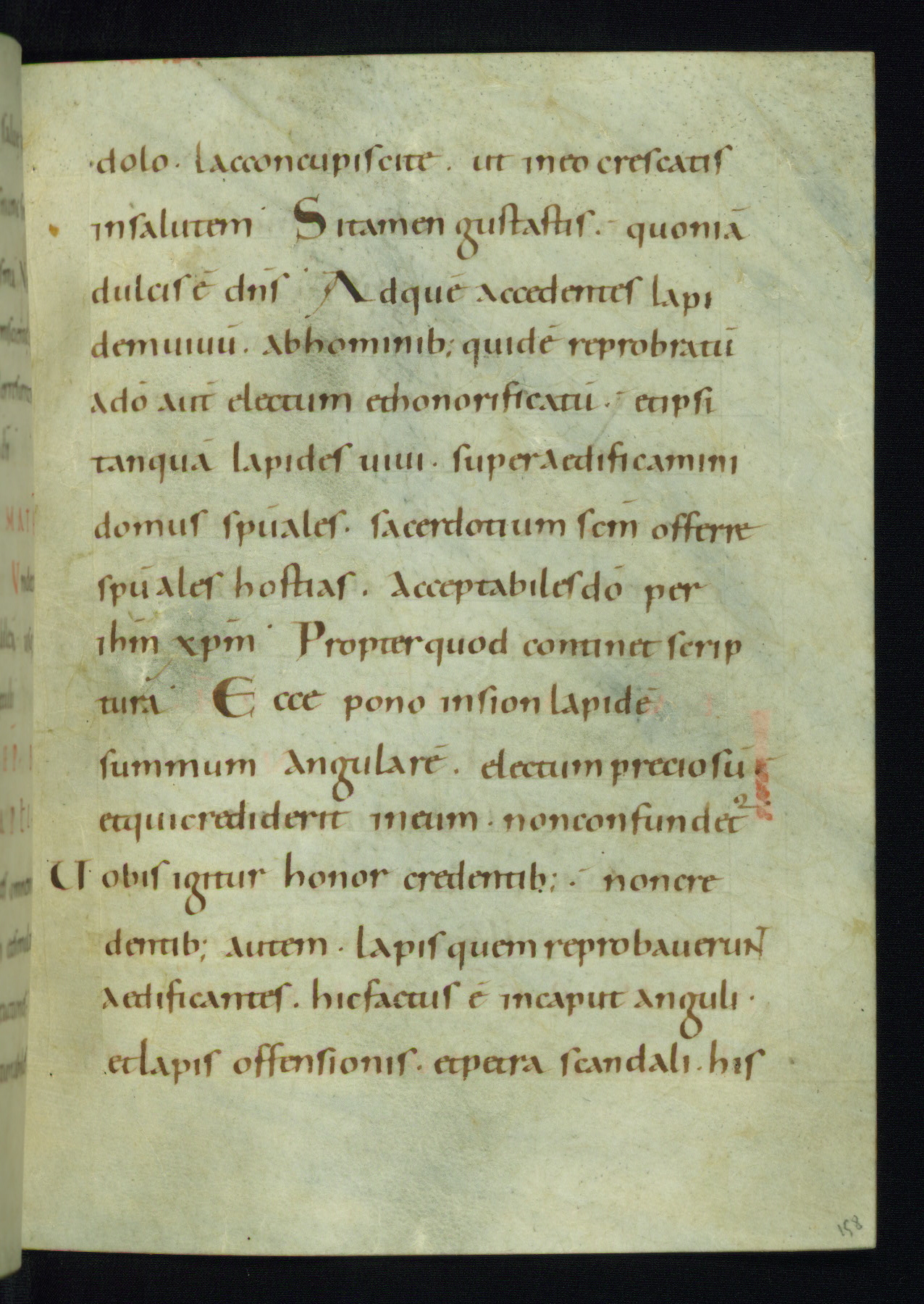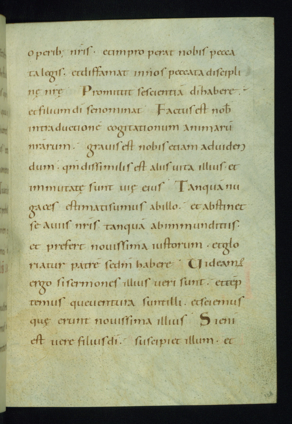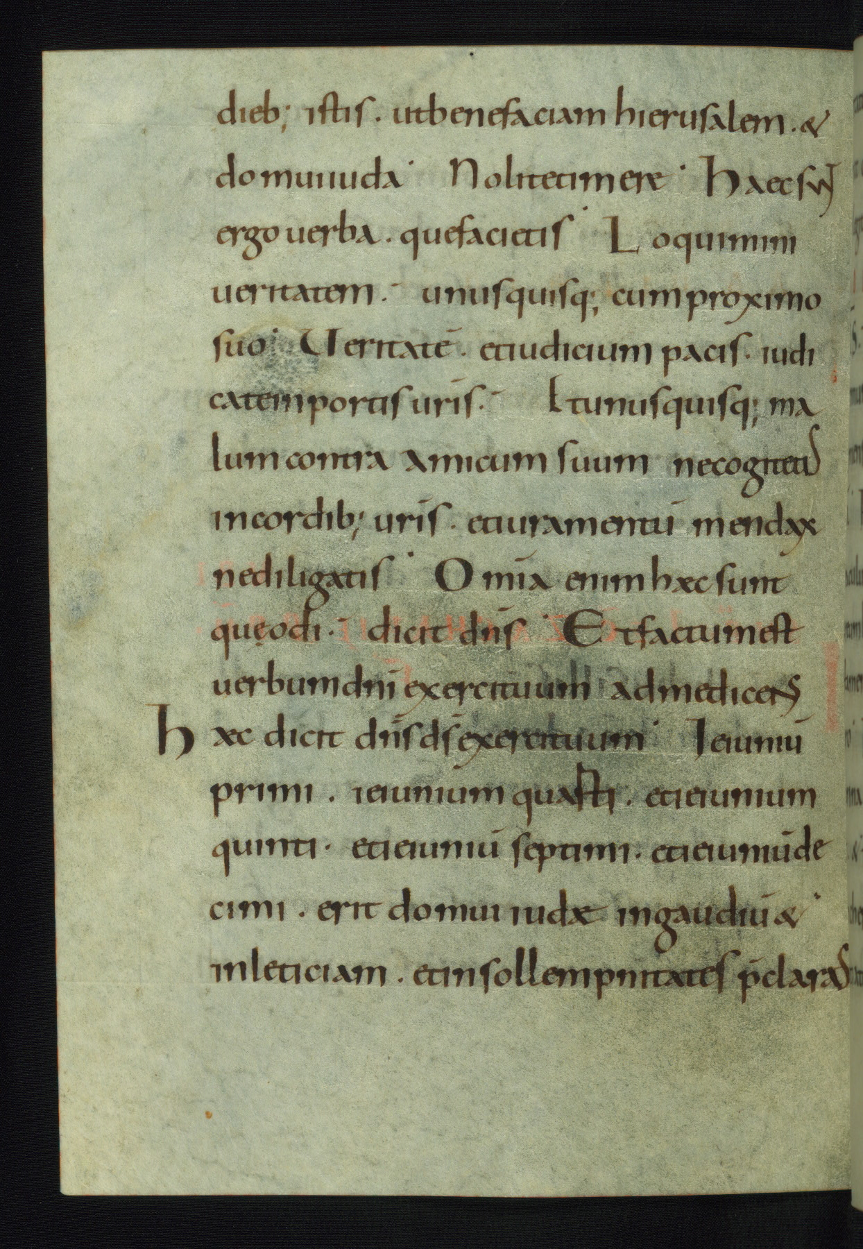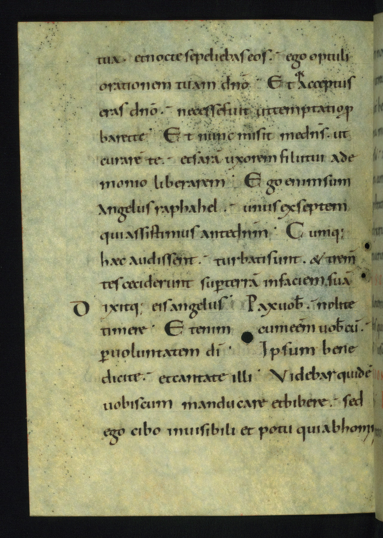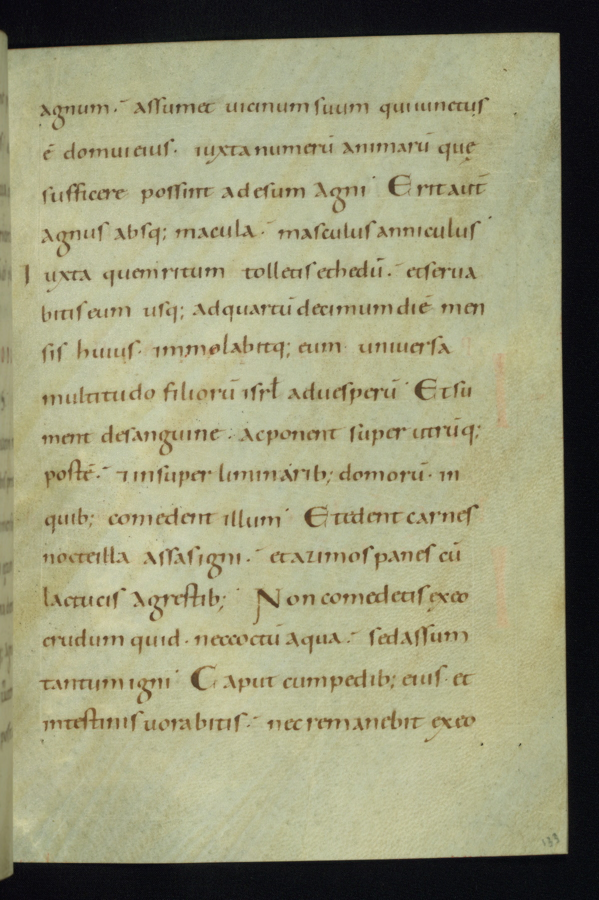 This Lectionary was created ca. 1000 in Trier. Written in a clear Caroline minuscule, it contains decorated initials at the openings of important readings. A set of illuminated letters marks the beginning of the Epistle and Gospel lessons for Easter; they display the hierarchy of scripts with capital letters decorated with gold leaf or drawn in red ink, followed by uncial and Caroline minuscule. Initials in orange, sometimes filled with gold, mark the divisions of the text. The book has been stylistically compared with Ottonian manuscripts, especially with a Psalter preserved in Trier (Stadtbibliothek, Ms. 7) illuminated by the so-called Master of the Registrum Gregorii.