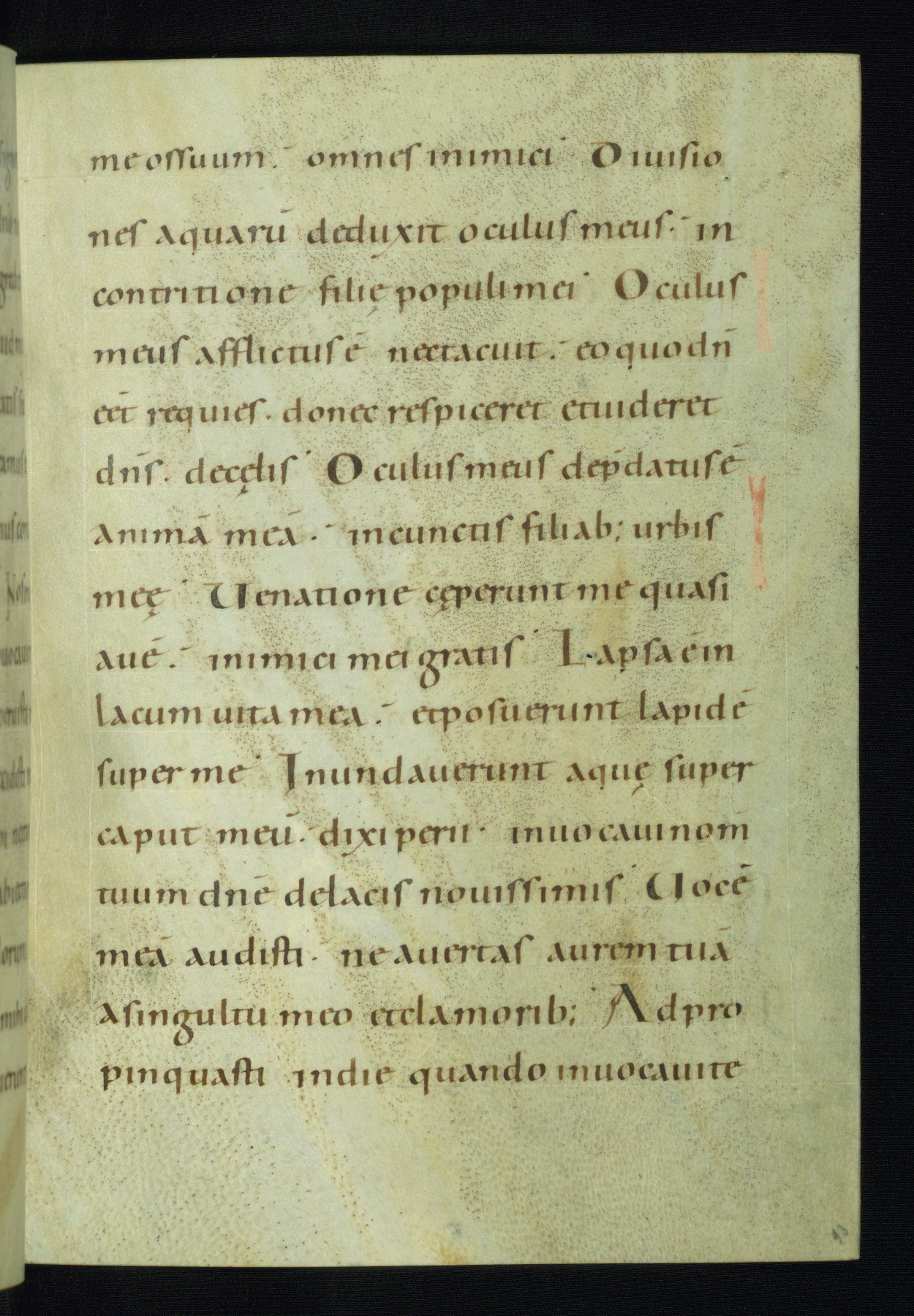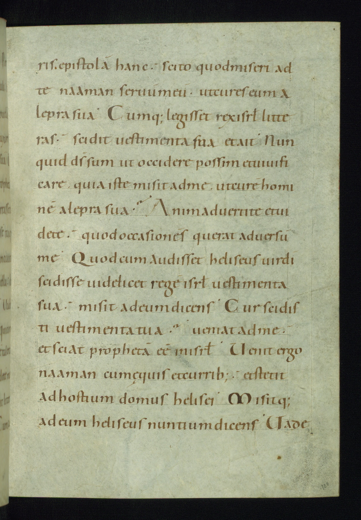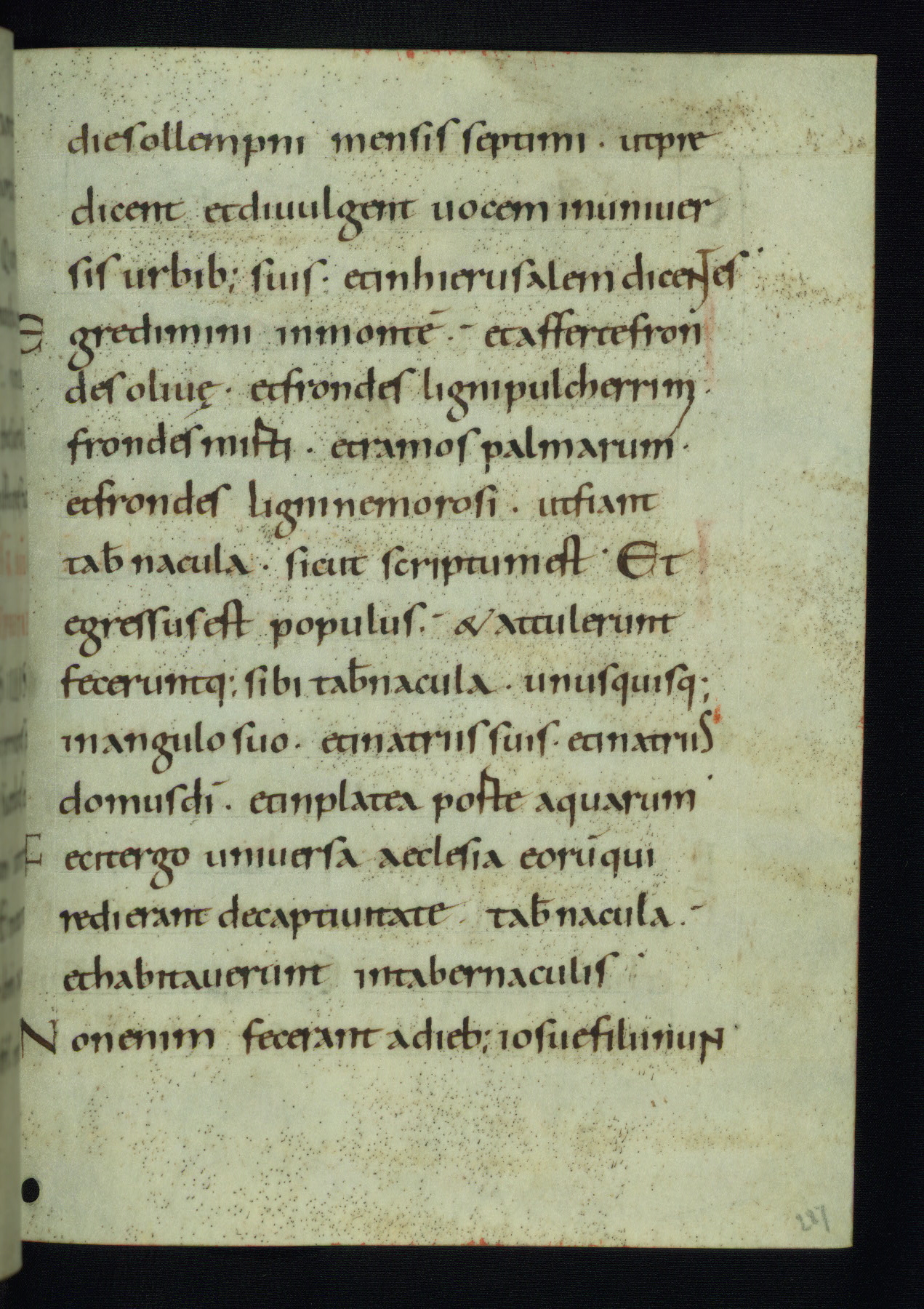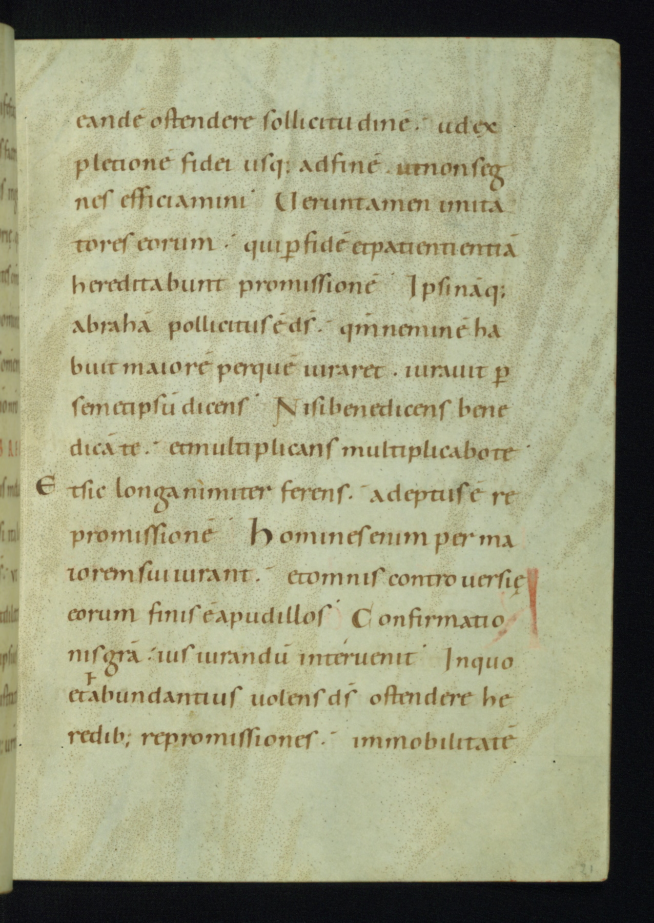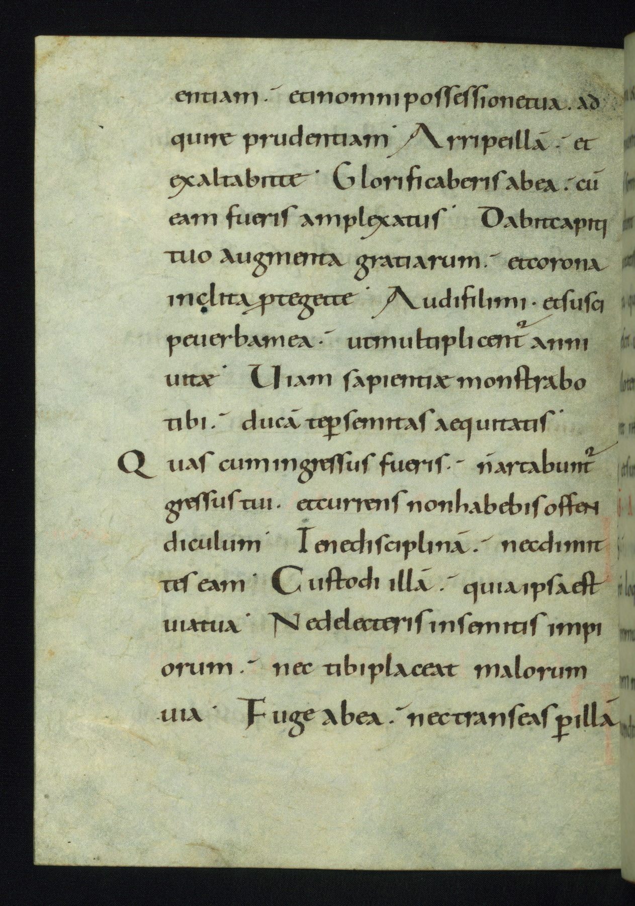 This Lectionary was created ca. 1000 in Trier. Written in a clear Caroline minuscule, it contains decorated initials at the openings of important readings. A set of illuminated letters marks the beginning of the Epistle and Gospel lessons for Easter; they display the hierarchy of scripts with capital letters decorated with gold leaf or drawn in red ink, followed by uncial and Caroline minuscule. Initials in orange, sometimes filled with gold, mark the divisions of the text. The book has been stylistically compared with Ottonian manuscripts, especially with a Psalter preserved in Trier (Stadtbibliothek, Ms. 7) illuminated by the so-called Master of the Registrum Gregorii.