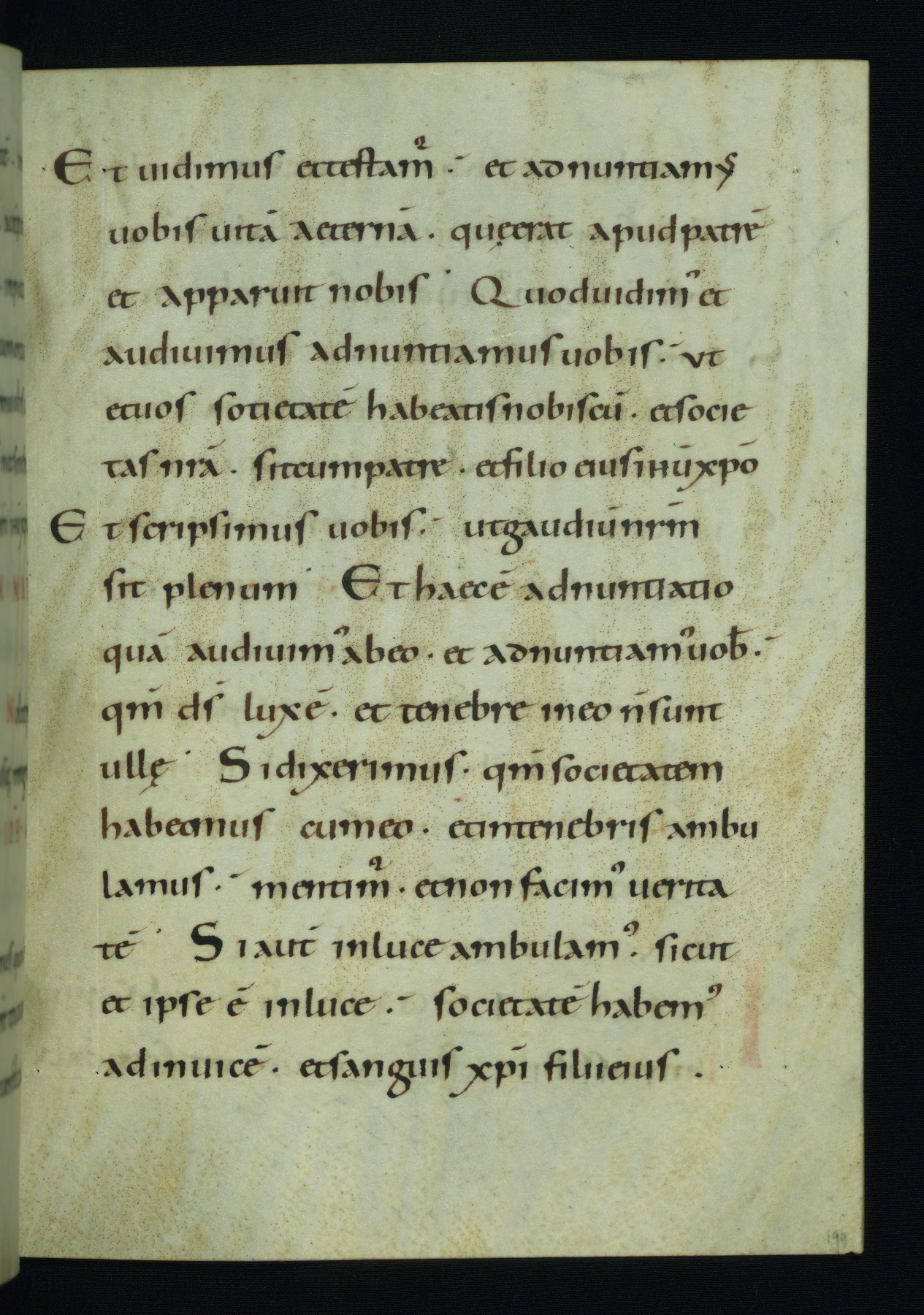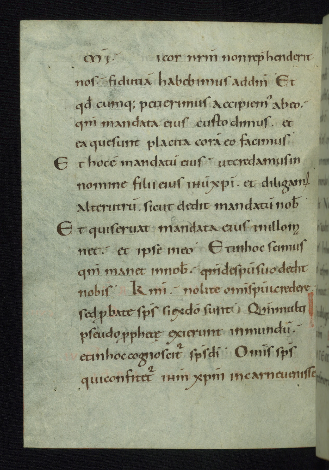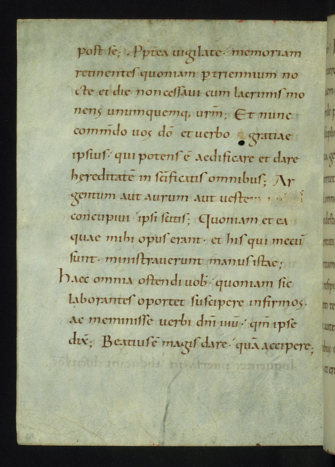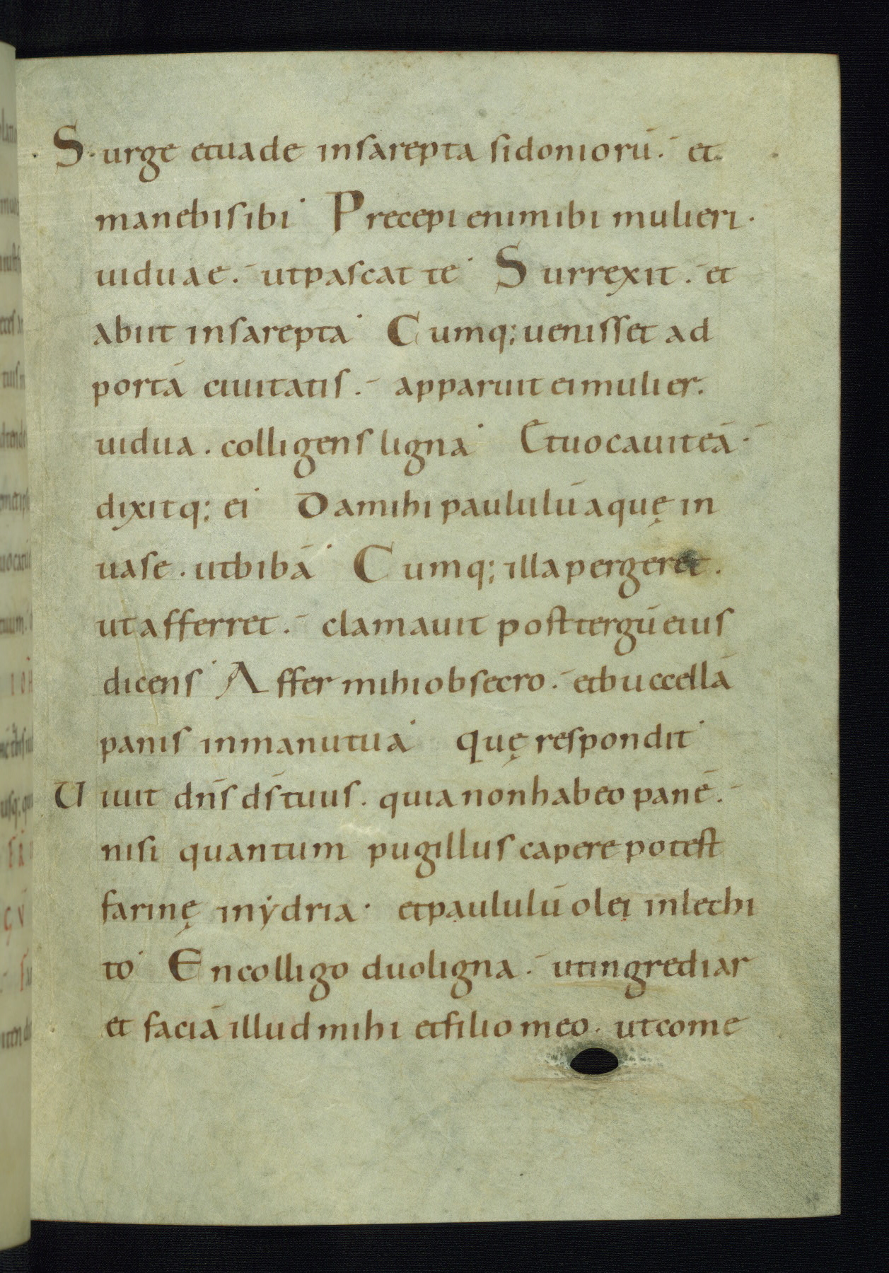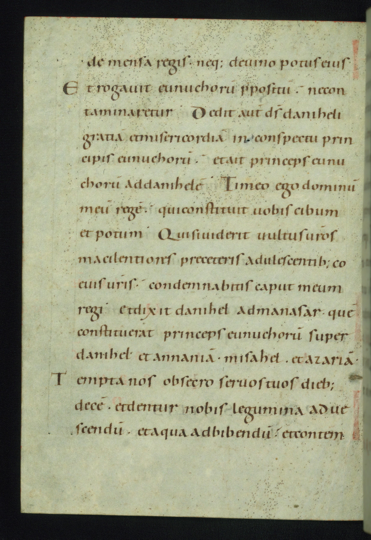This Lectionary was created ca. 1000 in Trier. Written in a clear Caroline minuscule, it contains decorated initials at the openings of important readings. A set of illuminated letters marks the beginning of the Epistle and Gospel lessons for Easter; they display the hierarchy of scripts with capital letters decorated with gold leaf or drawn in red ink, followed by uncial and Caroline minuscule. Initials in orange, sometimes filled with gold, mark the divisions of the text. The book has been stylistically compared with Ottonian manuscripts, especially with a Psalter preserved in Trier (Stadtbibliothek, Ms. 7) illuminated by the so-called Master of the Registrum Gregorii.