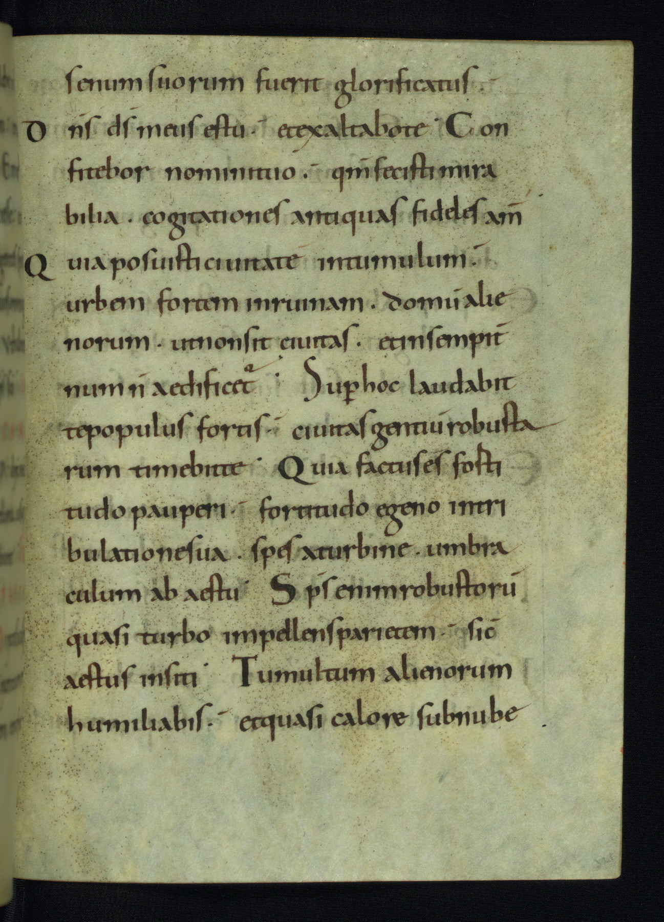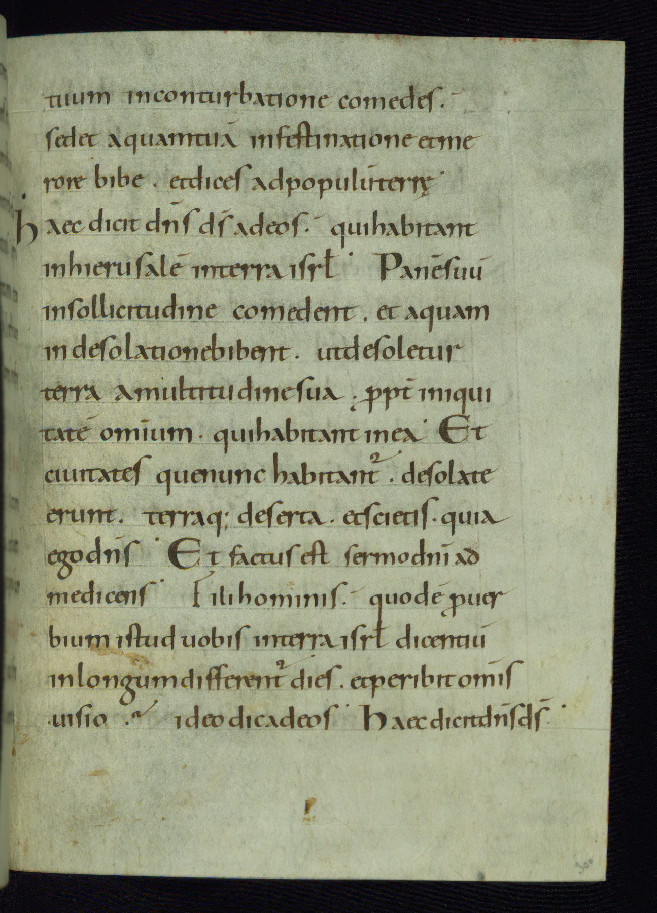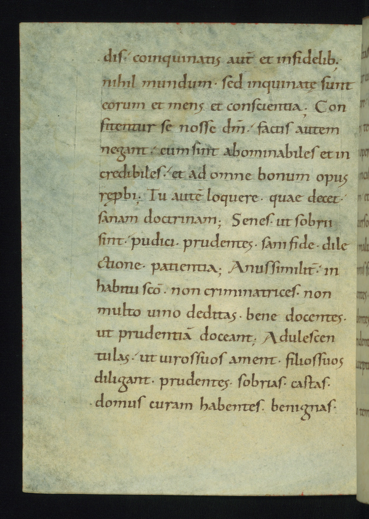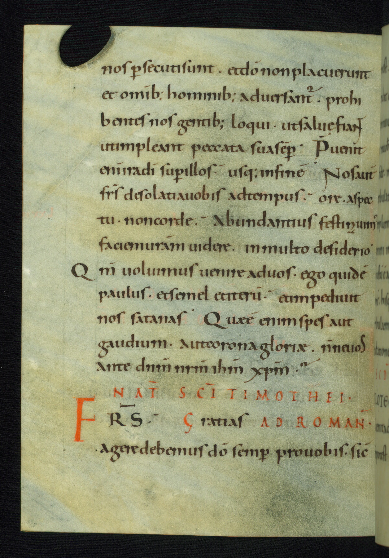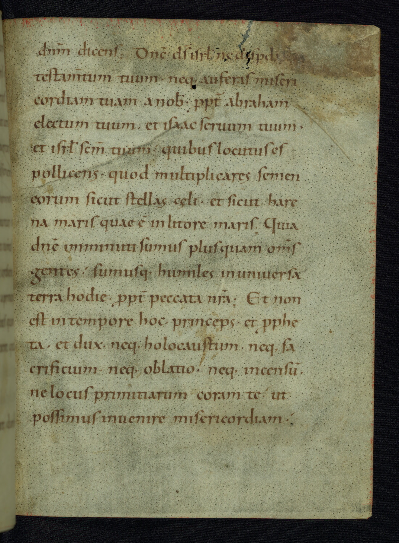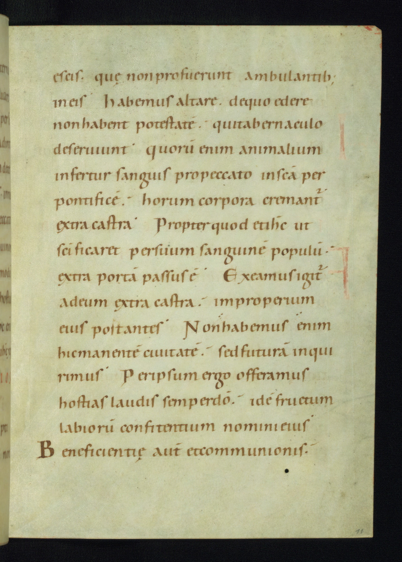 This Lectionary was created ca. 1000 in Trier. Written in a clear Caroline minuscule, it contains decorated initials at the openings of important readings. A set of illuminated letters marks the beginning of the Epistle and Gospel lessons for Easter; they display the hierarchy of scripts with capital letters decorated with gold leaf or drawn in red ink, followed by uncial and Caroline minuscule. Initials in orange, sometimes filled with gold, mark the divisions of the text. The book has been stylistically compared with Ottonian manuscripts, especially with a Psalter preserved in Trier (Stadtbibliothek, Ms. 7) illuminated by the so-called Master of the Registrum Gregorii.