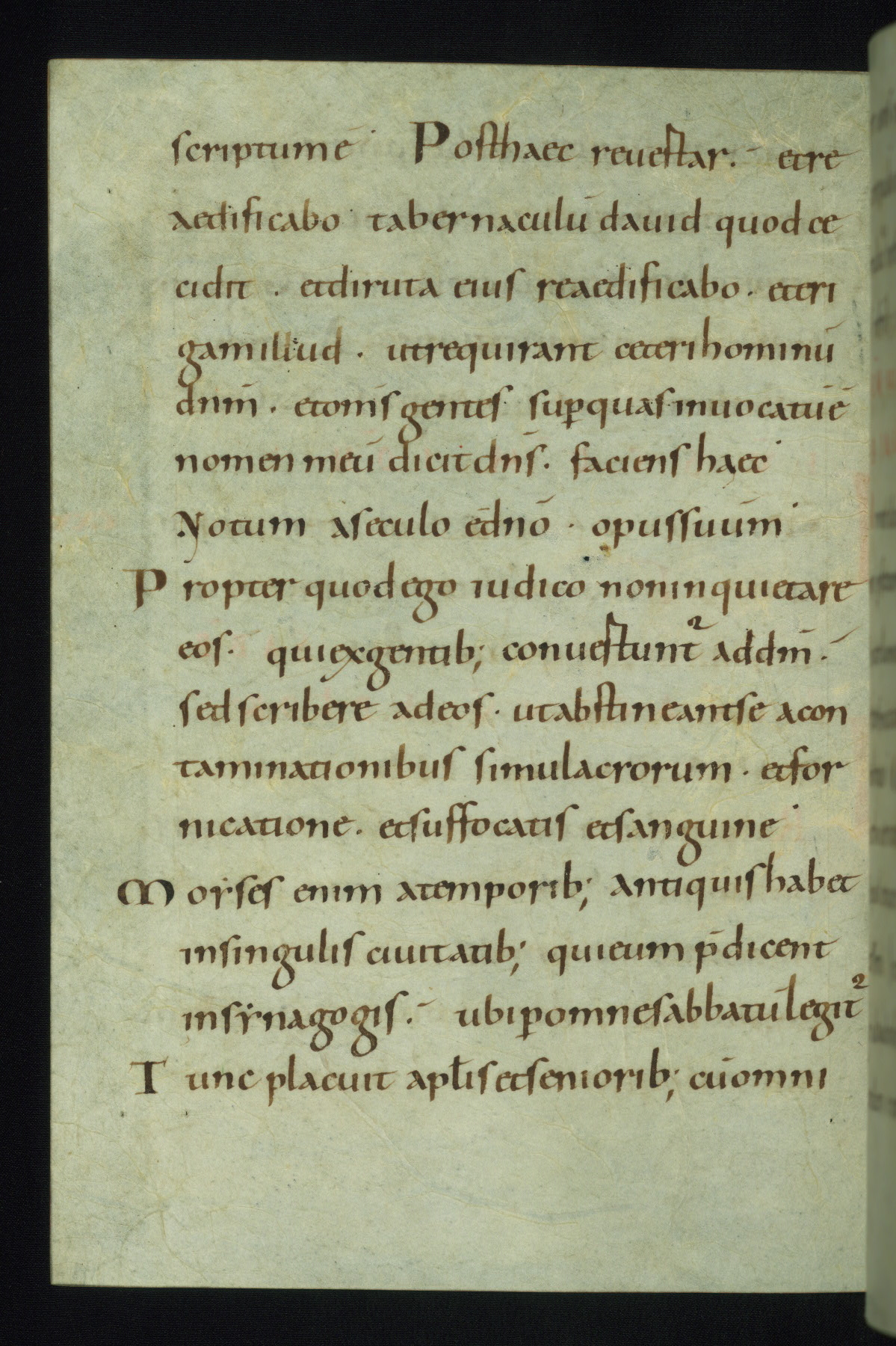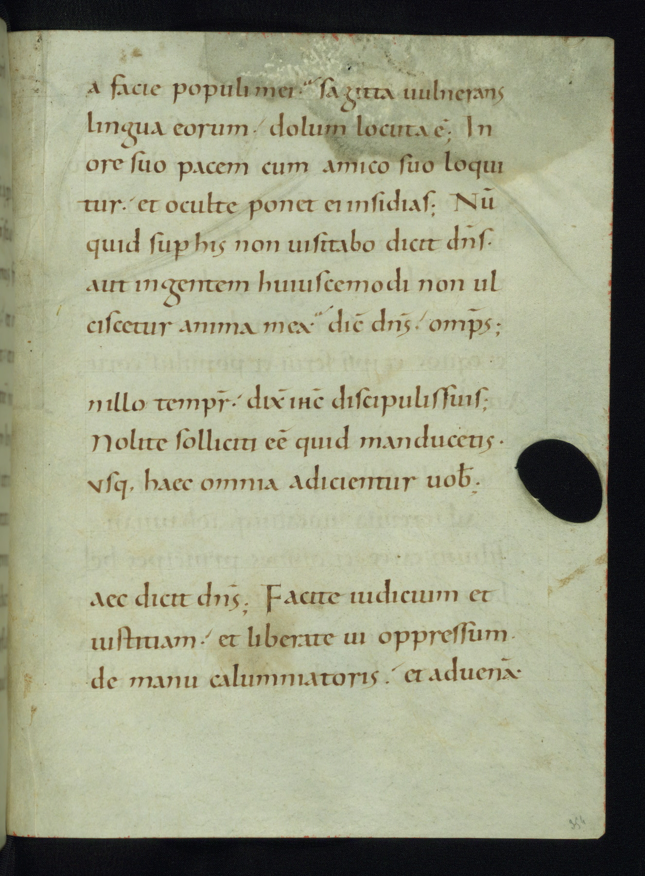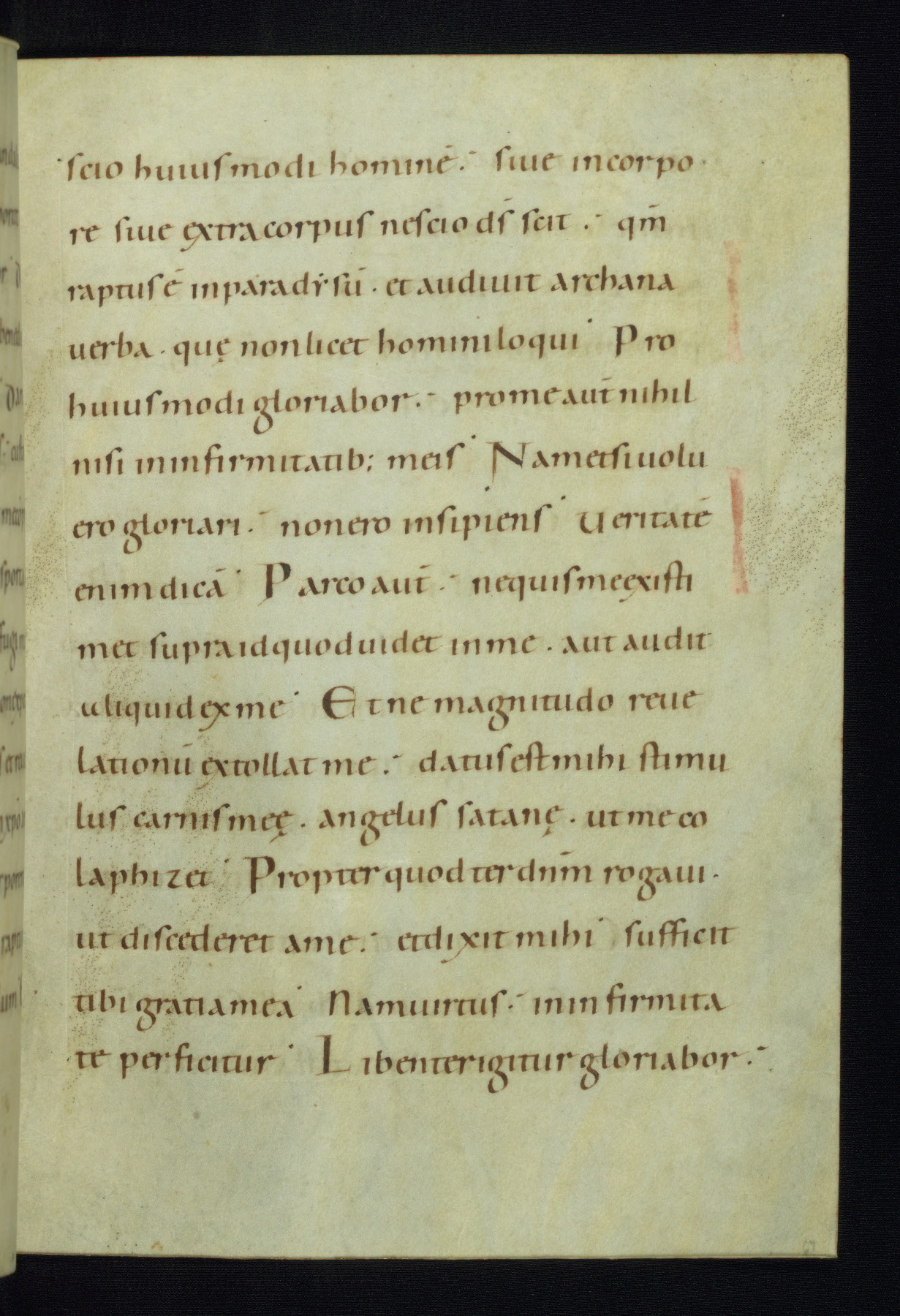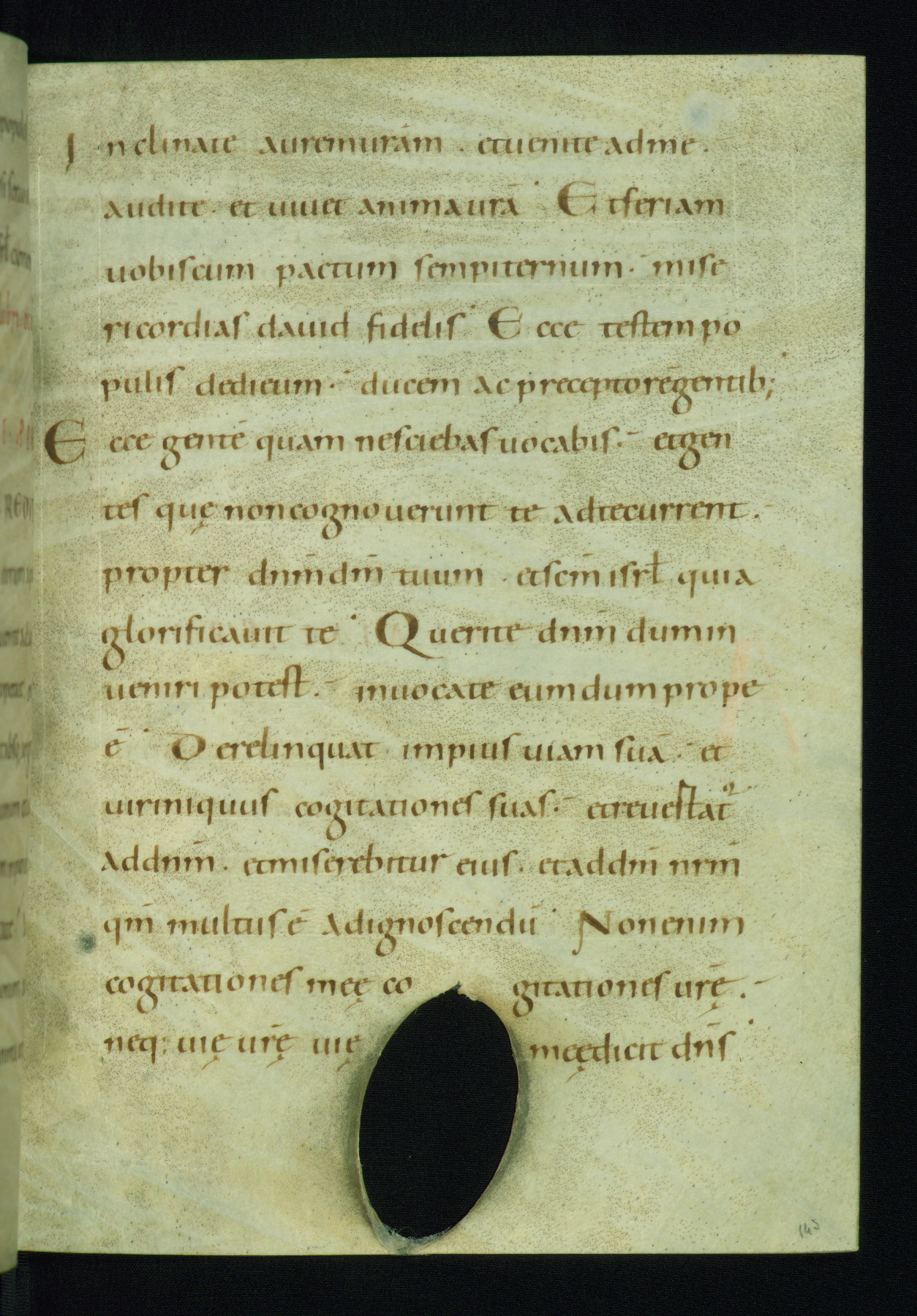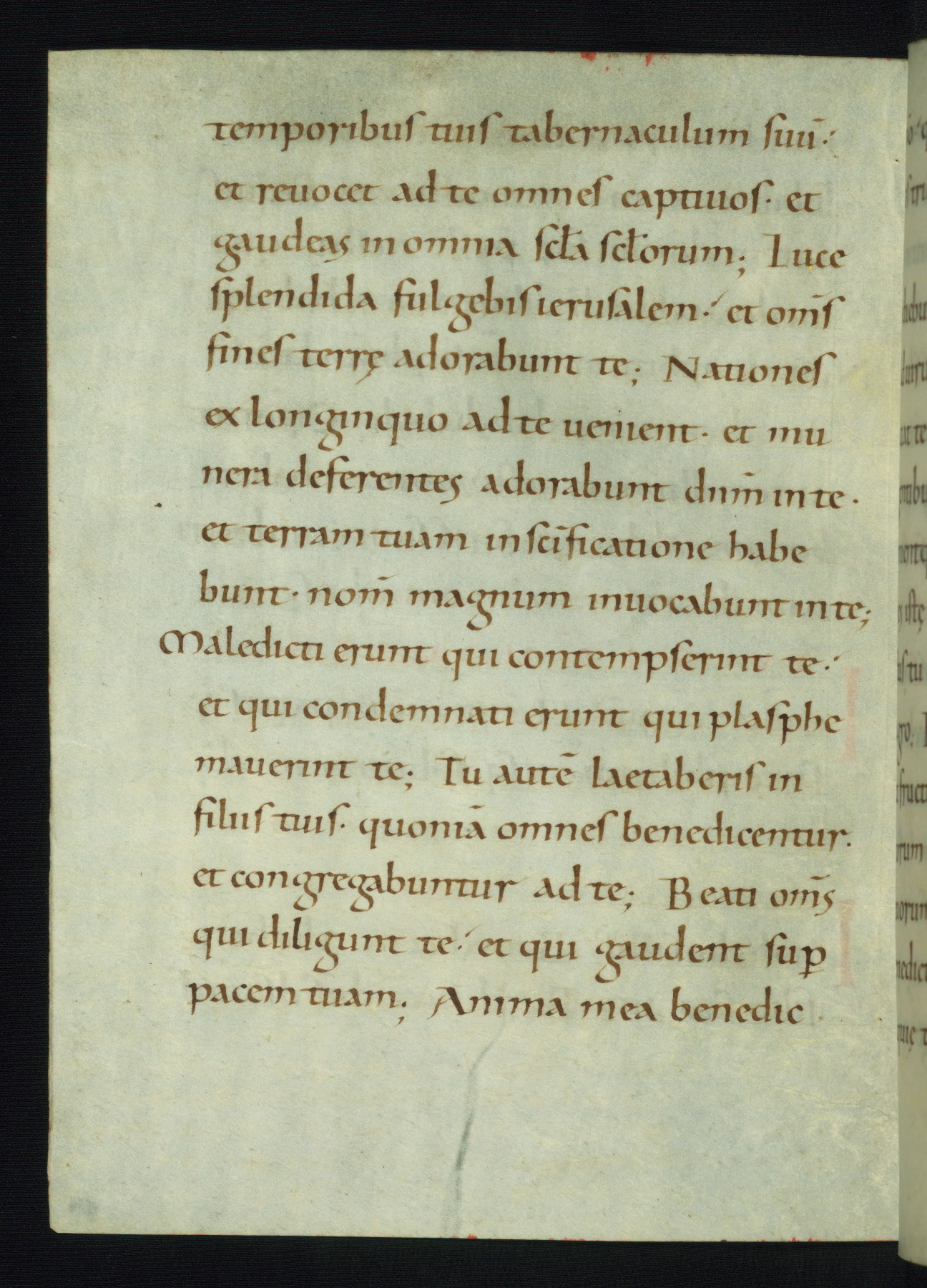 This Lectionary was created ca. 1000 in Trier. Written in a clear Caroline minuscule, it contains decorated initials at the openings of important readings. A set of illuminated letters marks the beginning of the Epistle and Gospel lessons for Easter; they display the hierarchy of scripts with capital letters decorated with gold leaf or drawn in red ink, followed by uncial and Caroline minuscule. Initials in orange, sometimes filled with gold, mark the divisions of the text. The book has been stylistically compared with Ottonian manuscripts, especially with a Psalter preserved in Trier (Stadtbibliothek, Ms. 7) illuminated by the so-called Master of the Registrum Gregorii.