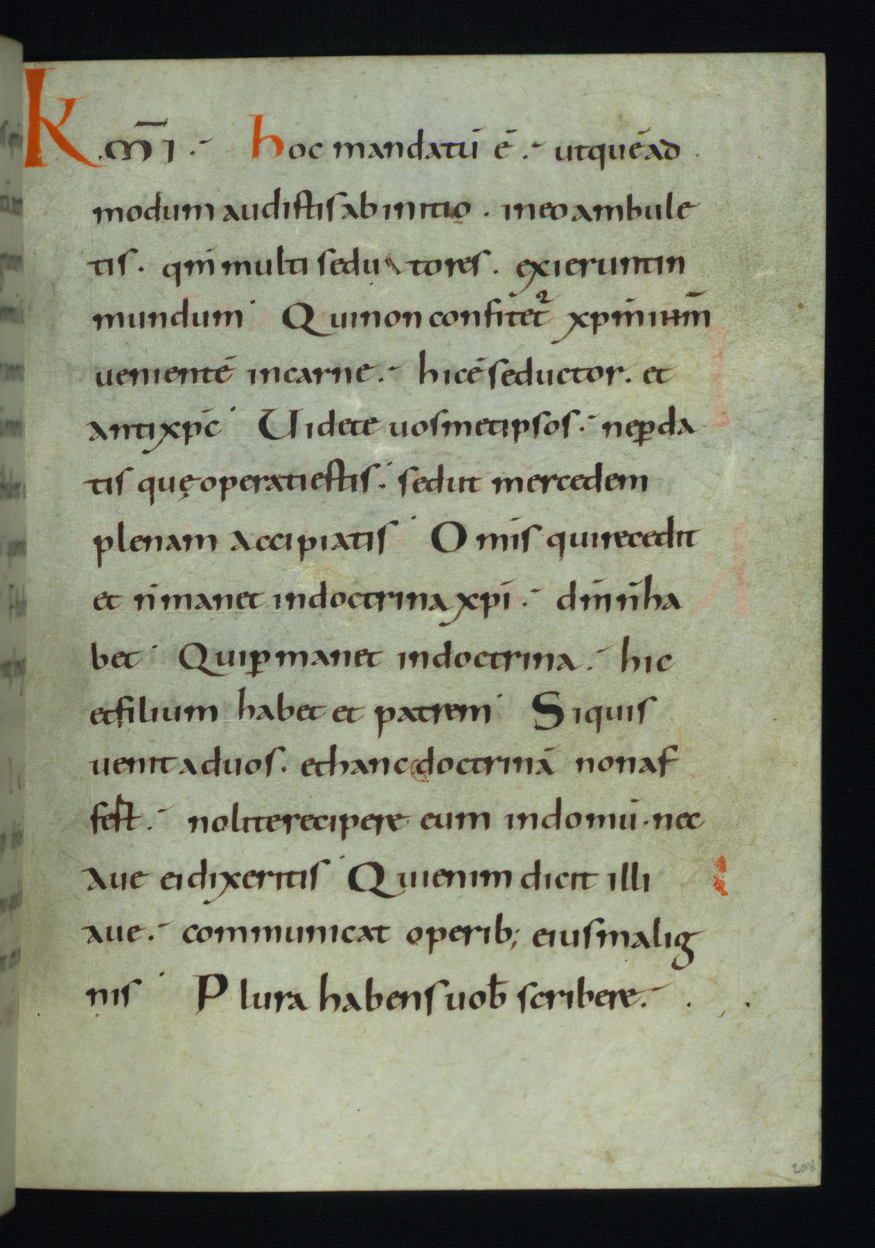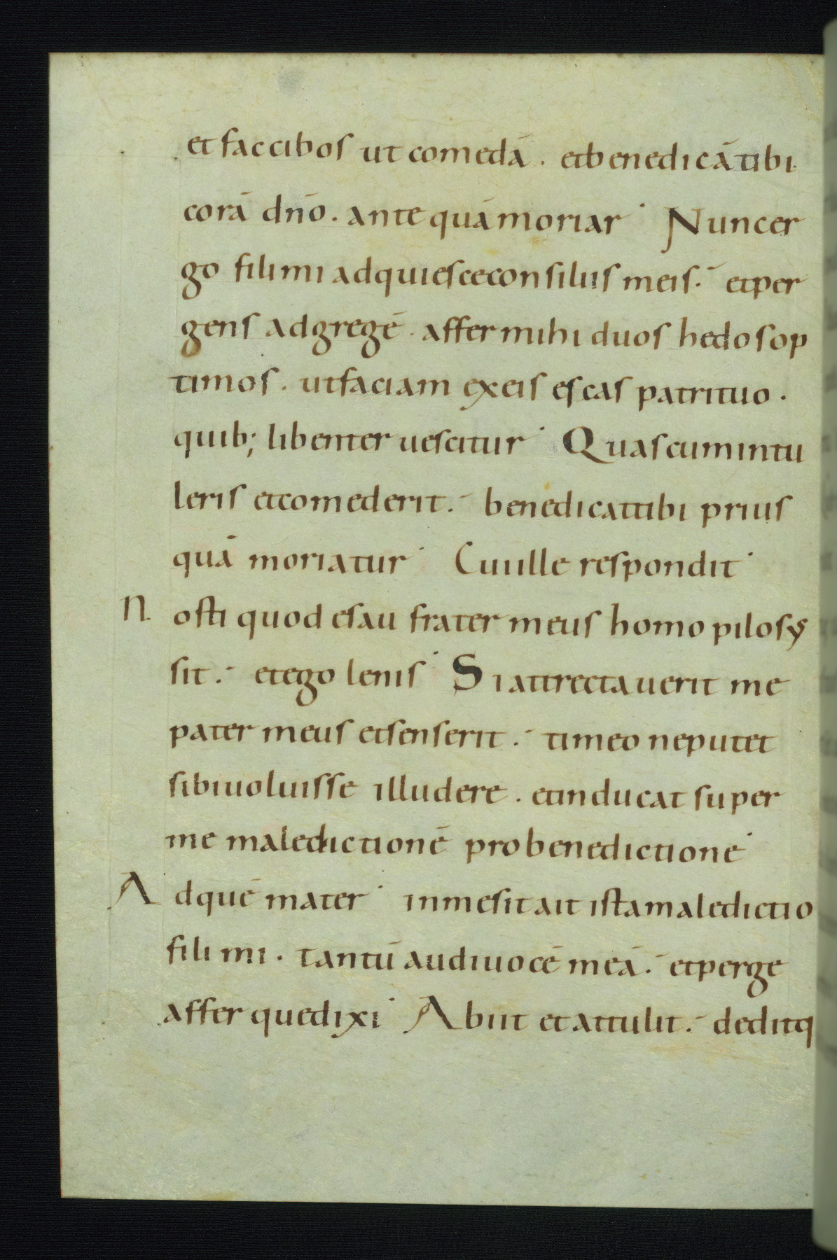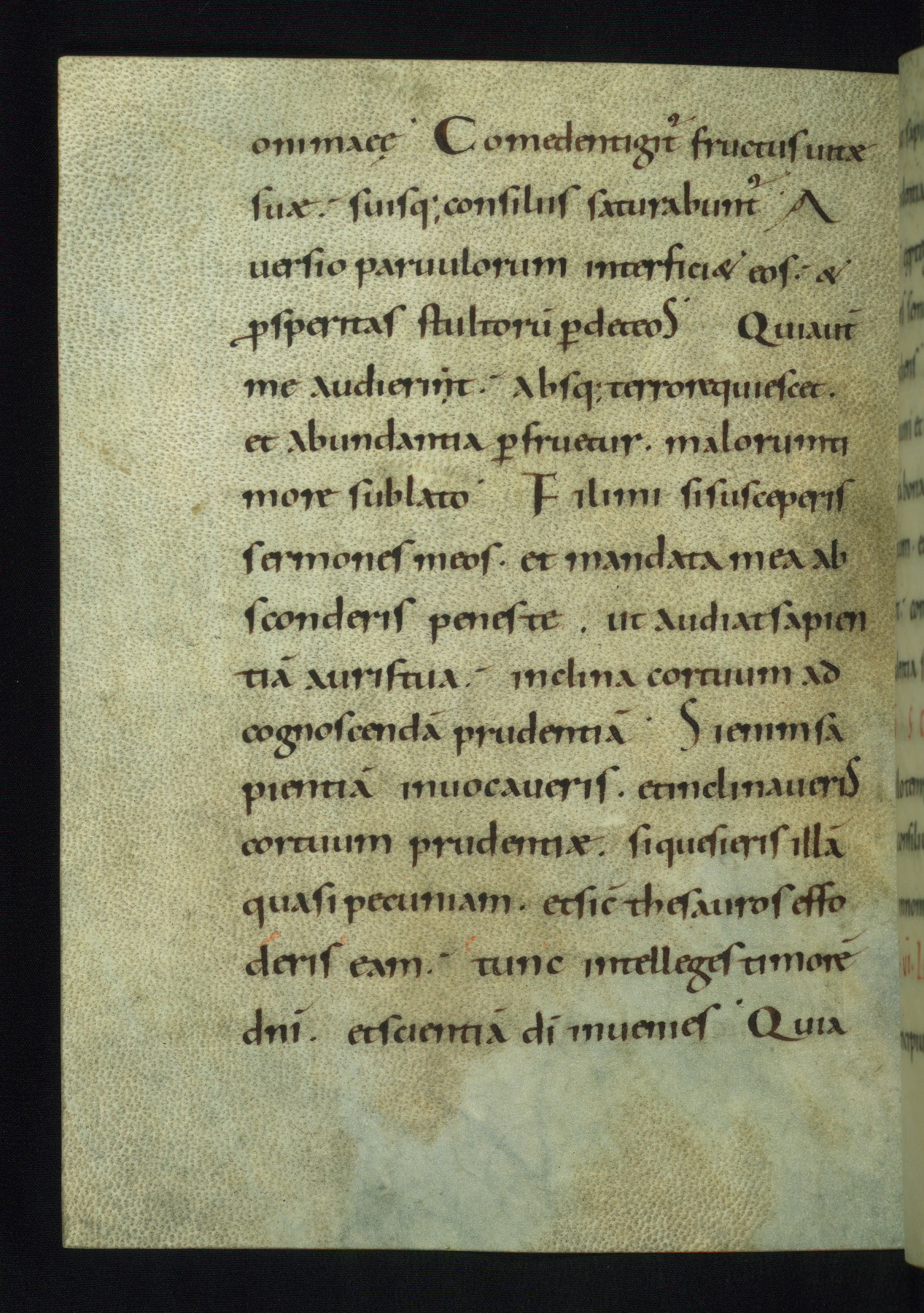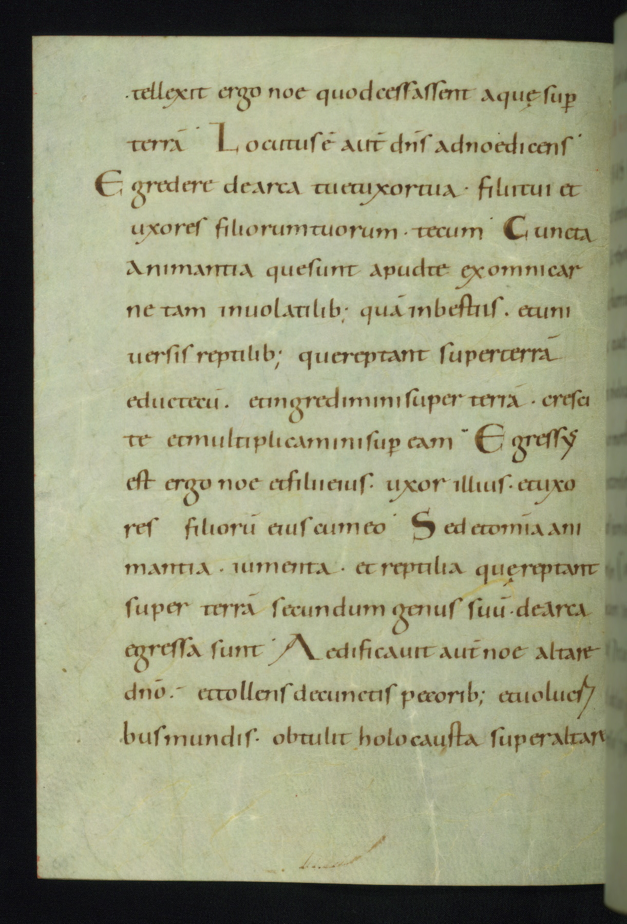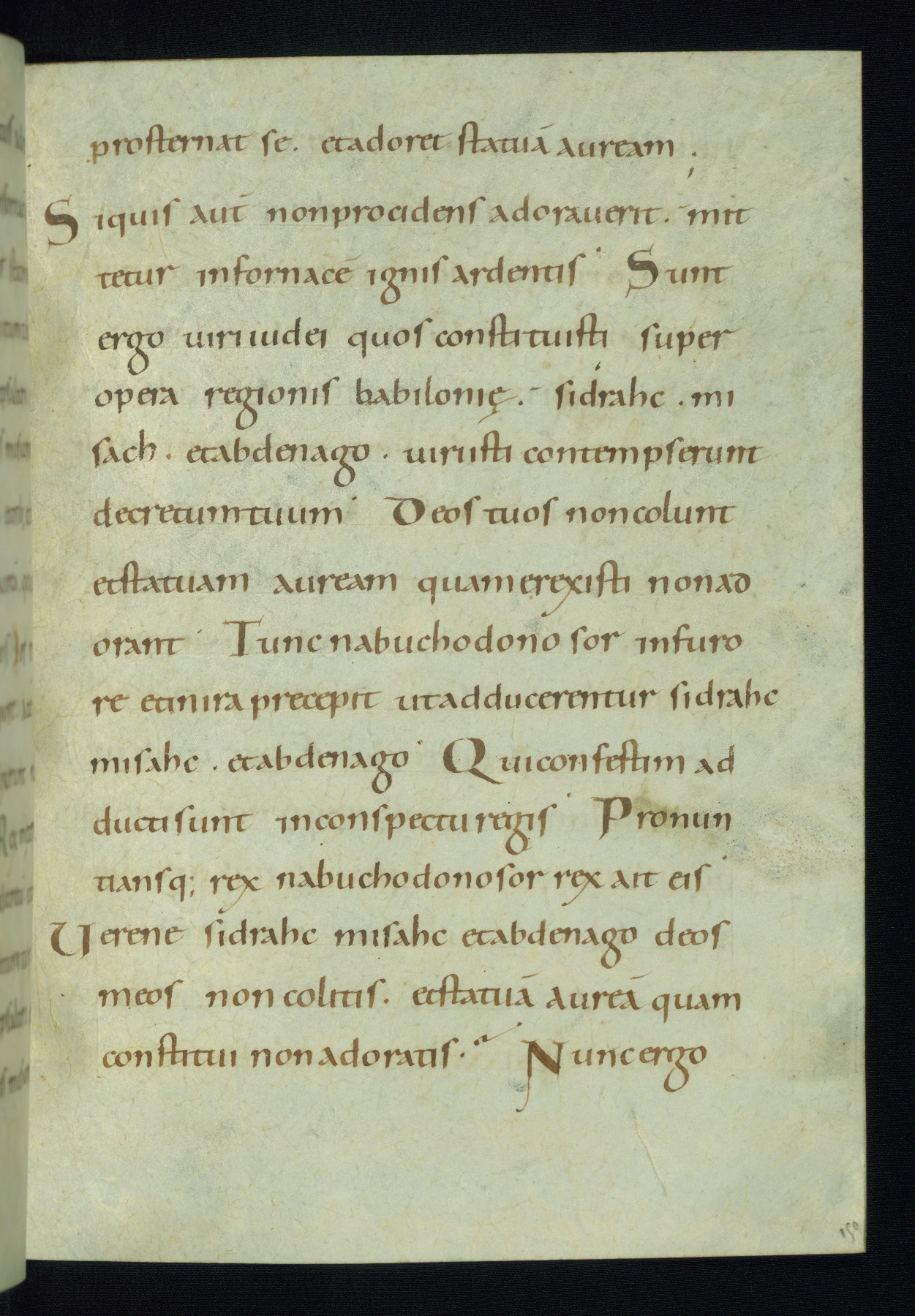 This Lectionary was created ca. 1000 in Trier. Written in a clear Caroline minuscule, it contains decorated initials at the openings of important readings. A set of illuminated letters marks the beginning of the Epistle and Gospel lessons for Easter; they display the hierarchy of scripts with capital letters decorated with gold leaf or drawn in red ink, followed by uncial and Caroline minuscule. Initials in orange, sometimes filled with gold, mark the divisions of the text. The book has been stylistically compared with Ottonian manuscripts, especially with a Psalter preserved in Trier (Stadtbibliothek, Ms. 7) illuminated by the so-called Master of the Registrum Gregorii.