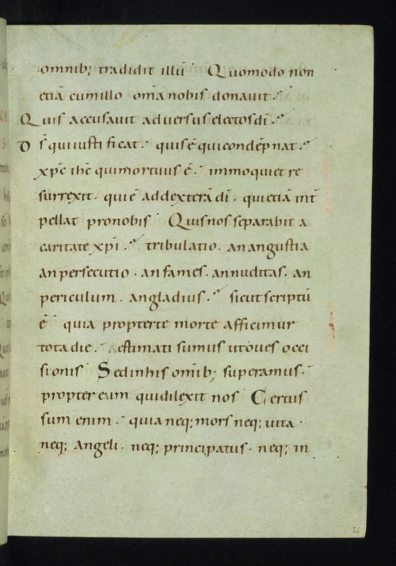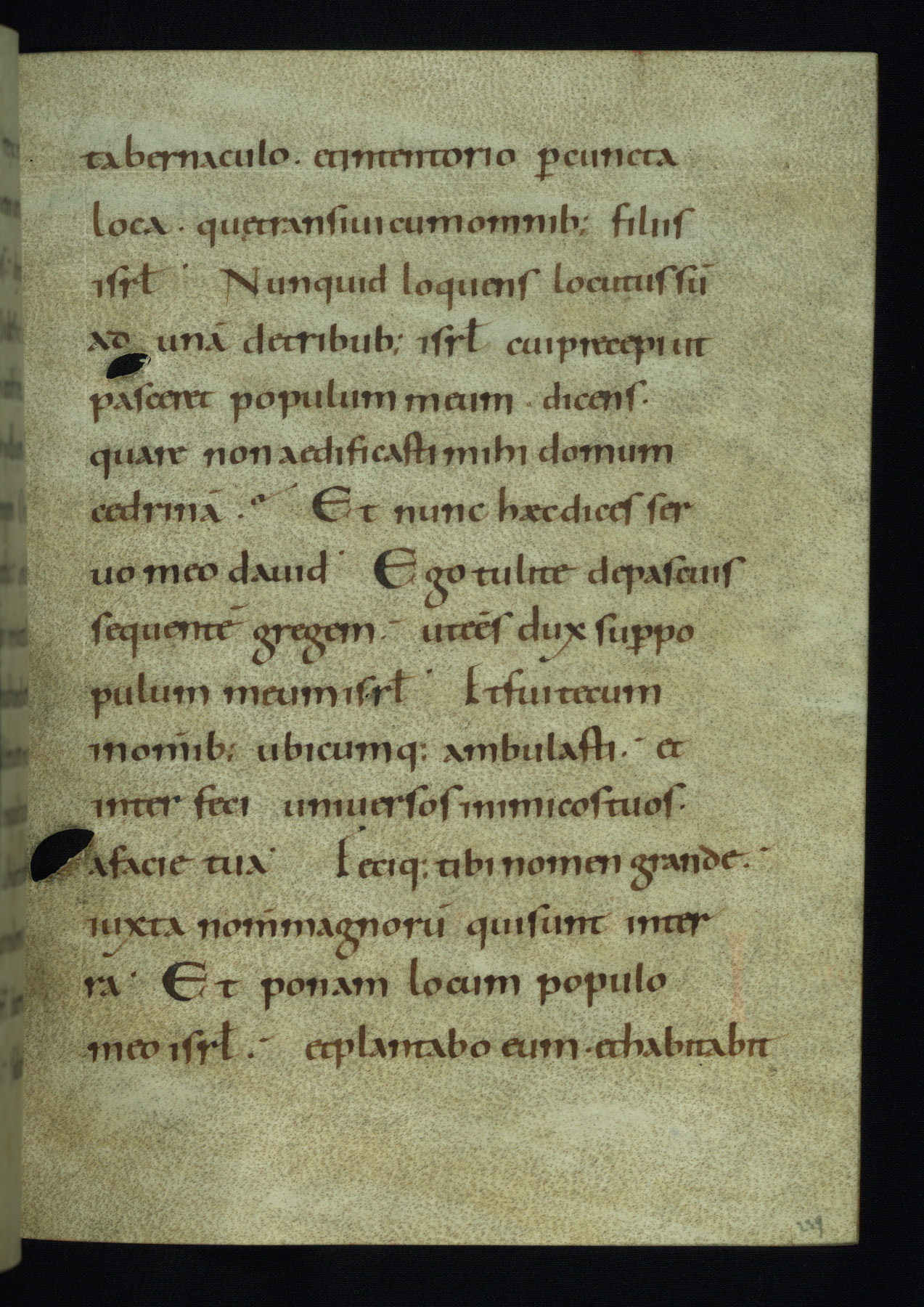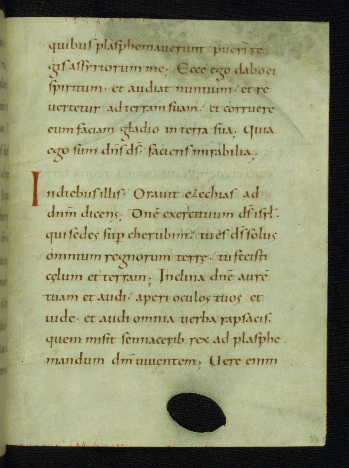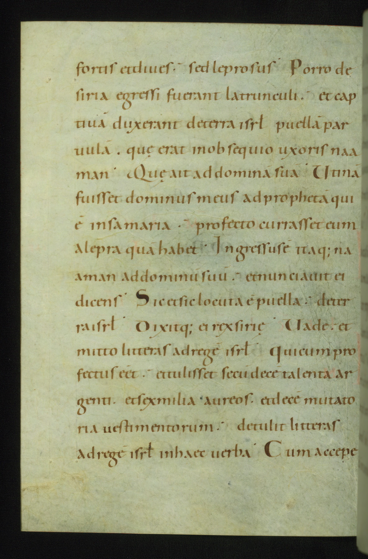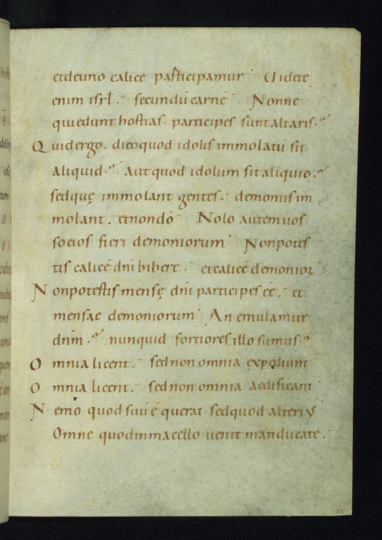 This Lectionary was created ca. 1000 in Trier. Written in a clear Caroline minuscule, it contains decorated initials at the openings of important readings. A set of illuminated letters marks the beginning of the Epistle and Gospel lessons for Easter; they display the hierarchy of scripts with capital letters decorated with gold leaf or drawn in red ink, followed by uncial and Caroline minuscule. Initials in orange, sometimes filled with gold, mark the divisions of the text. The book has been stylistically compared with Ottonian manuscripts, especially with a Psalter preserved in Trier (Stadtbibliothek, Ms. 7) illuminated by the so-called Master of the Registrum Gregorii.