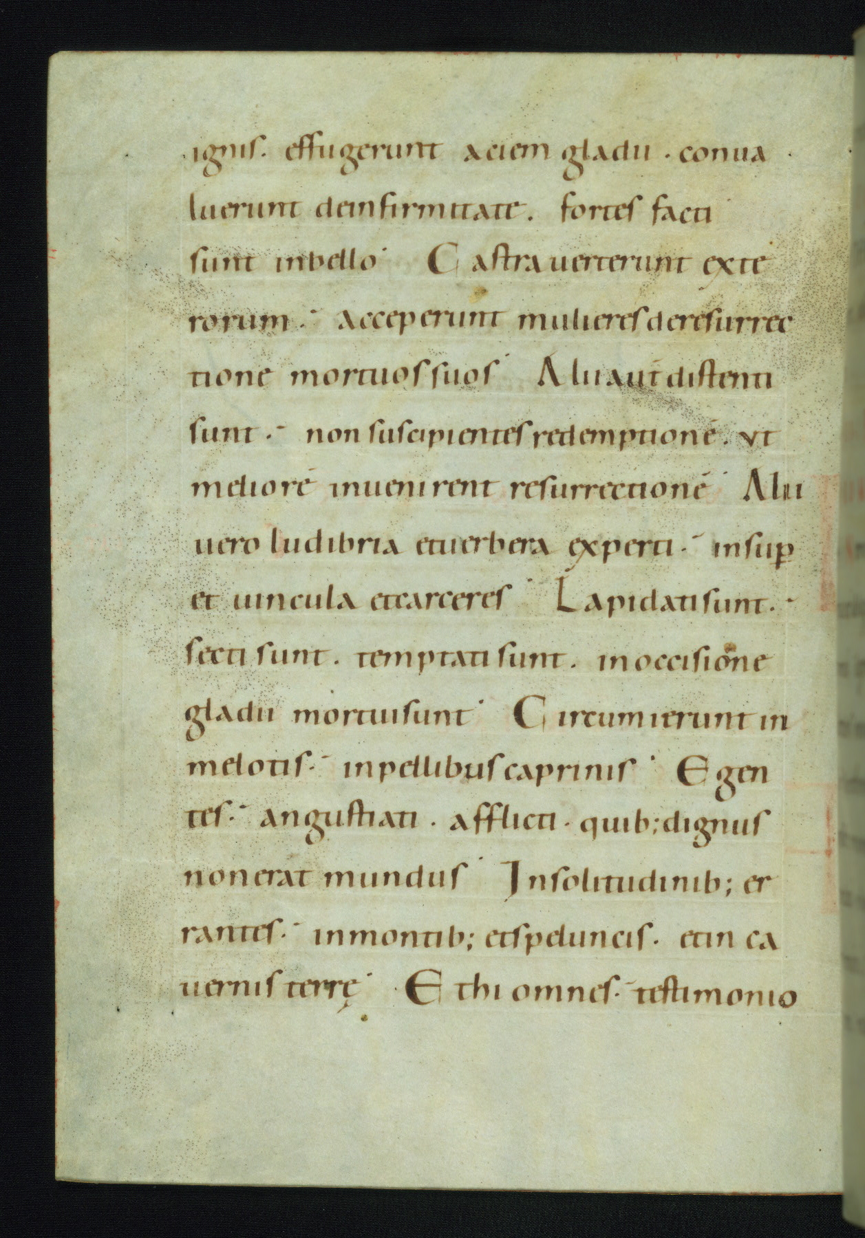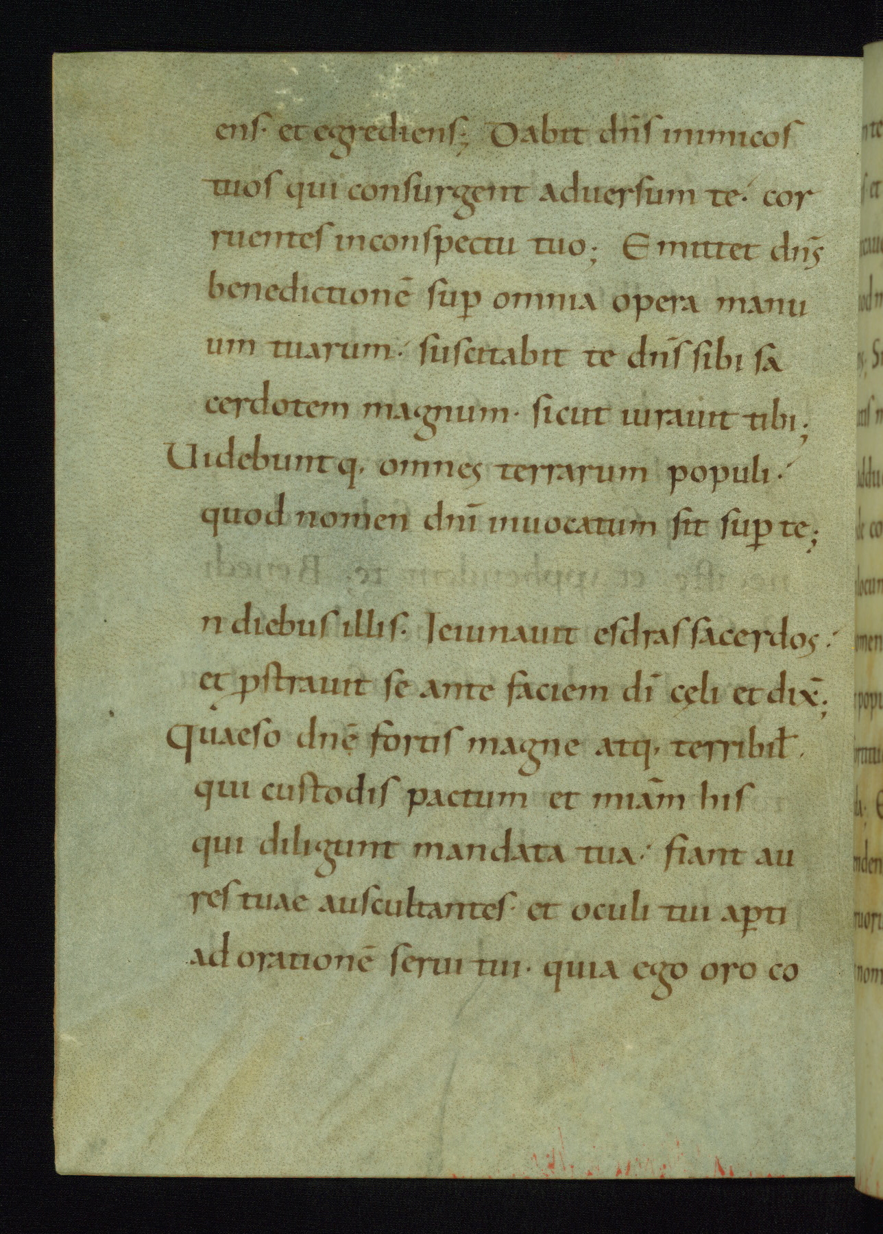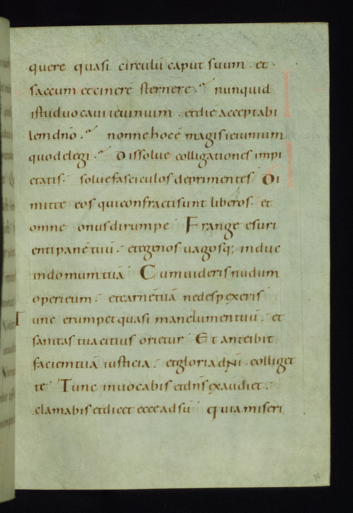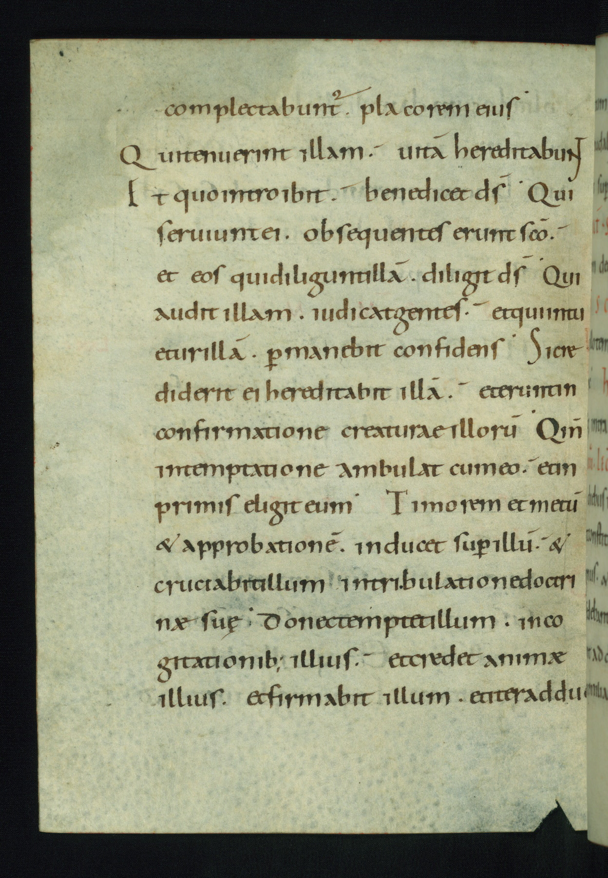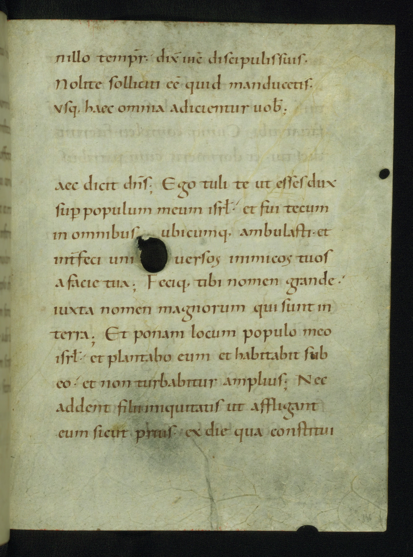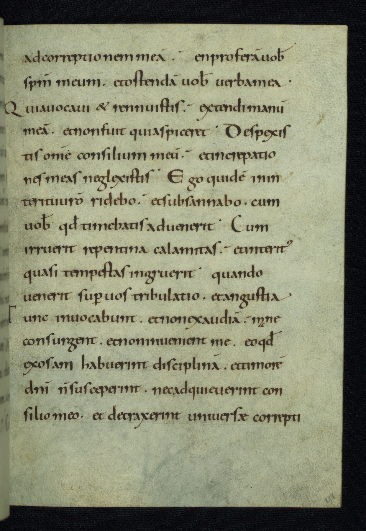 This Lectionary was created ca. 1000 in Trier. Written in a clear Caroline minuscule, it contains decorated initials at the openings of important readings. A set of illuminated letters marks the beginning of the Epistle and Gospel lessons for Easter; they display the hierarchy of scripts with capital letters decorated with gold leaf or drawn in red ink, followed by uncial and Caroline minuscule. Initials in orange, sometimes filled with gold, mark the divisions of the text. The book has been stylistically compared with Ottonian manuscripts, especially with a Psalter preserved in Trier (Stadtbibliothek, Ms. 7) illuminated by the so-called Master of the Registrum Gregorii.