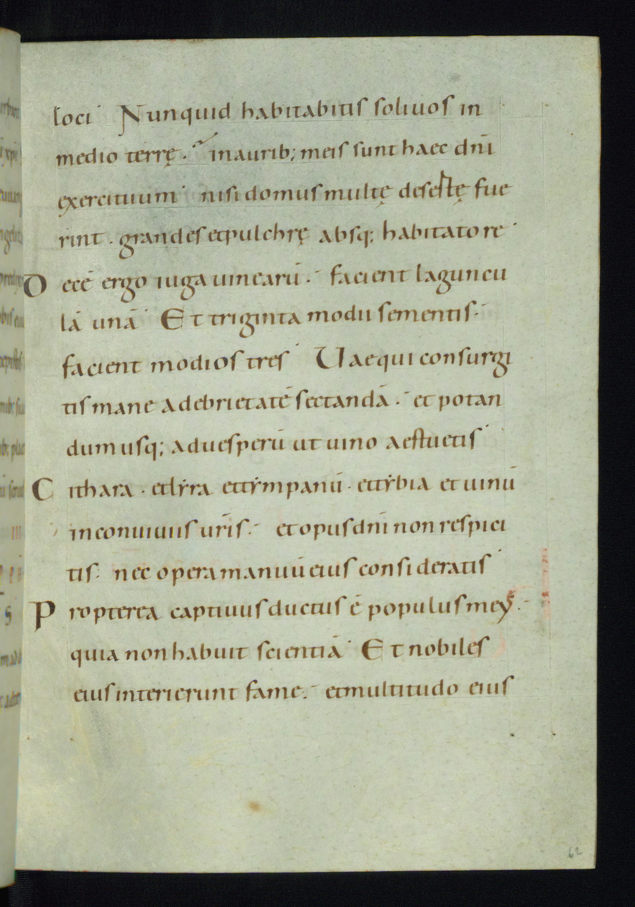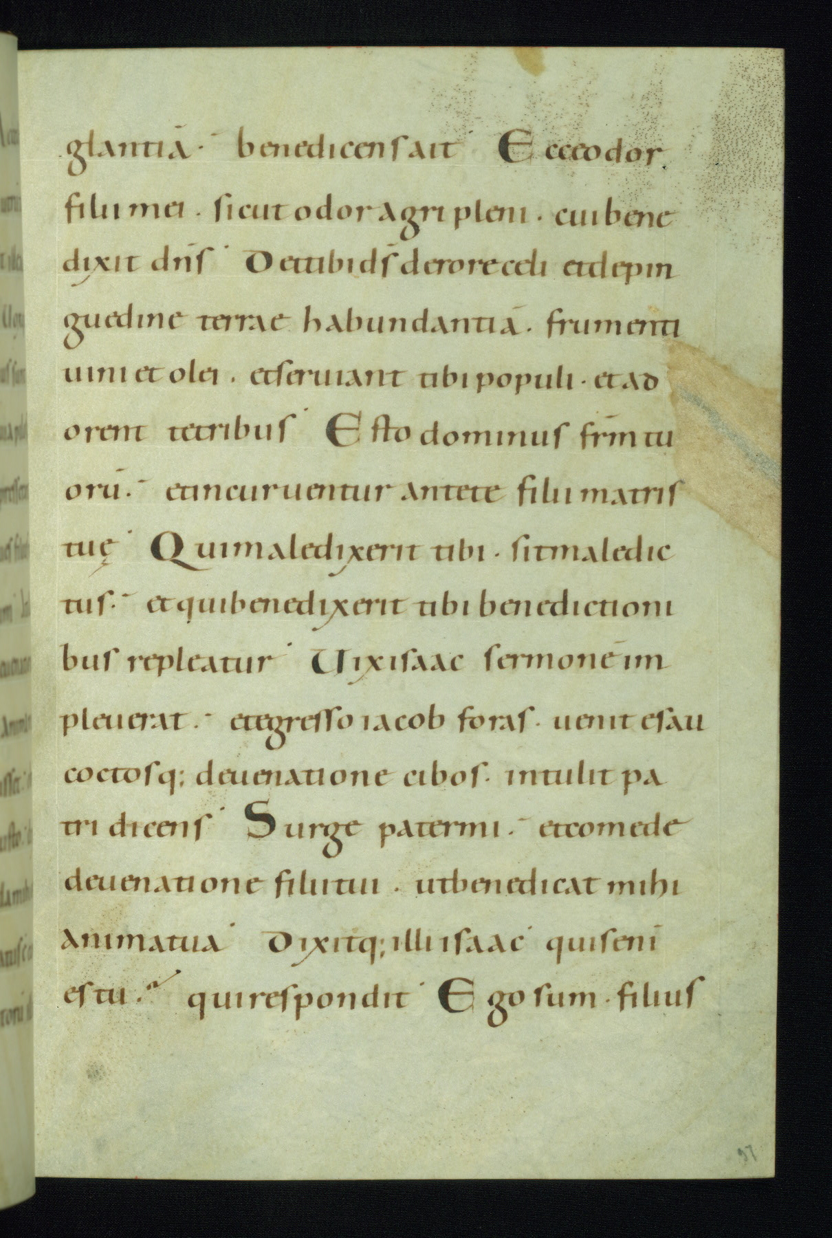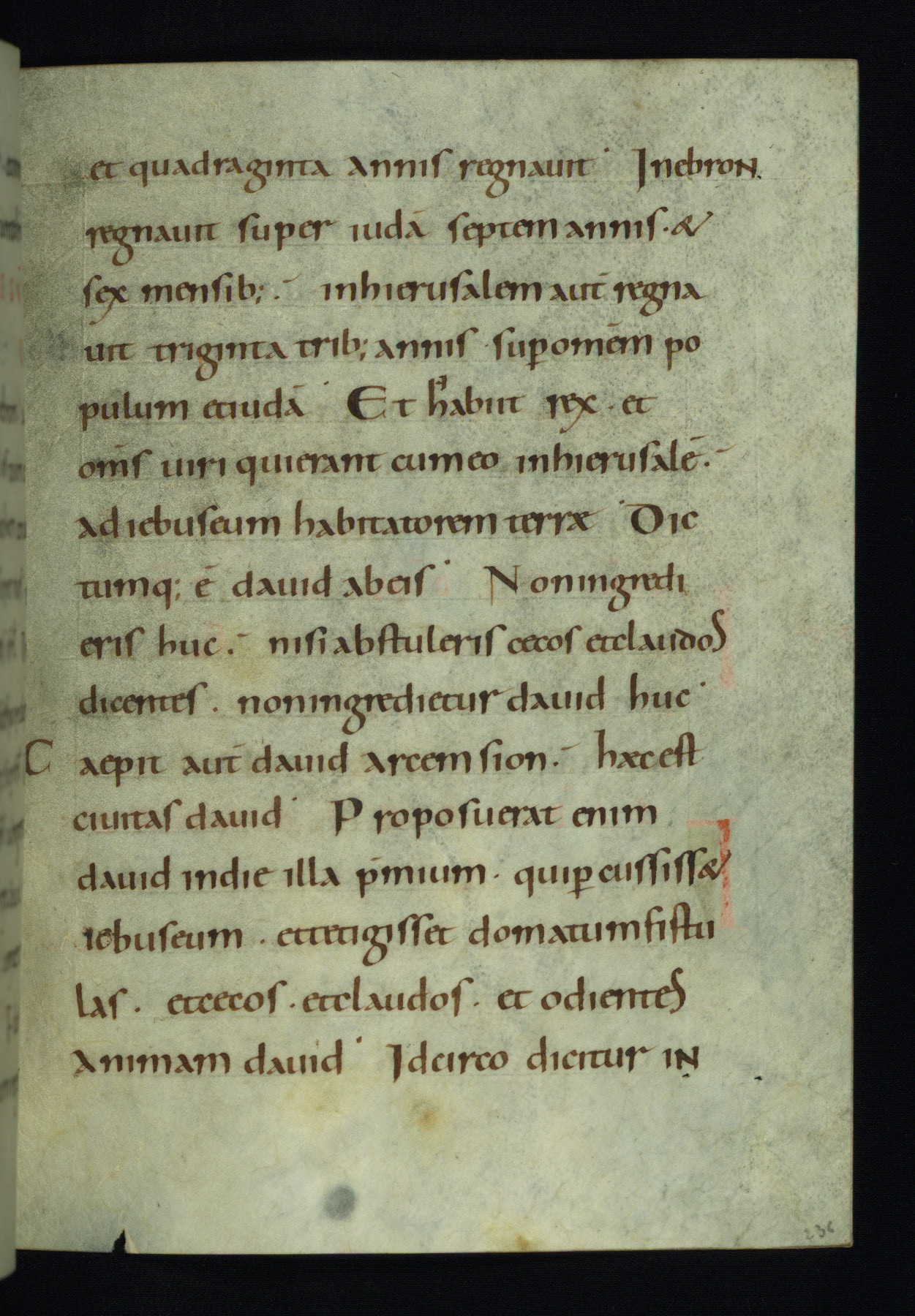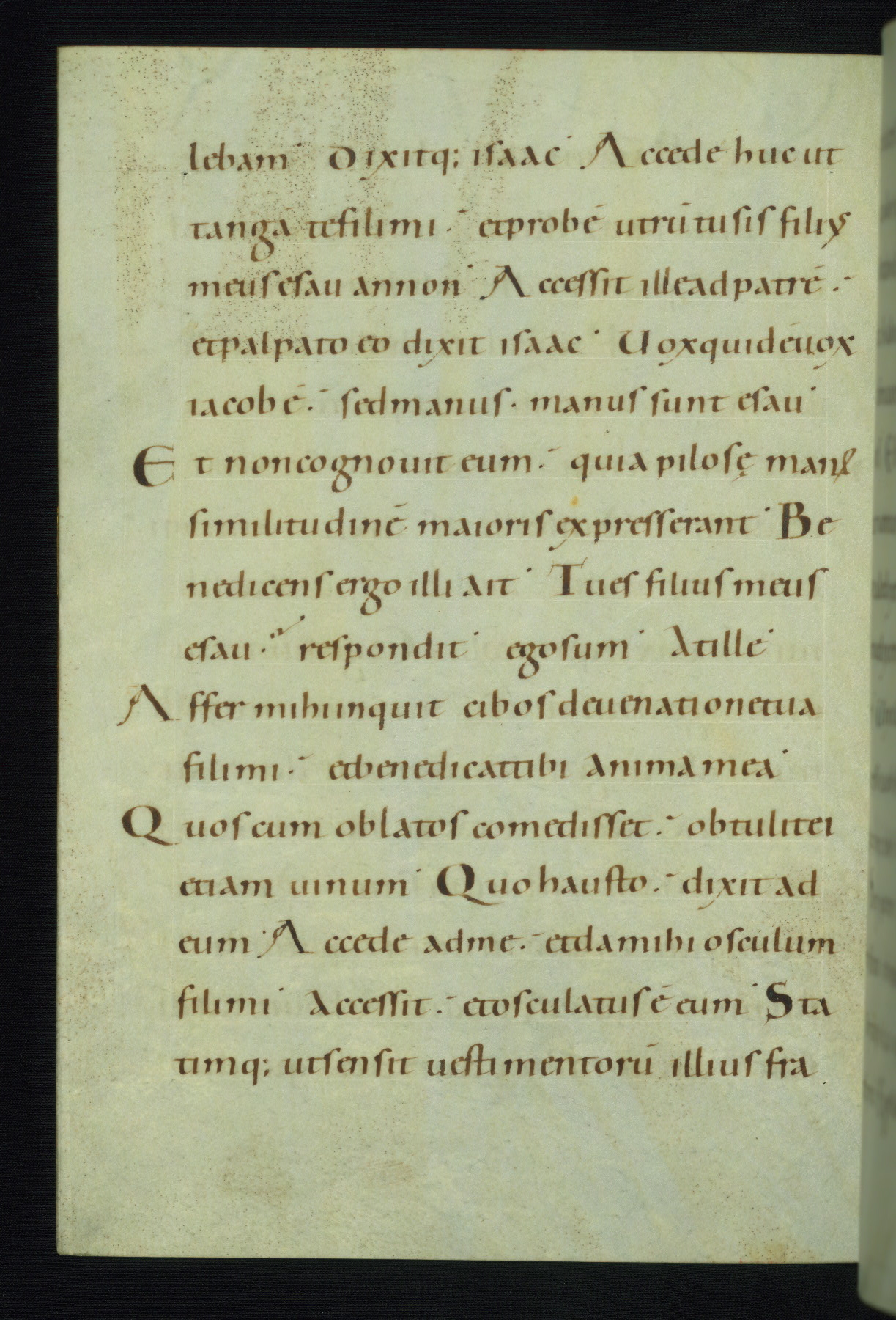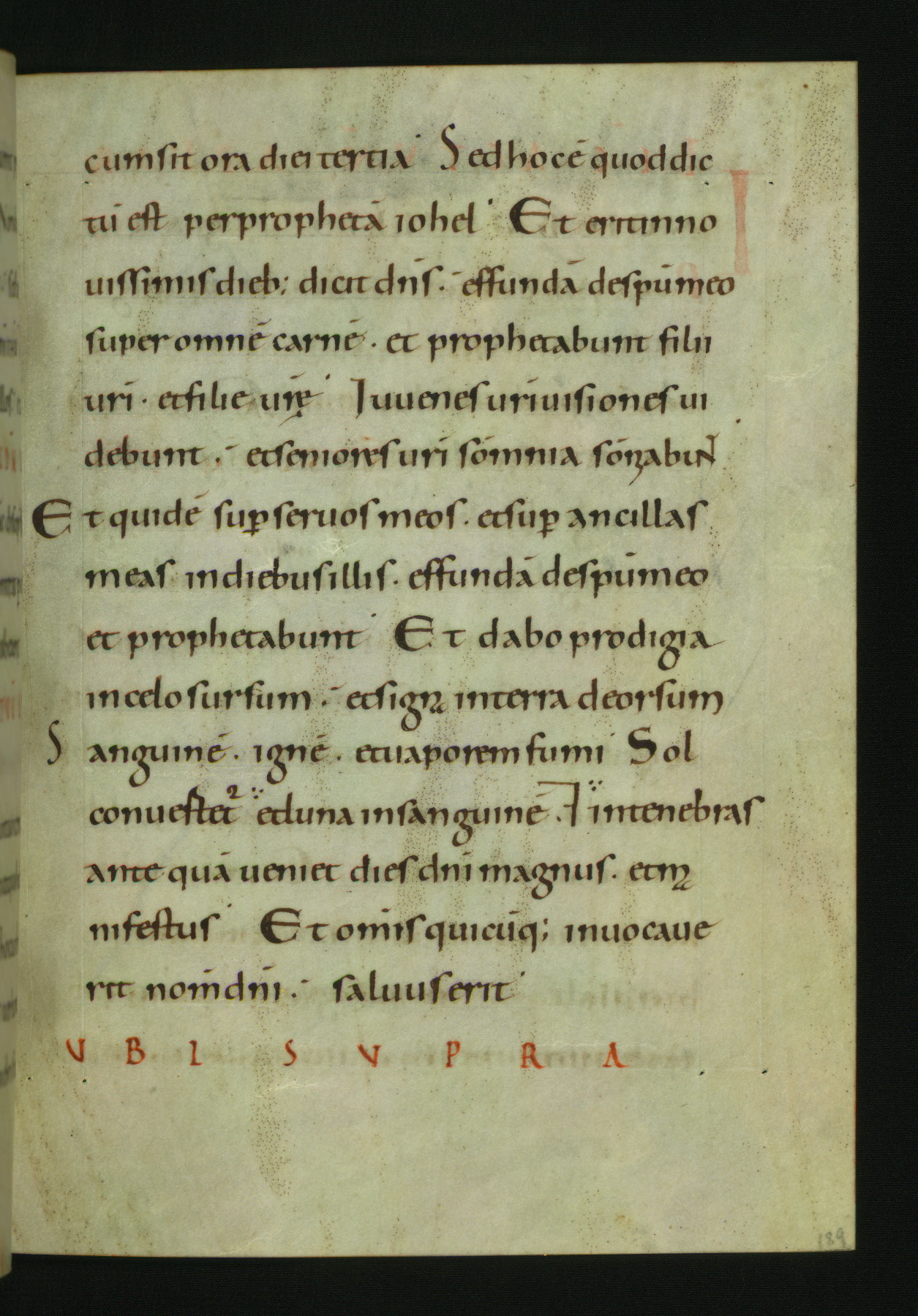 This Lectionary was created ca. 1000 in Trier. Written in a clear Caroline minuscule, it contains decorated initials at the openings of important readings. A set of illuminated letters marks the beginning of the Epistle and Gospel lessons for Easter; they display the hierarchy of scripts with capital letters decorated with gold leaf or drawn in red ink, followed by uncial and Caroline minuscule. Initials in orange, sometimes filled with gold, mark the divisions of the text. The book has been stylistically compared with Ottonian manuscripts, especially with a Psalter preserved in Trier (Stadtbibliothek, Ms. 7) illuminated by the so-called Master of the Registrum Gregorii.