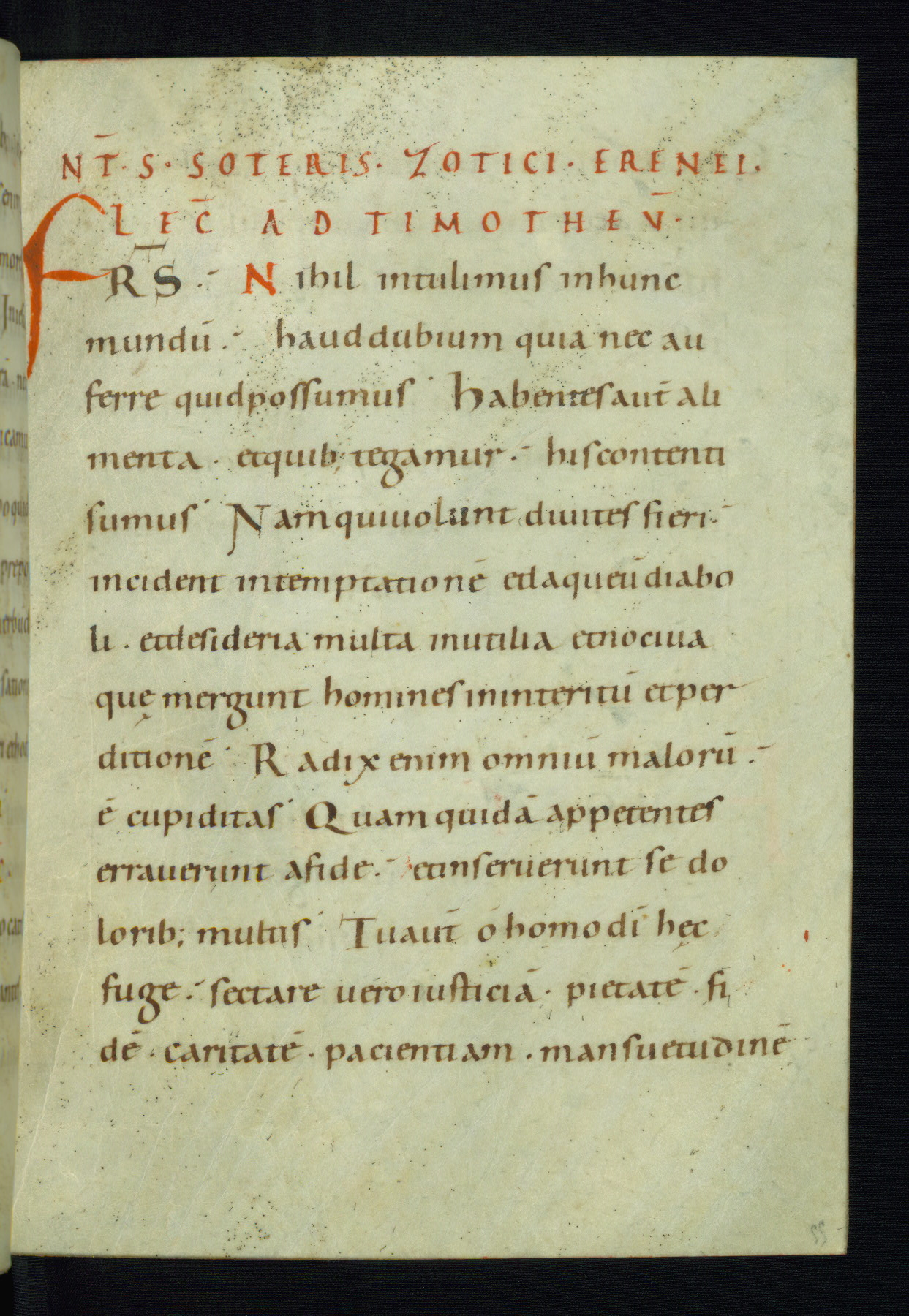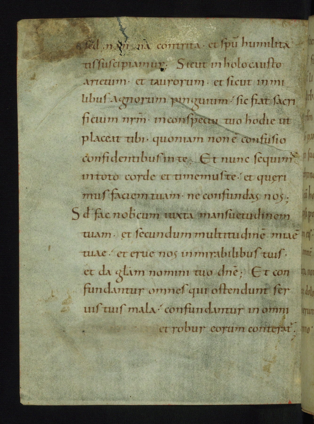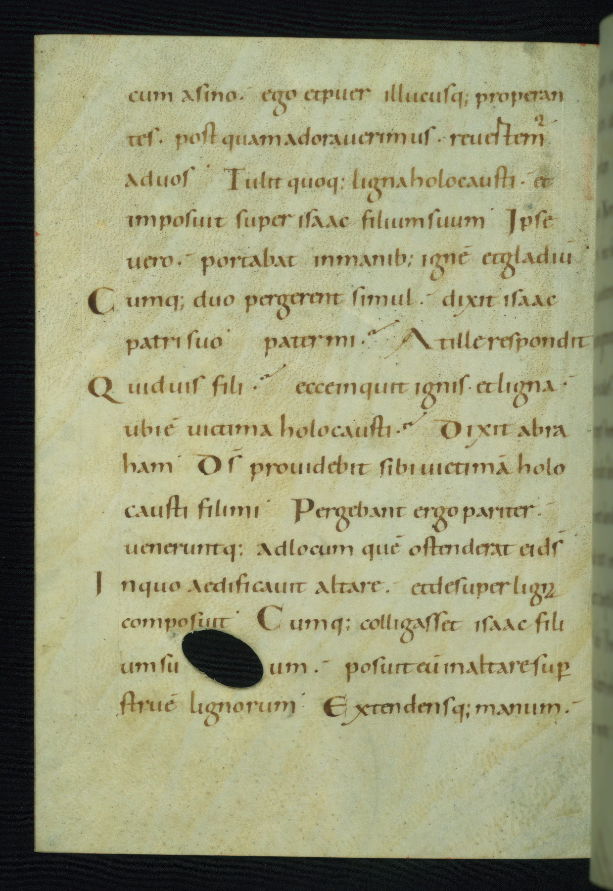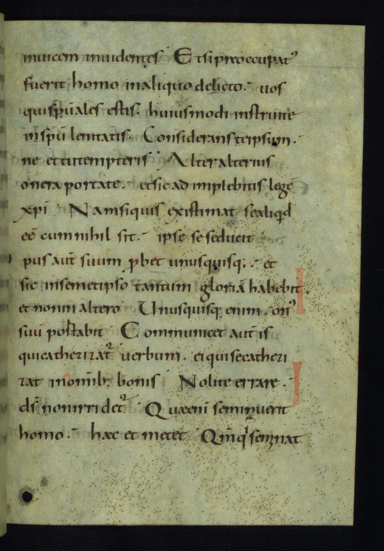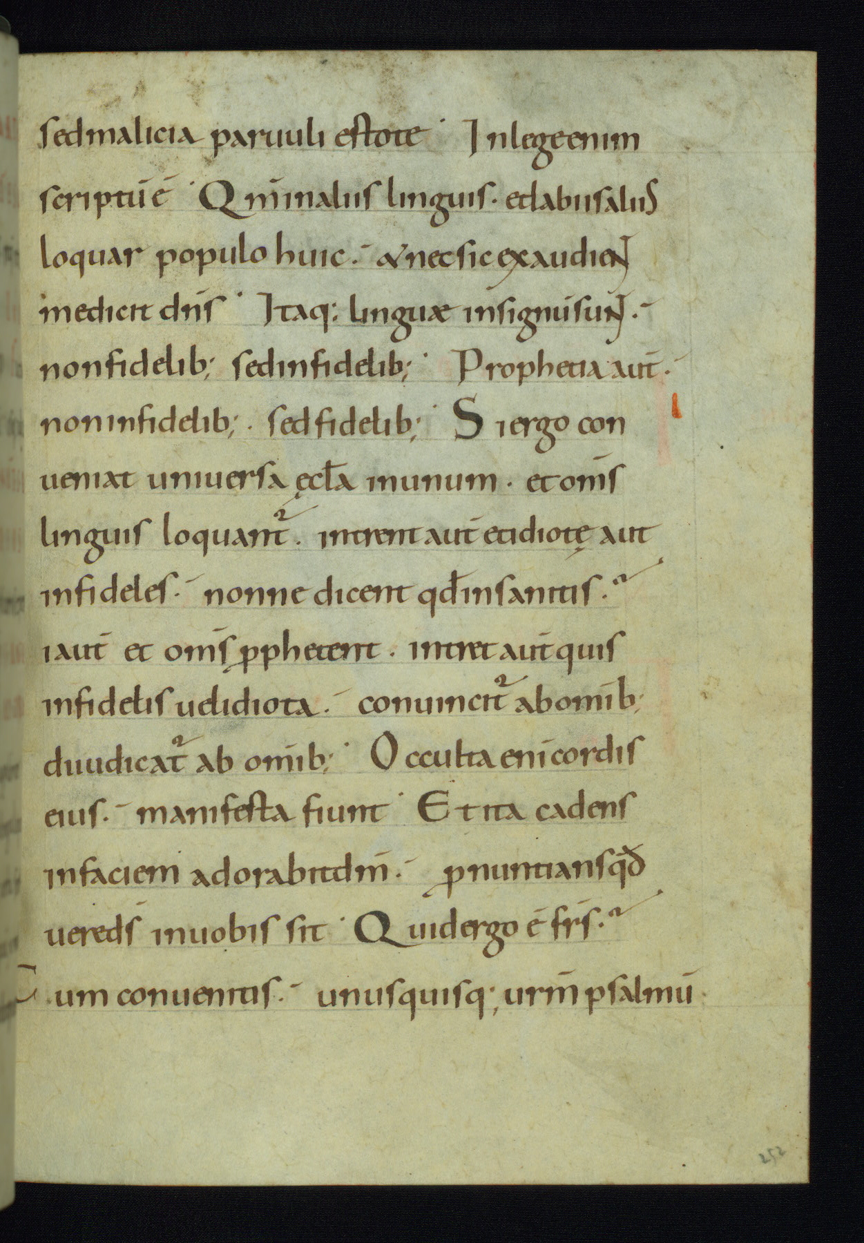 This Lectionary was created ca. 1000 in Trier. Written in a clear Caroline minuscule, it contains decorated initials at the openings of important readings. A set of illuminated letters marks the beginning of the Epistle and Gospel lessons for Easter; they display the hierarchy of scripts with capital letters decorated with gold leaf or drawn in red ink, followed by uncial and Caroline minuscule. Initials in orange, sometimes filled with gold, mark the divisions of the text. The book has been stylistically compared with Ottonian manuscripts, especially with a Psalter preserved in Trier (Stadtbibliothek, Ms. 7) illuminated by the so-called Master of the Registrum Gregorii.