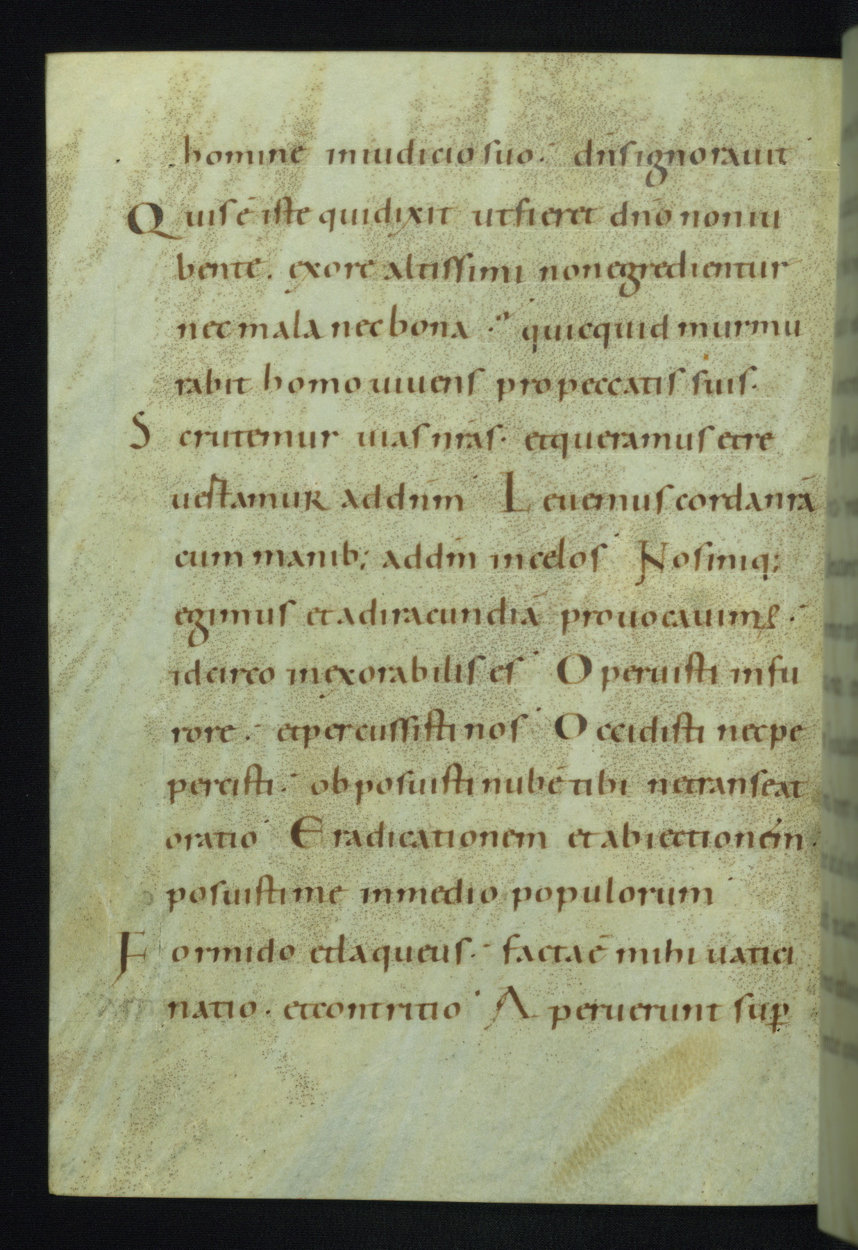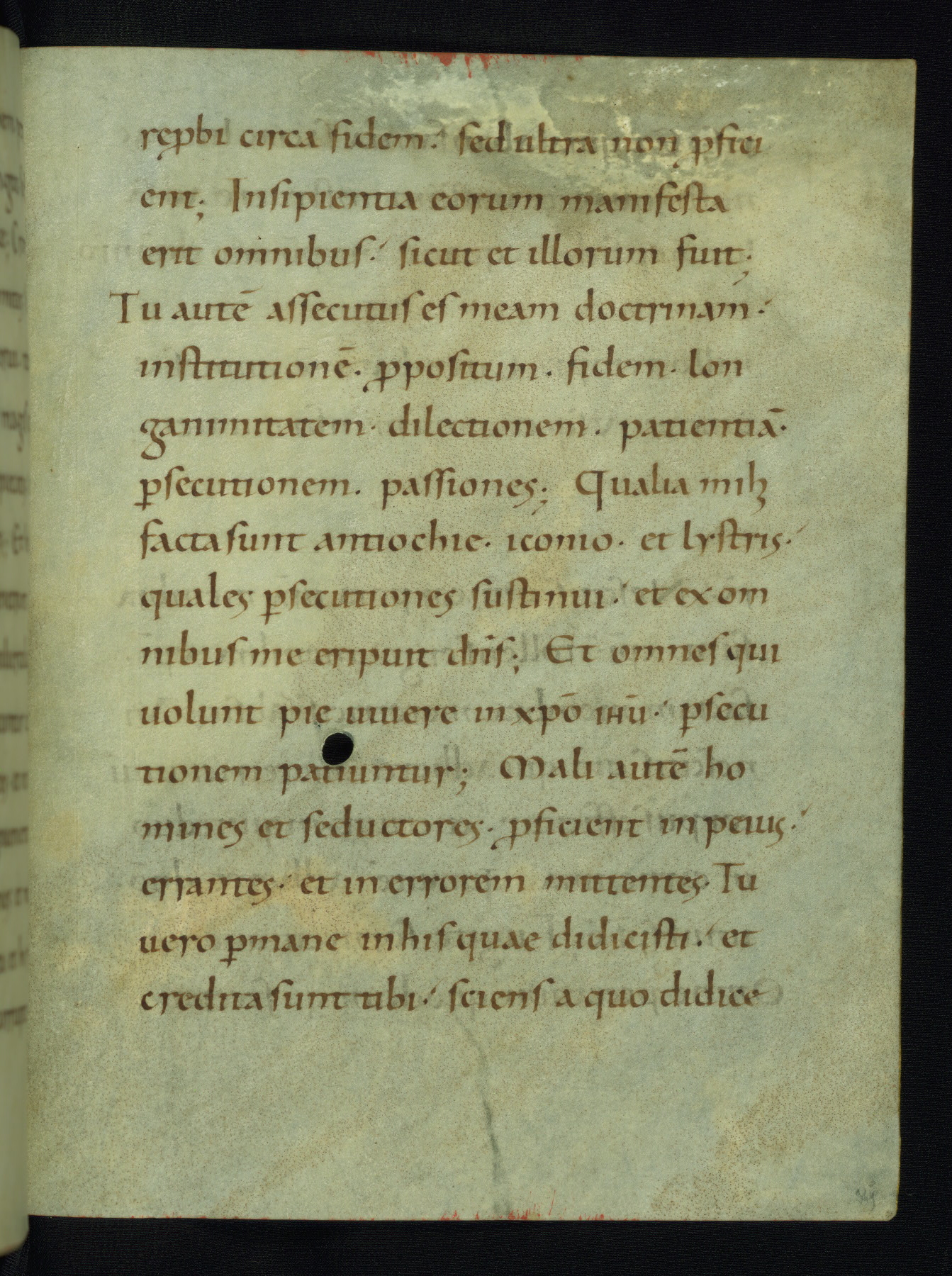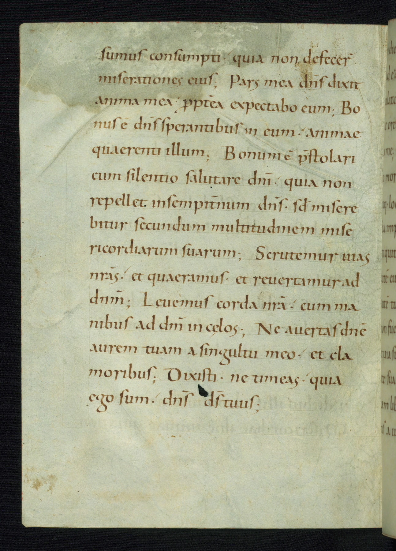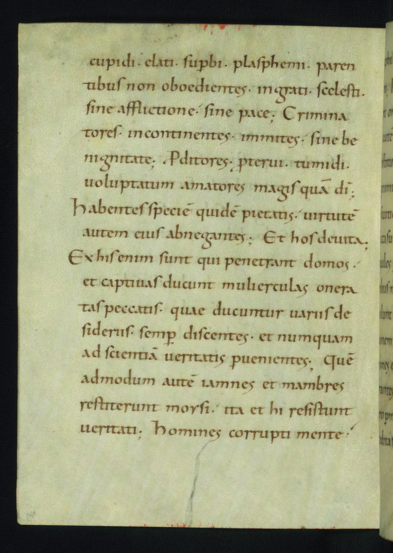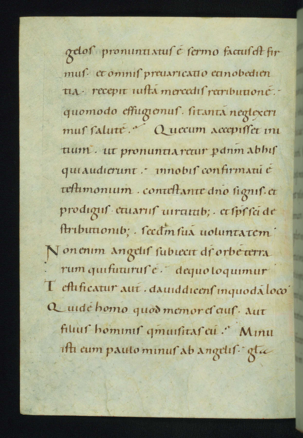 This Lectionary was created ca. 1000 in Trier. Written in a clear Caroline minuscule, it contains decorated initials at the openings of important readings. A set of illuminated letters marks the beginning of the Epistle and Gospel lessons for Easter; they display the hierarchy of scripts with capital letters decorated with gold leaf or drawn in red ink, followed by uncial and Caroline minuscule. Initials in orange, sometimes filled with gold, mark the divisions of the text. The book has been stylistically compared with Ottonian manuscripts, especially with a Psalter preserved in Trier (Stadtbibliothek, Ms. 7) illuminated by the so-called Master of the Registrum Gregorii.