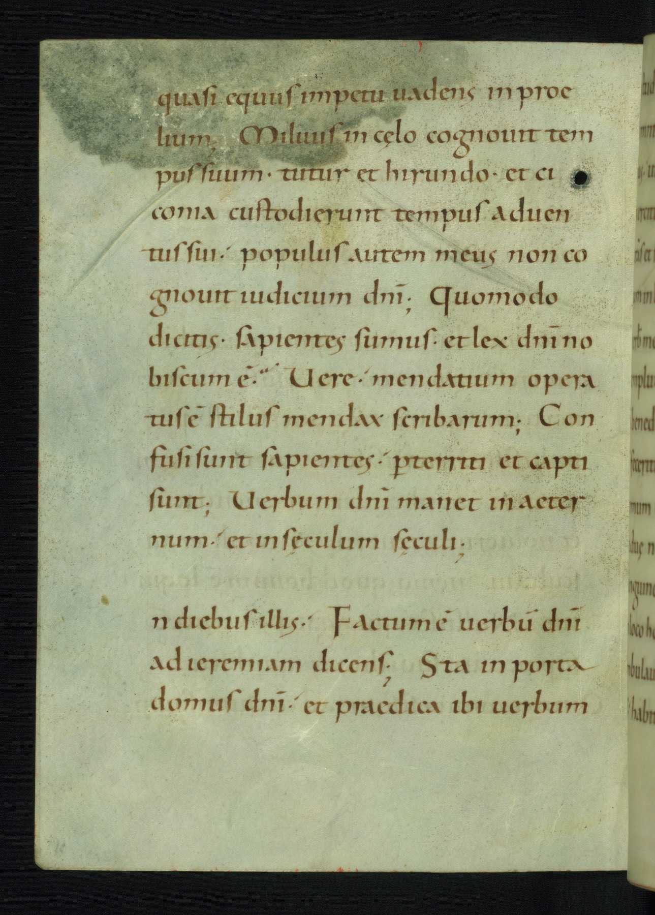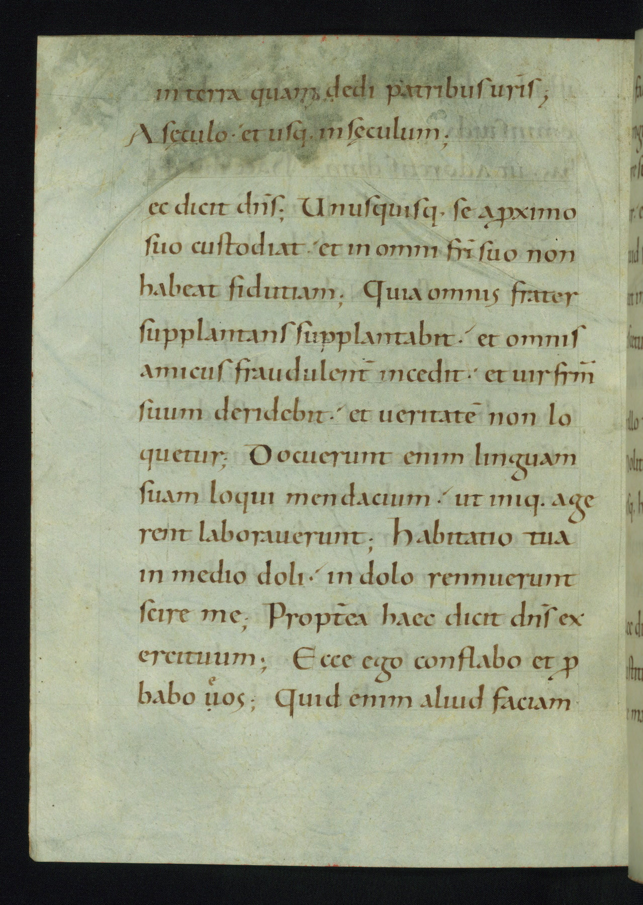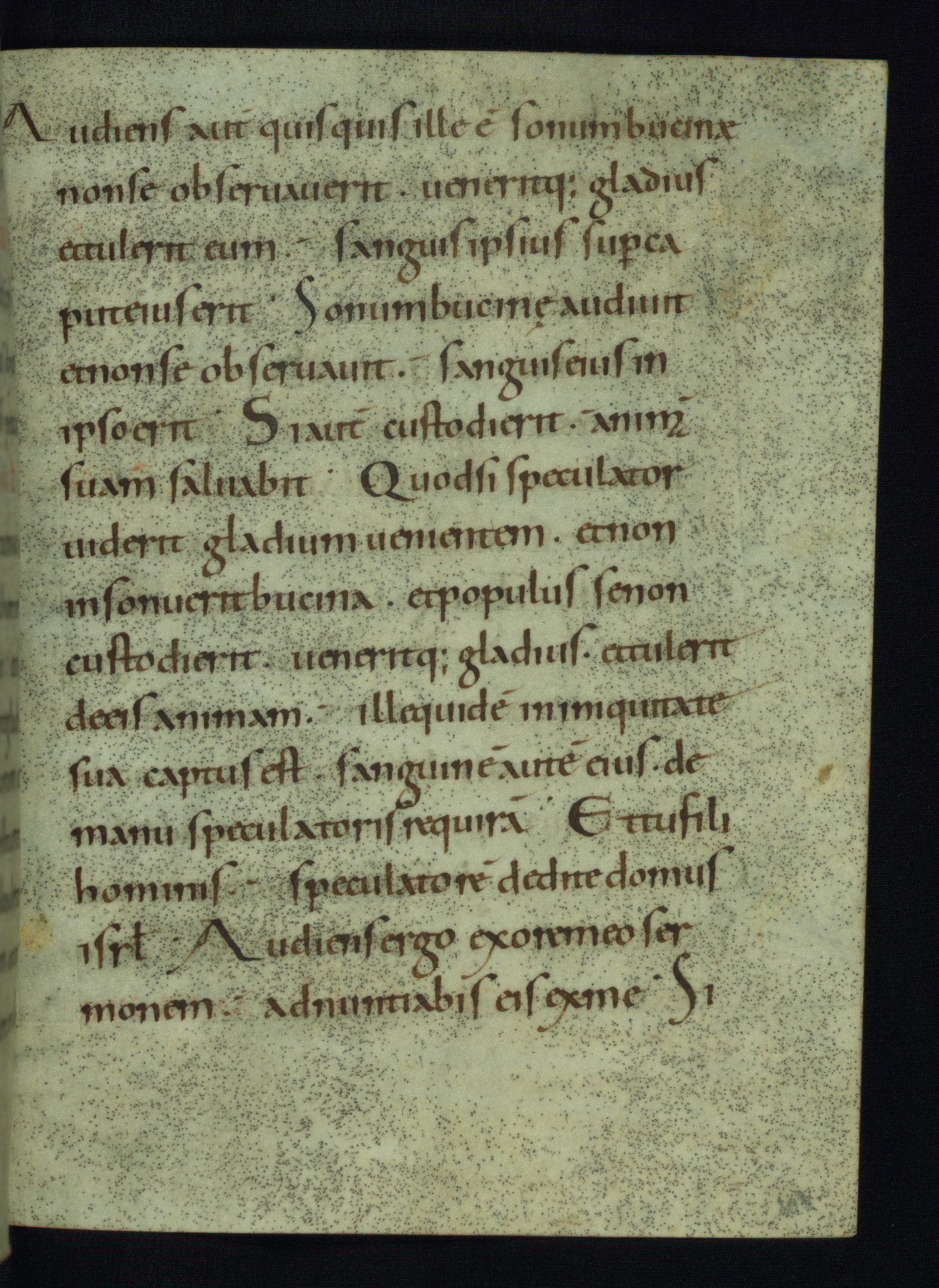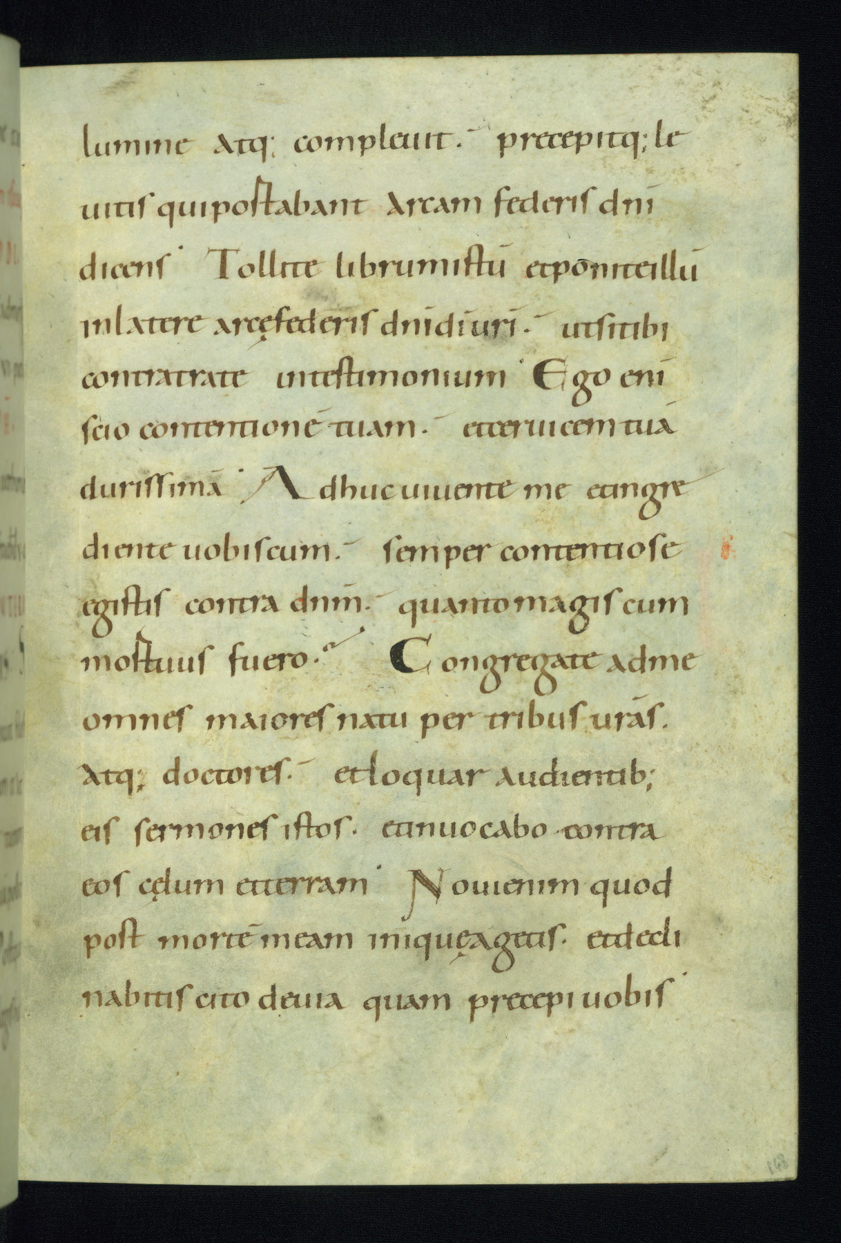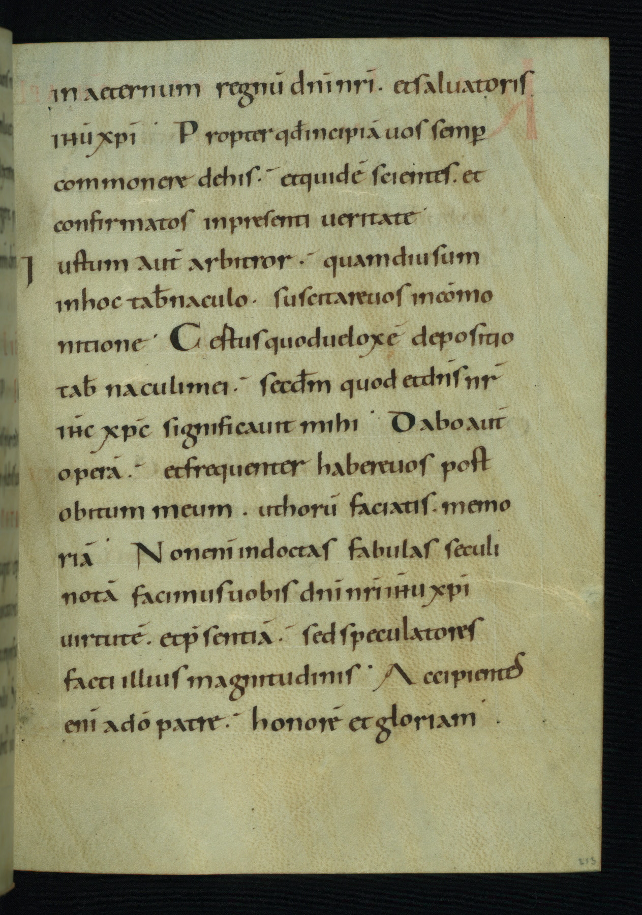 This Lectionary was created ca. 1000 in Trier. Written in a clear Caroline minuscule, it contains decorated initials at the openings of important readings. A set of illuminated letters marks the beginning of the Epistle and Gospel lessons for Easter; they display the hierarchy of scripts with capital letters decorated with gold leaf or drawn in red ink, followed by uncial and Caroline minuscule. Initials in orange, sometimes filled with gold, mark the divisions of the text. The book has been stylistically compared with Ottonian manuscripts, especially with a Psalter preserved in Trier (Stadtbibliothek, Ms. 7) illuminated by the so-called Master of the Registrum Gregorii.