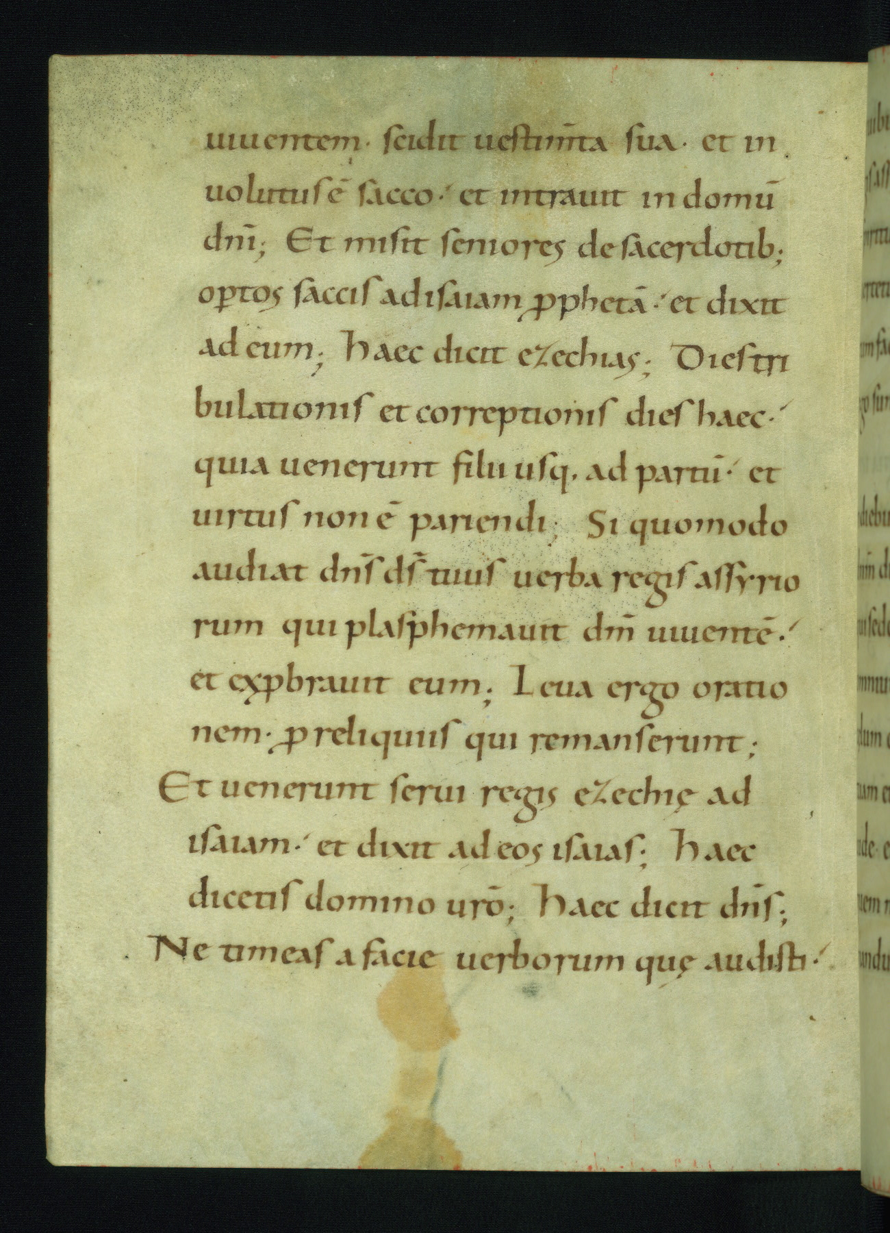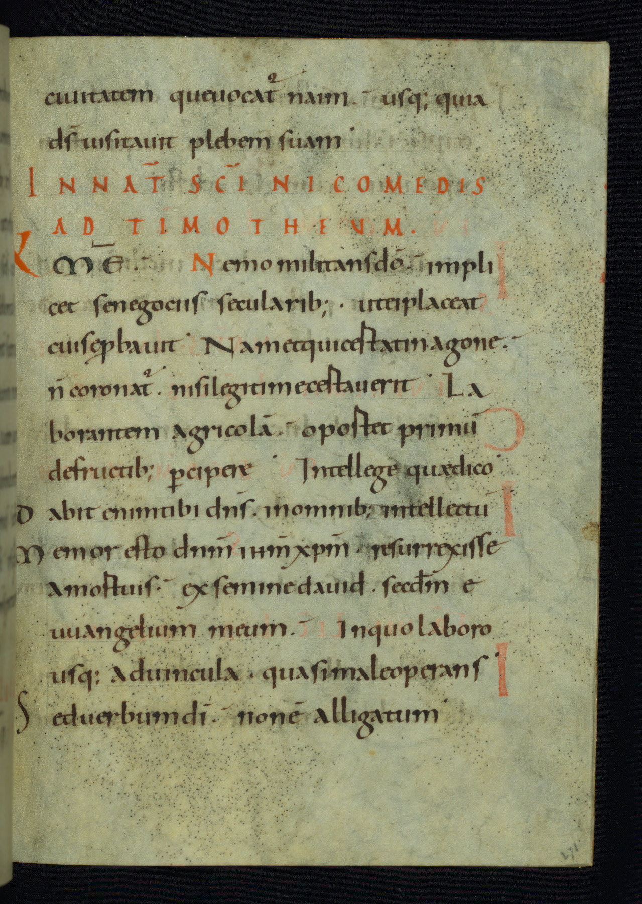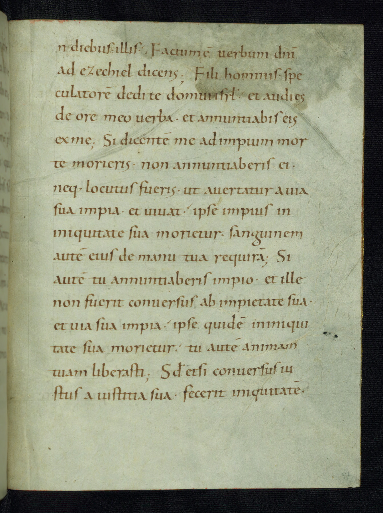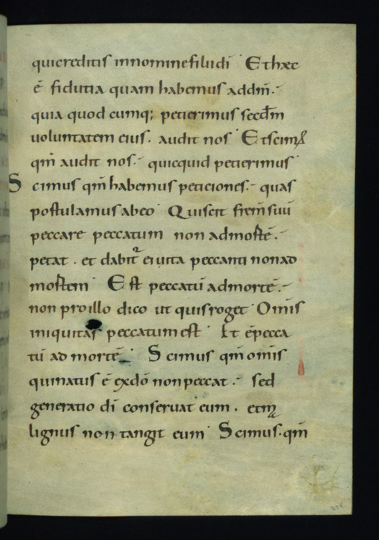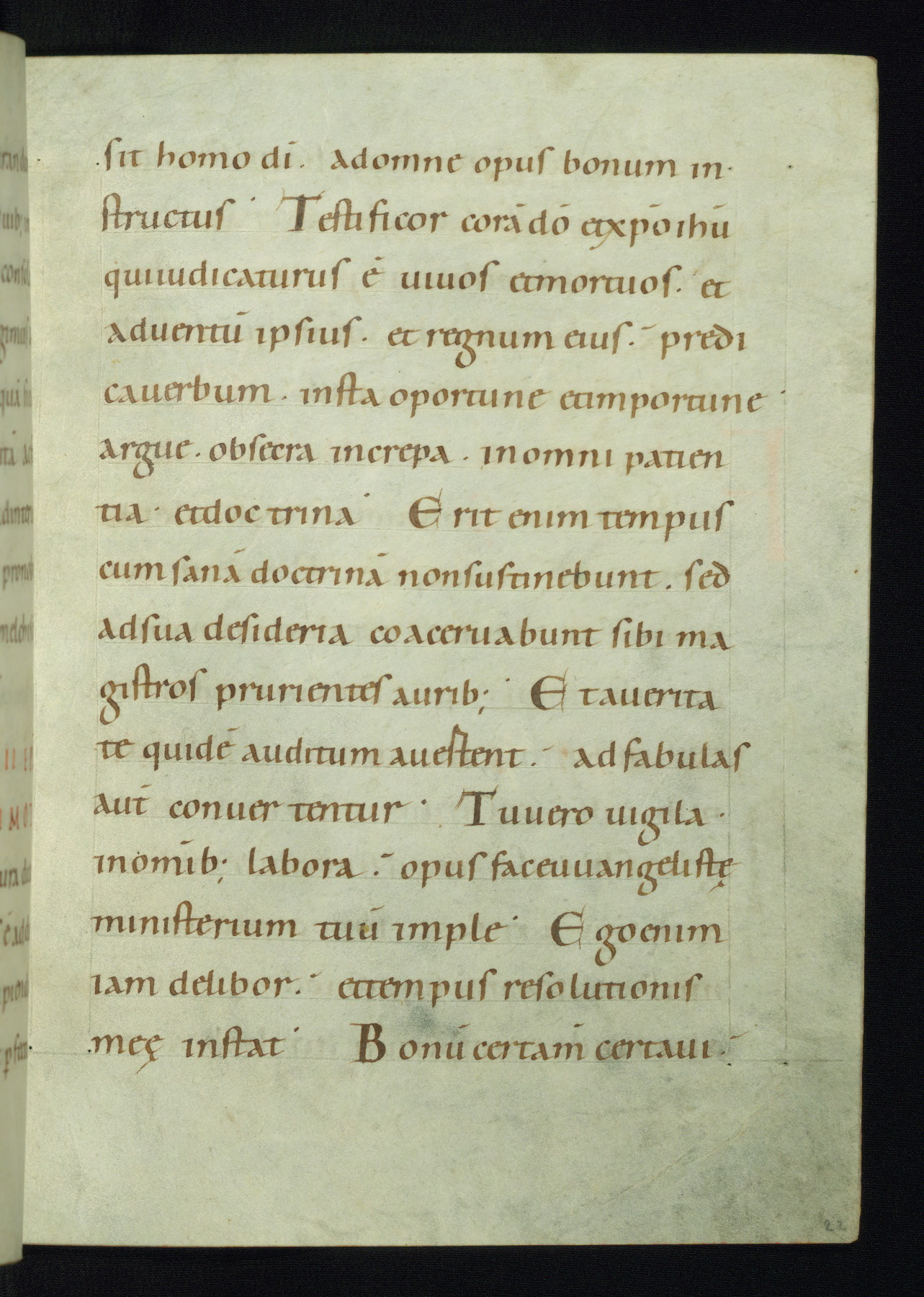 This Lectionary was created ca. 1000 in Trier. Written in a clear Caroline minuscule, it contains decorated initials at the openings of important readings. A set of illuminated letters marks the beginning of the Epistle and Gospel lessons for Easter; they display the hierarchy of scripts with capital letters decorated with gold leaf or drawn in red ink, followed by uncial and Caroline minuscule. Initials in orange, sometimes filled with gold, mark the divisions of the text. The book has been stylistically compared with Ottonian manuscripts, especially with a Psalter preserved in Trier (Stadtbibliothek, Ms. 7) illuminated by the so-called Master of the Registrum Gregorii.