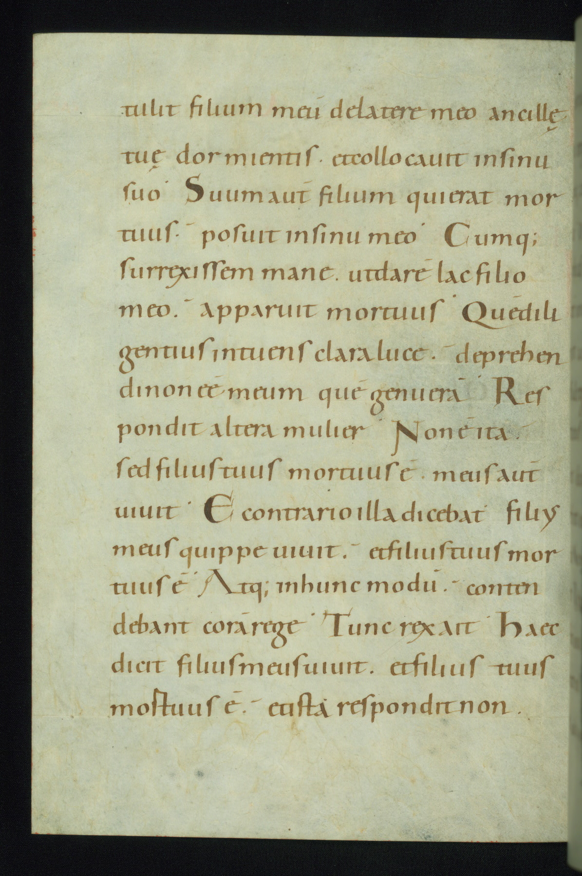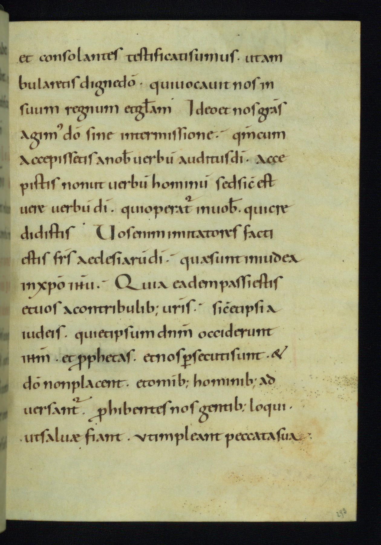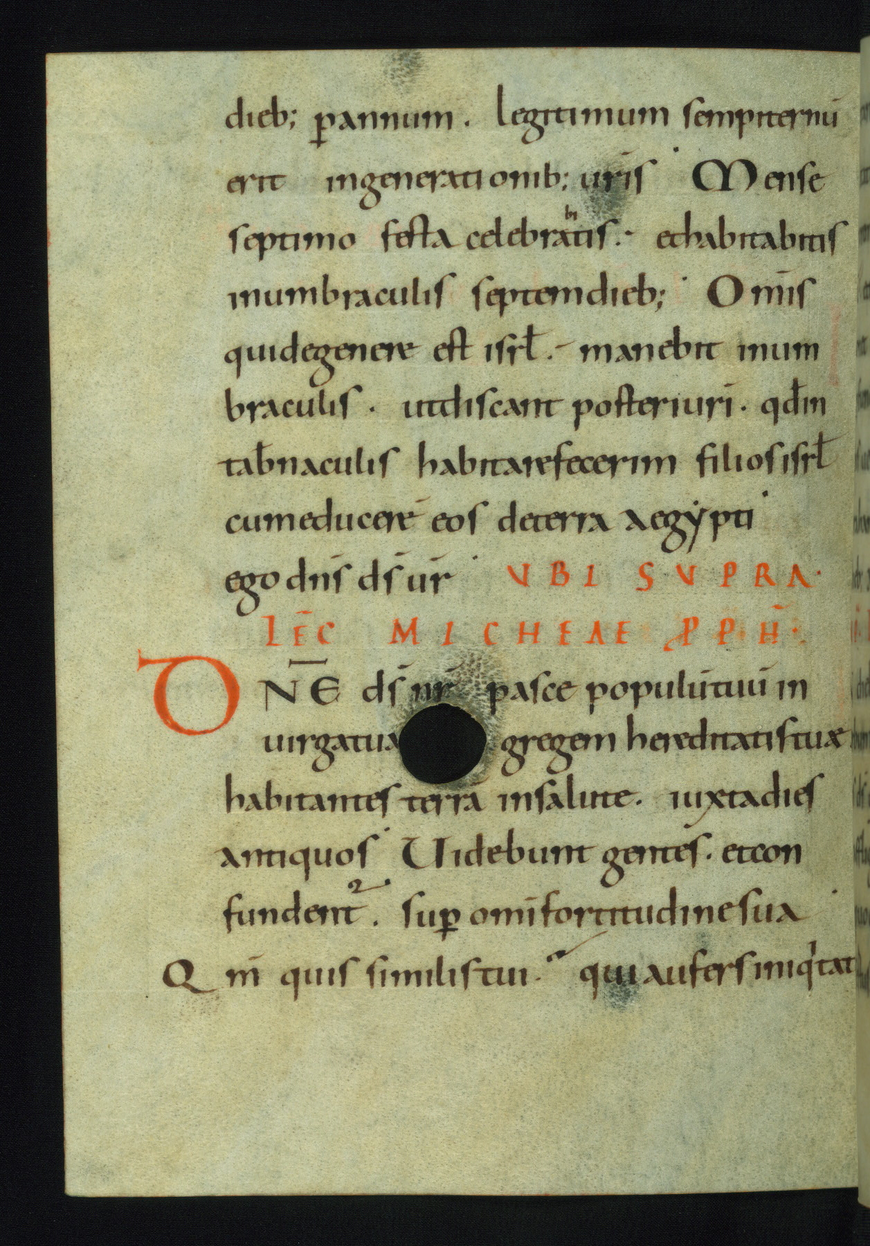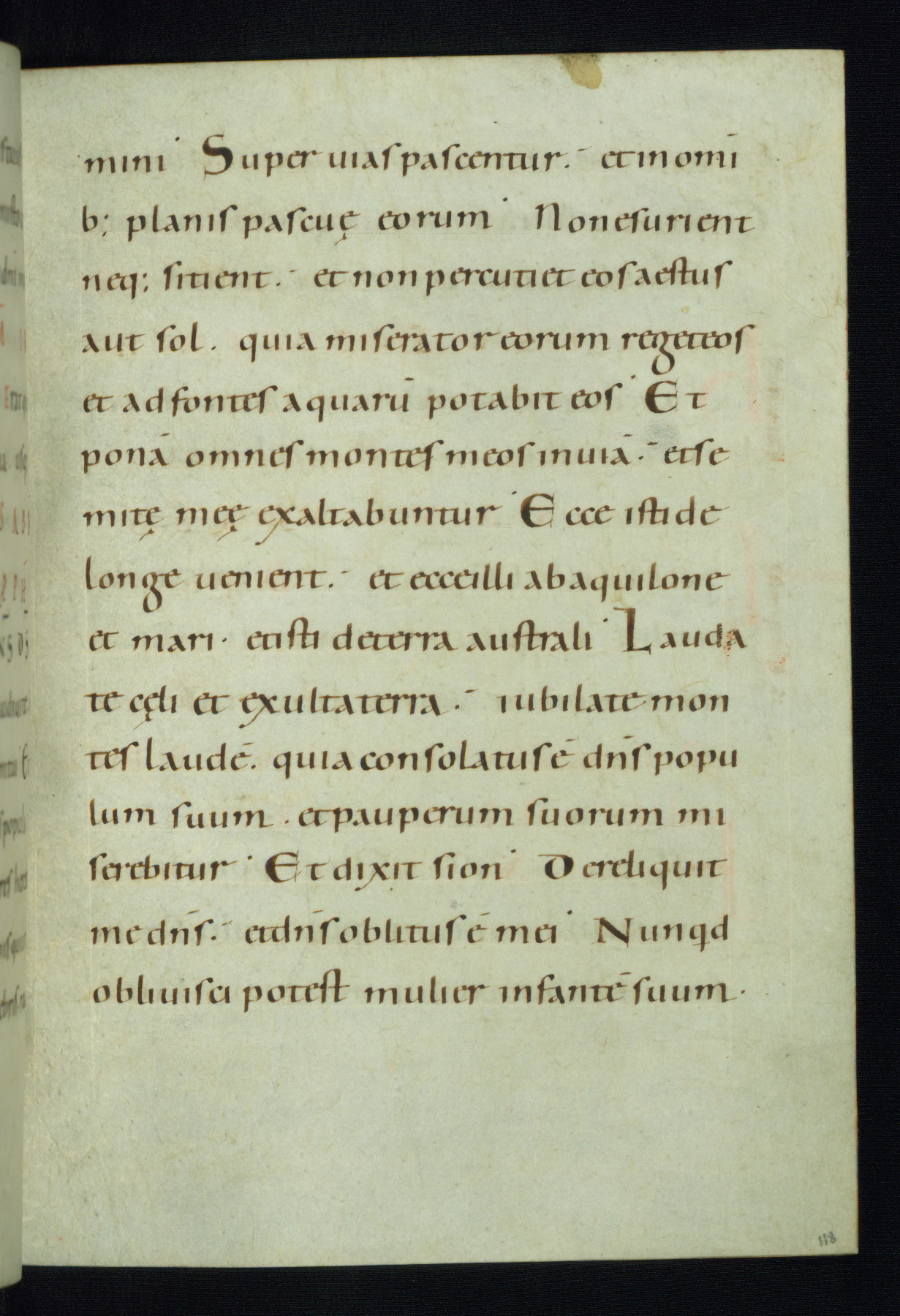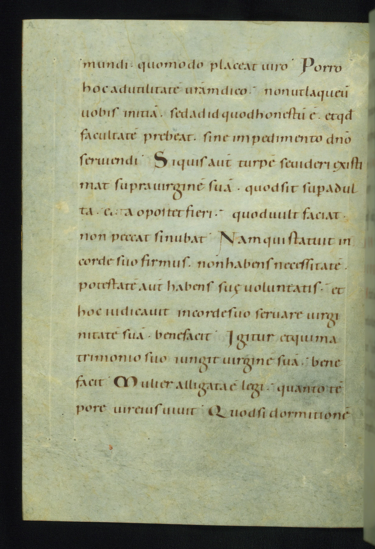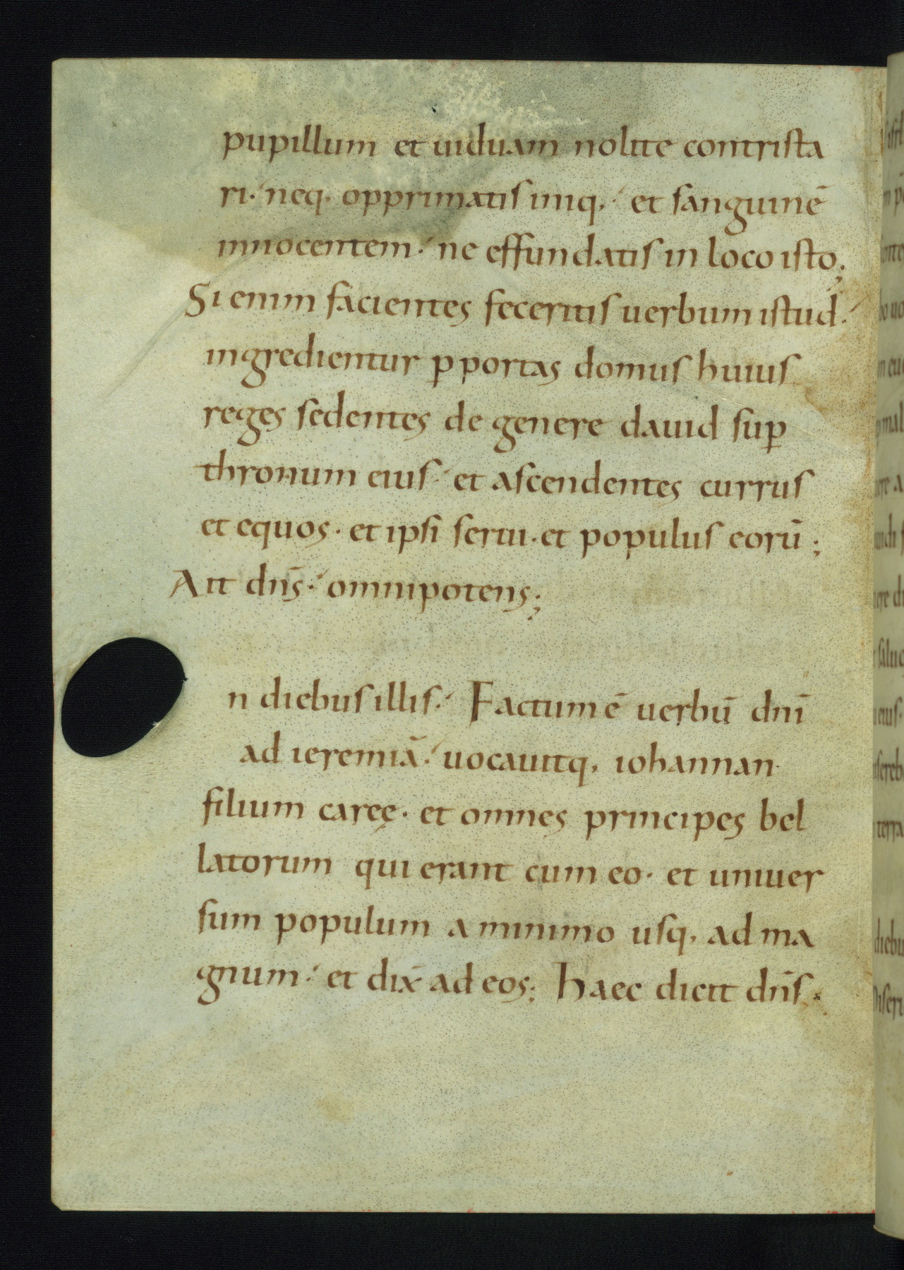 This Lectionary was created ca. 1000 in Trier. Written in a clear Caroline minuscule, it contains decorated initials at the openings of important readings. A set of illuminated letters marks the beginning of the Epistle and Gospel lessons for Easter; they display the hierarchy of scripts with capital letters decorated with gold leaf or drawn in red ink, followed by uncial and Caroline minuscule. Initials in orange, sometimes filled with gold, mark the divisions of the text. The book has been stylistically compared with Ottonian manuscripts, especially with a Psalter preserved in Trier (Stadtbibliothek, Ms. 7) illuminated by the so-called Master of the Registrum Gregorii.