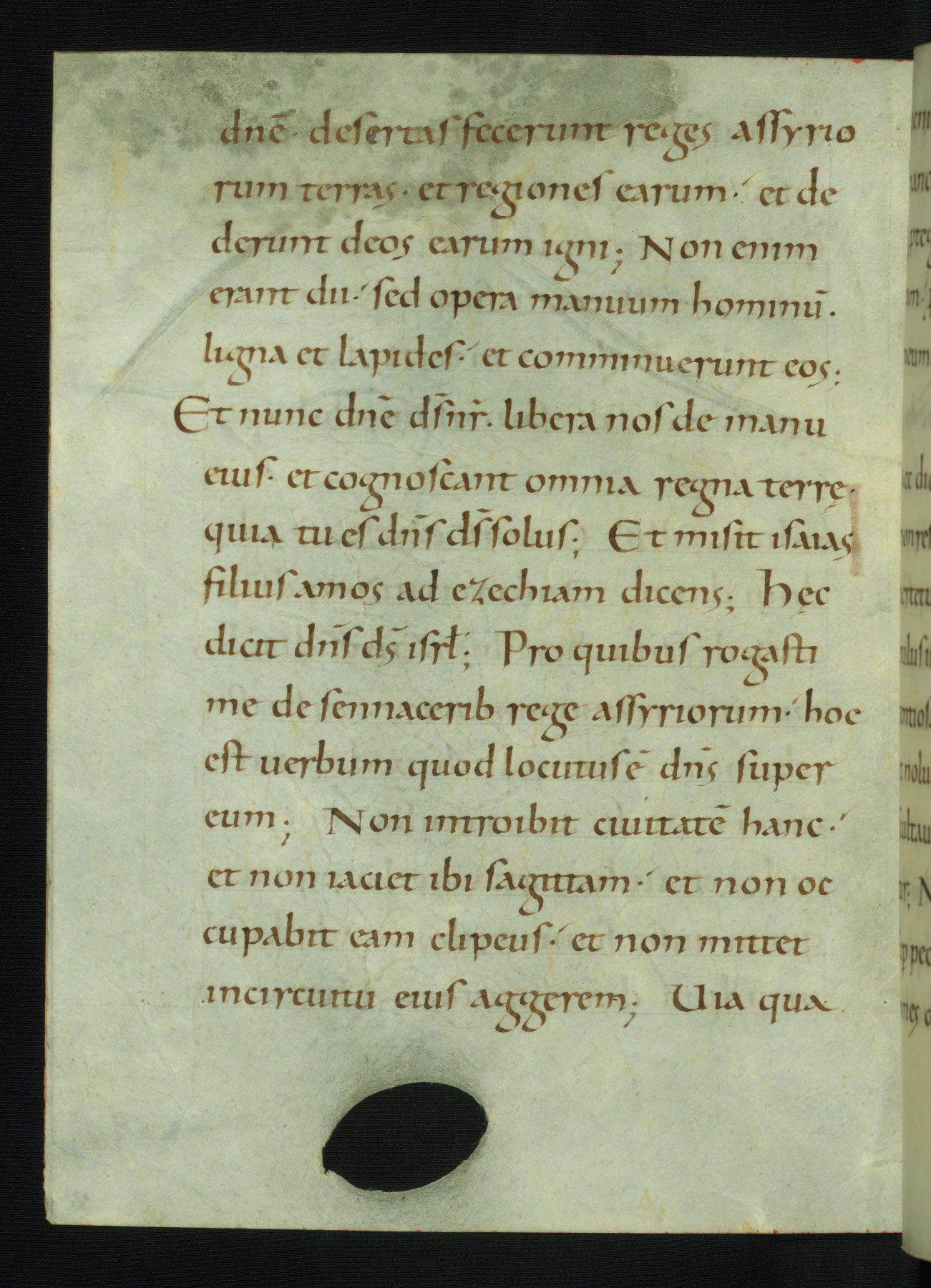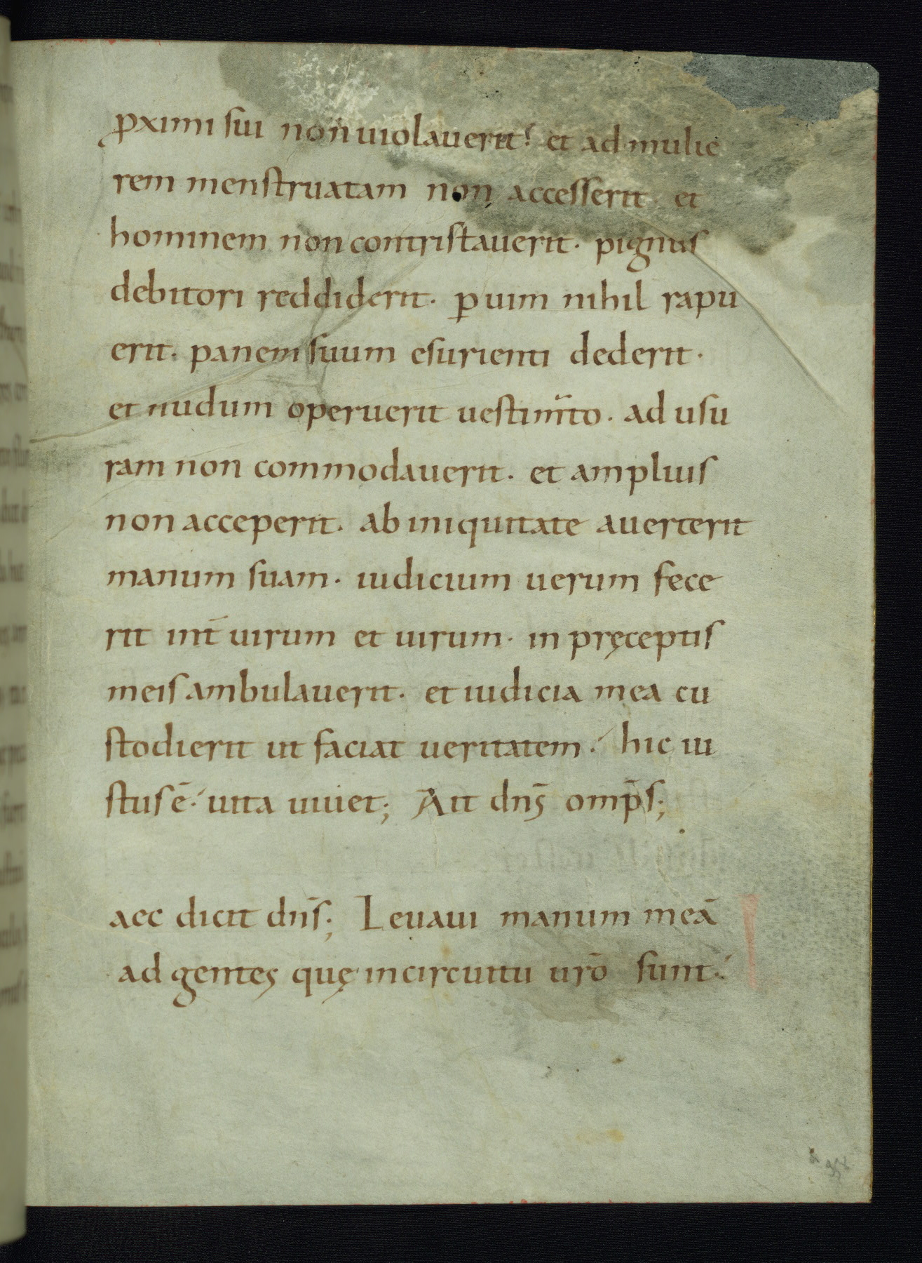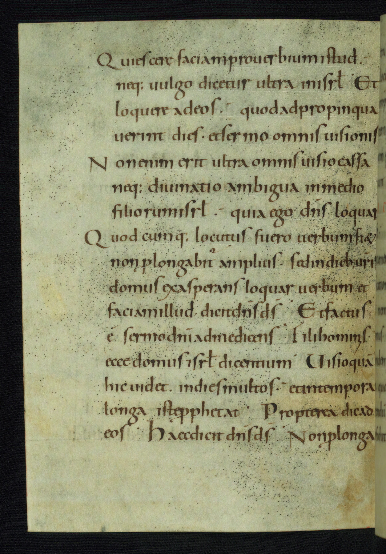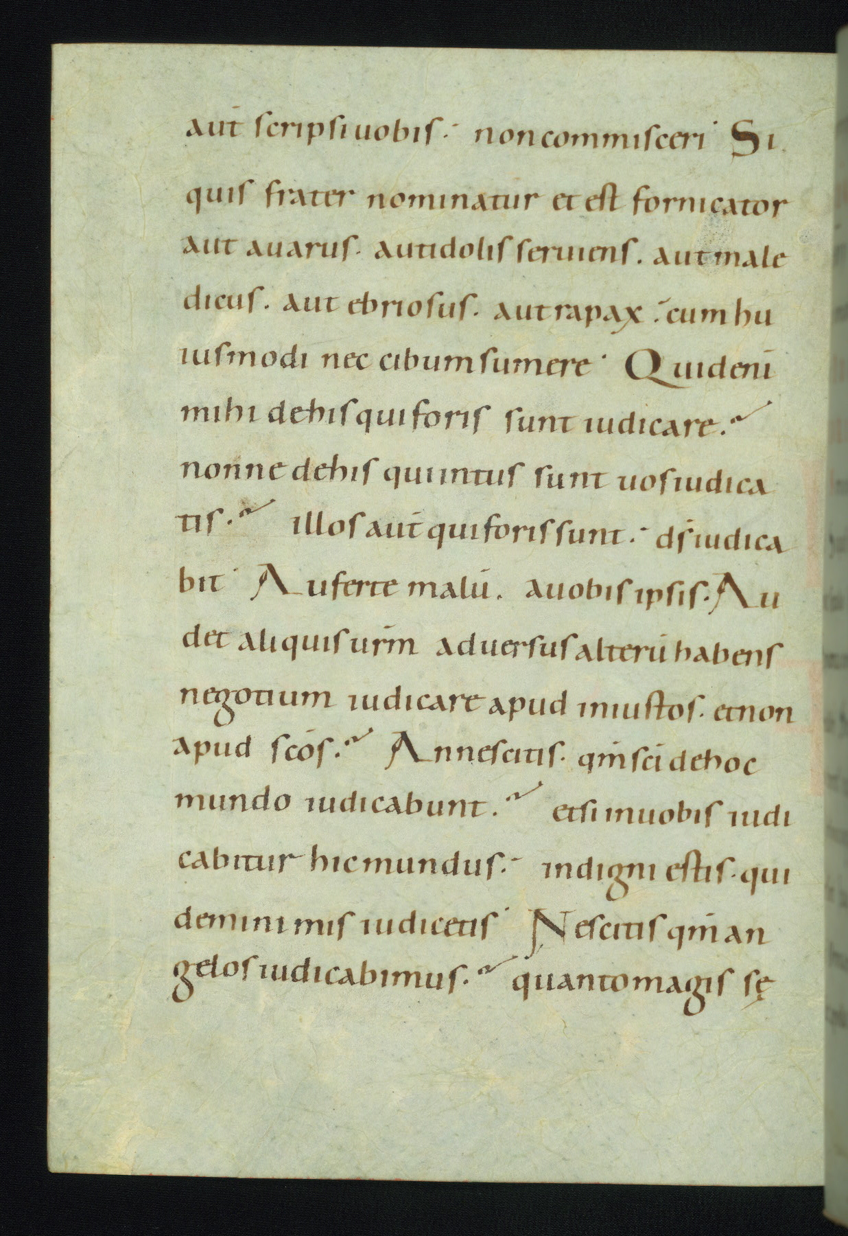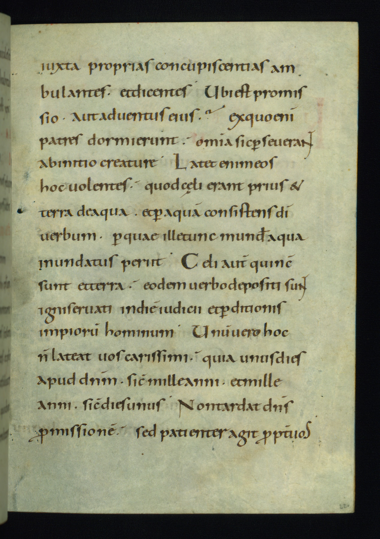 This Lectionary was created ca. 1000 in Trier. Written in a clear Caroline minuscule, it contains decorated initials at the openings of important readings. A set of illuminated letters marks the beginning of the Epistle and Gospel lessons for Easter; they display the hierarchy of scripts with capital letters decorated with gold leaf or drawn in red ink, followed by uncial and Caroline minuscule. Initials in orange, sometimes filled with gold, mark the divisions of the text. The book has been stylistically compared with Ottonian manuscripts, especially with a Psalter preserved in Trier (Stadtbibliothek, Ms. 7) illuminated by the so-called Master of the Registrum Gregorii.