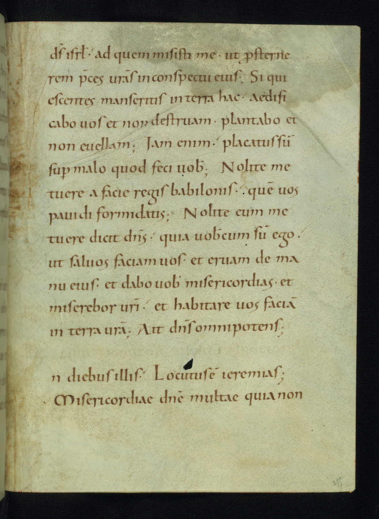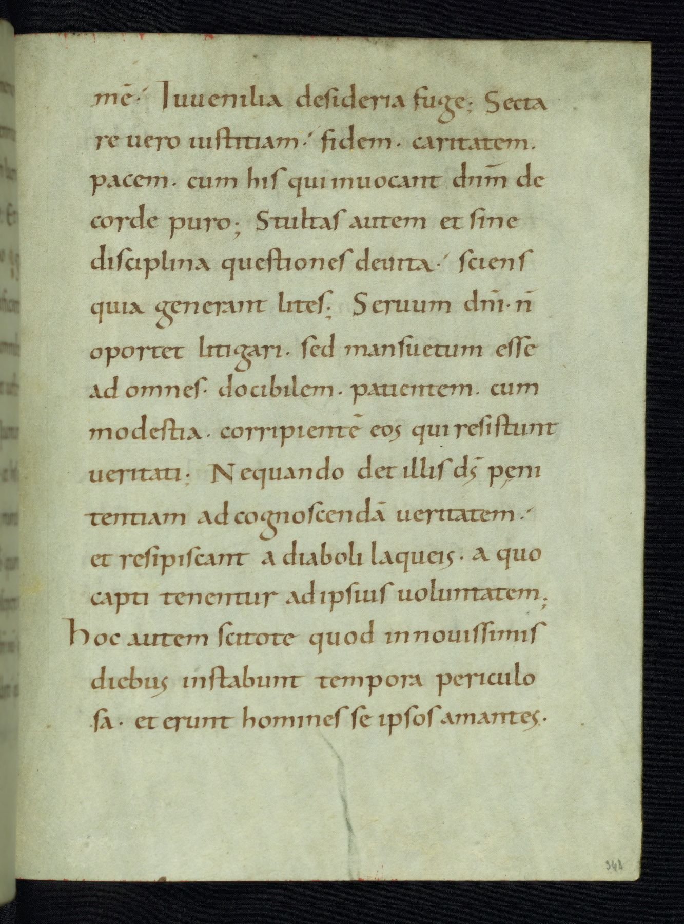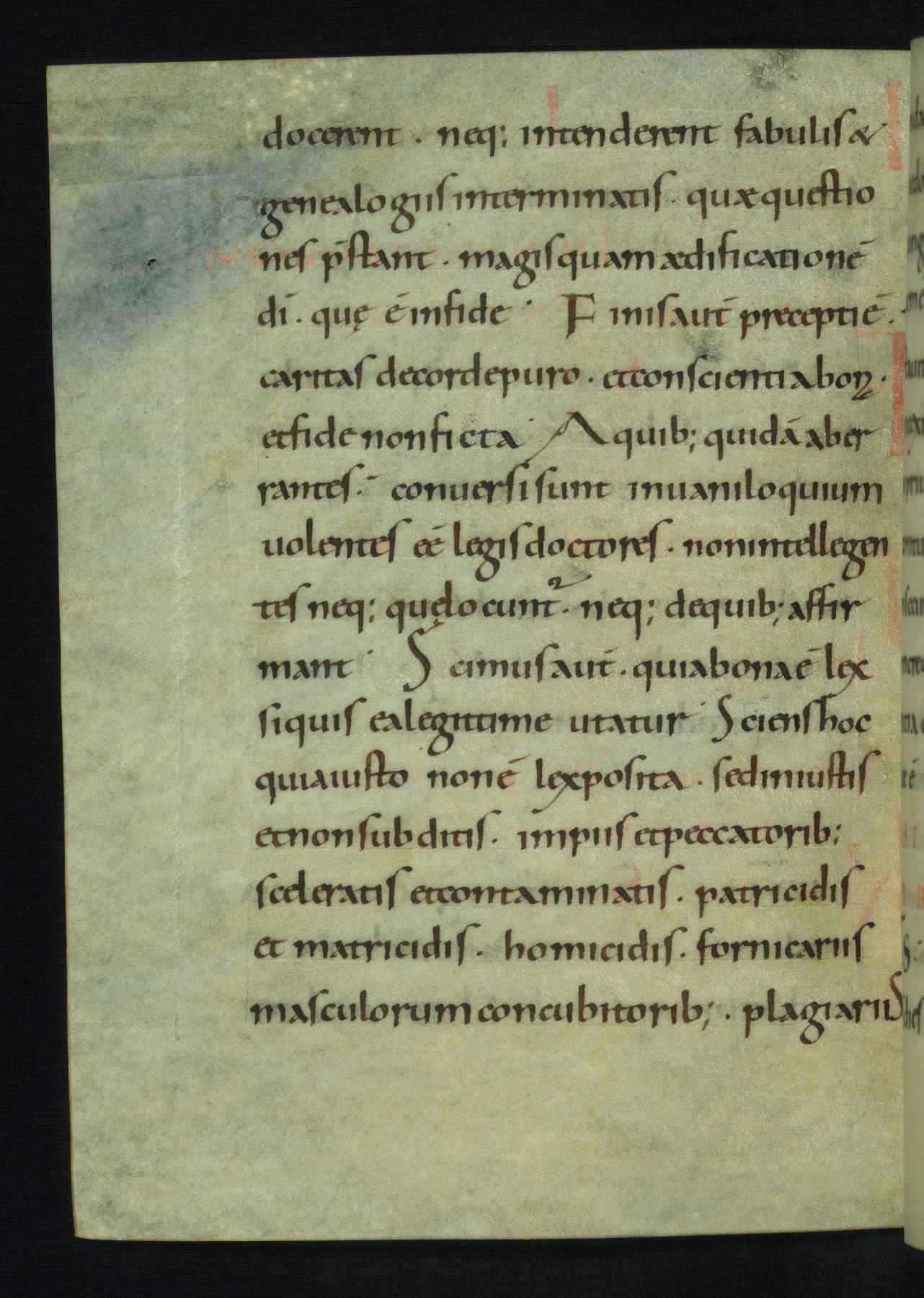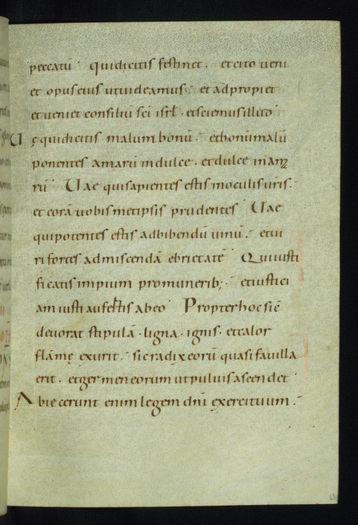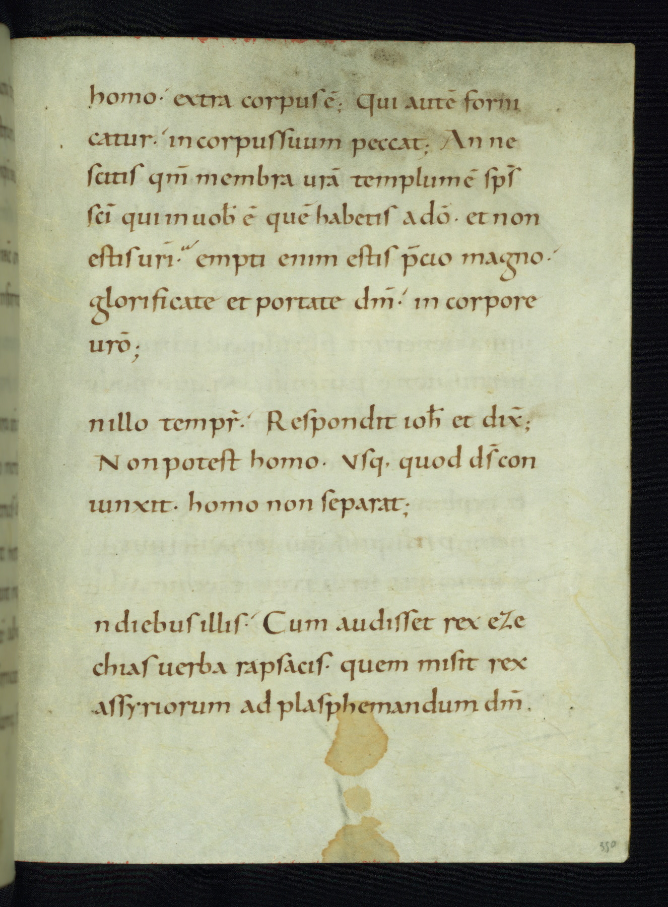 This Lectionary was created ca. 1000 in Trier. Written in a clear Caroline minuscule, it contains decorated initials at the openings of important readings. A set of illuminated letters marks the beginning of the Epistle and Gospel lessons for Easter; they display the hierarchy of scripts with capital letters decorated with gold leaf or drawn in red ink, followed by uncial and Caroline minuscule. Initials in orange, sometimes filled with gold, mark the divisions of the text. The book has been stylistically compared with Ottonian manuscripts, especially with a Psalter preserved in Trier (Stadtbibliothek, Ms. 7) illuminated by the so-called Master of the Registrum Gregorii.