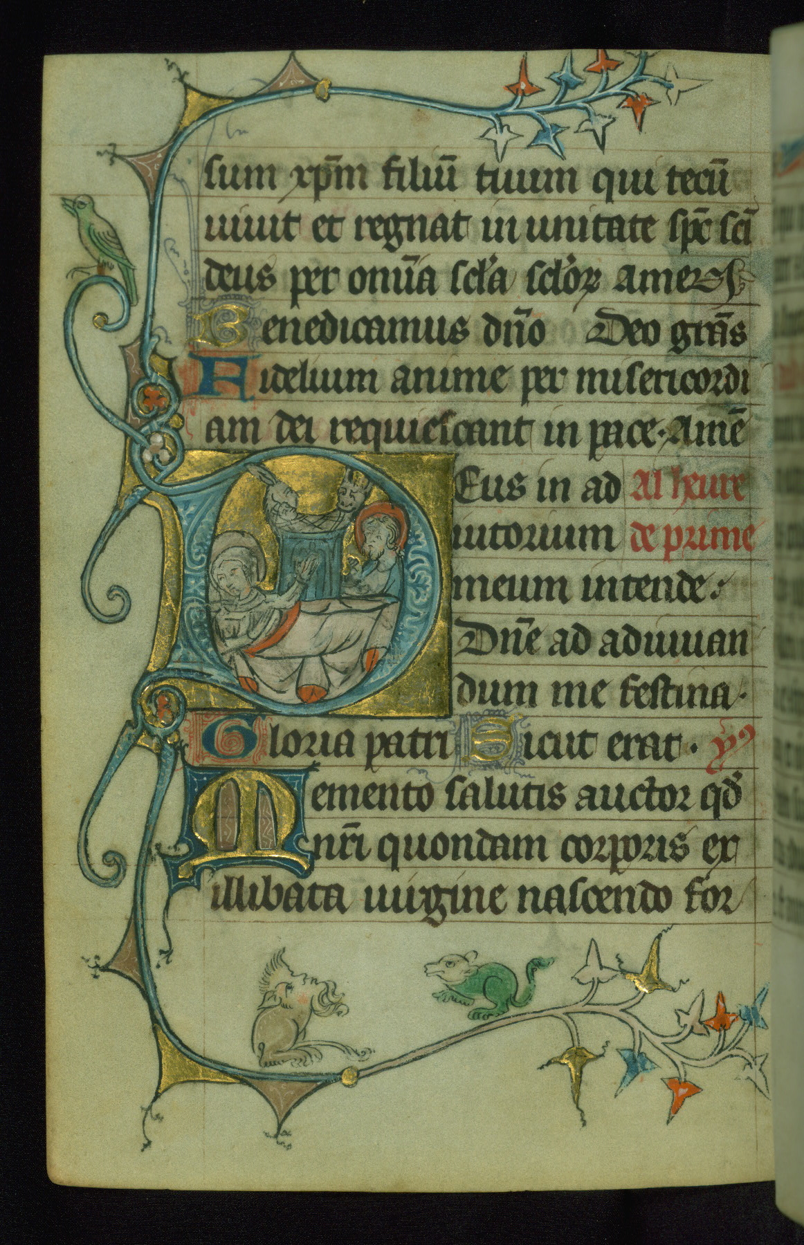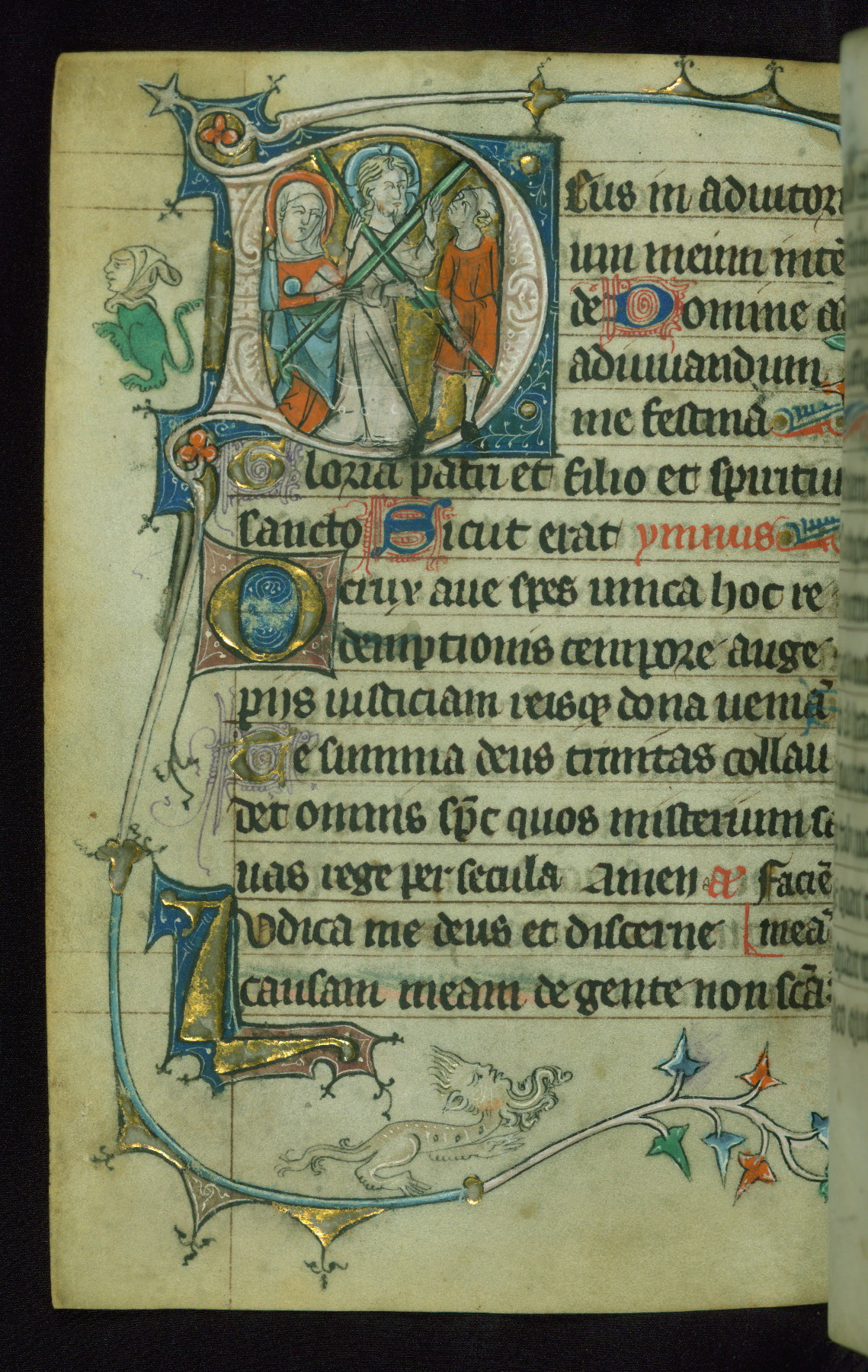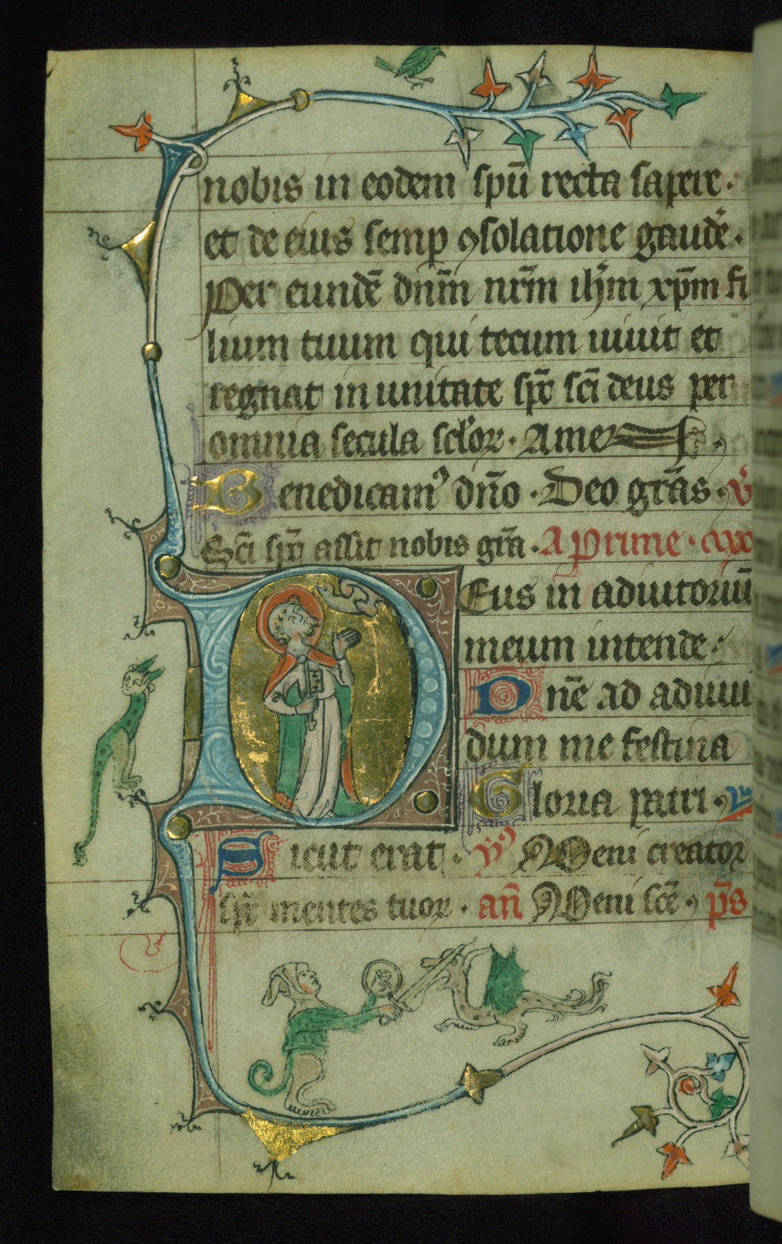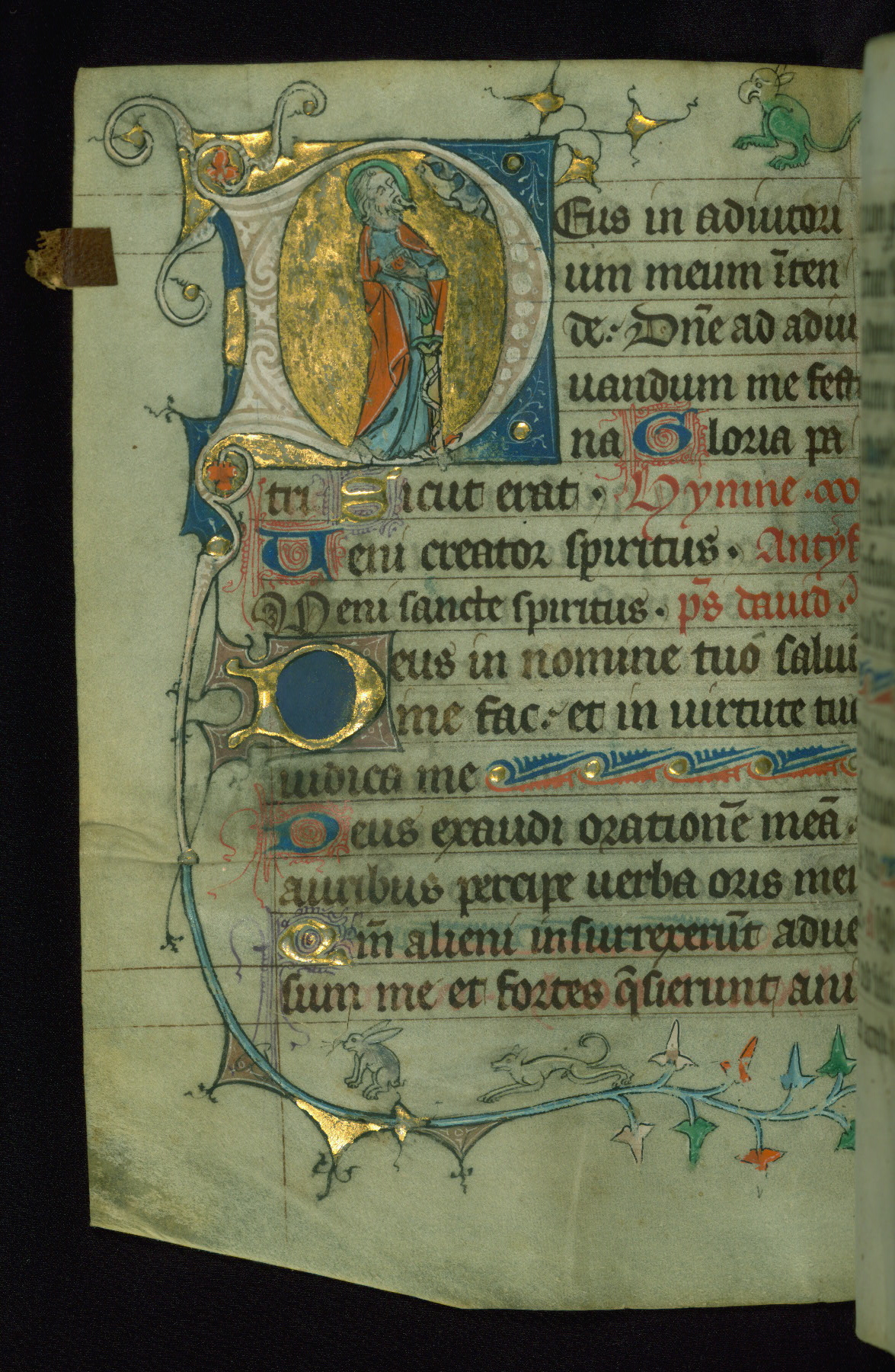 - Form: Historiated initial "D," 5 lines