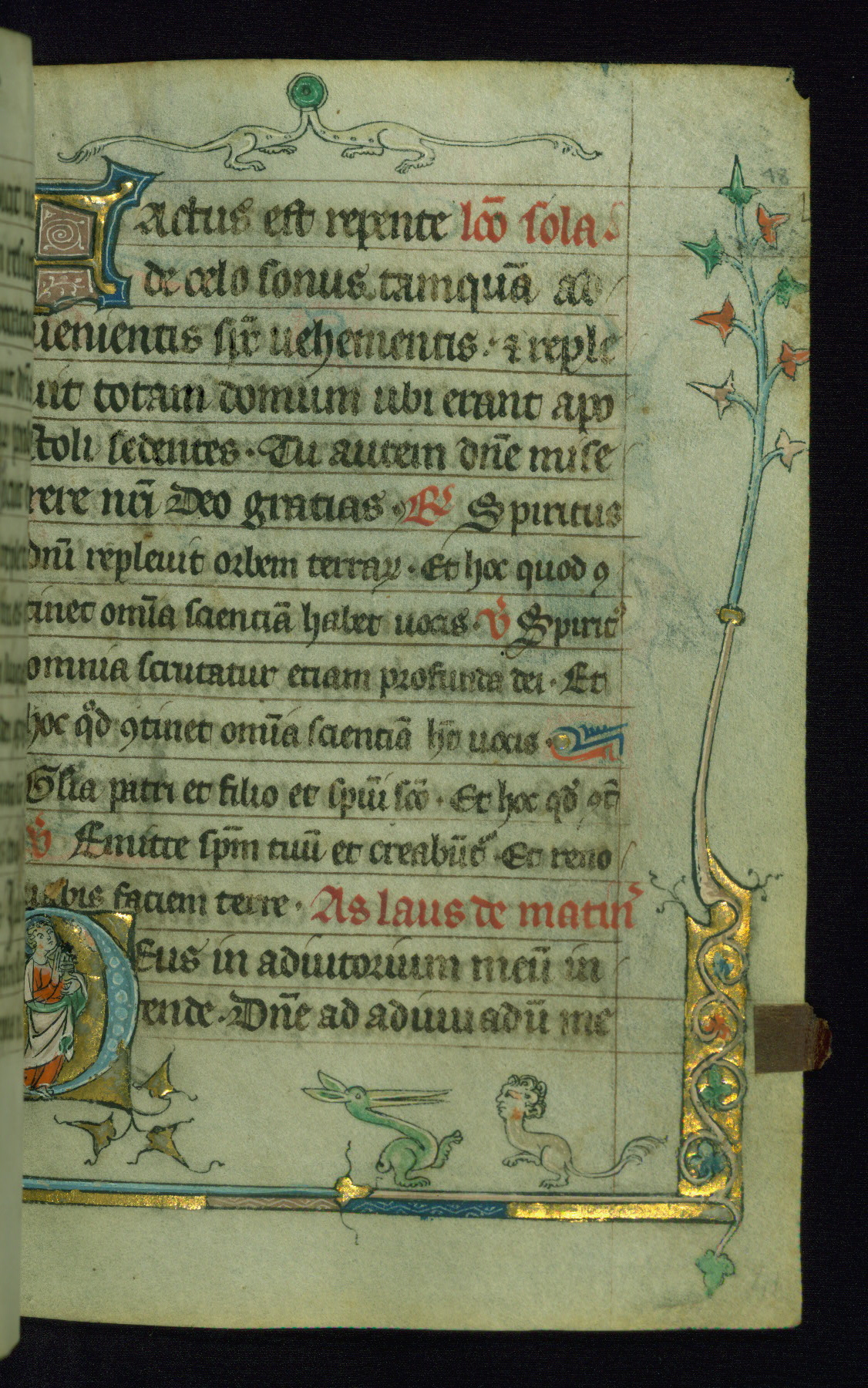 - Rubric: Chi apries sensiwent les eures dou saint esperit. A Matines.